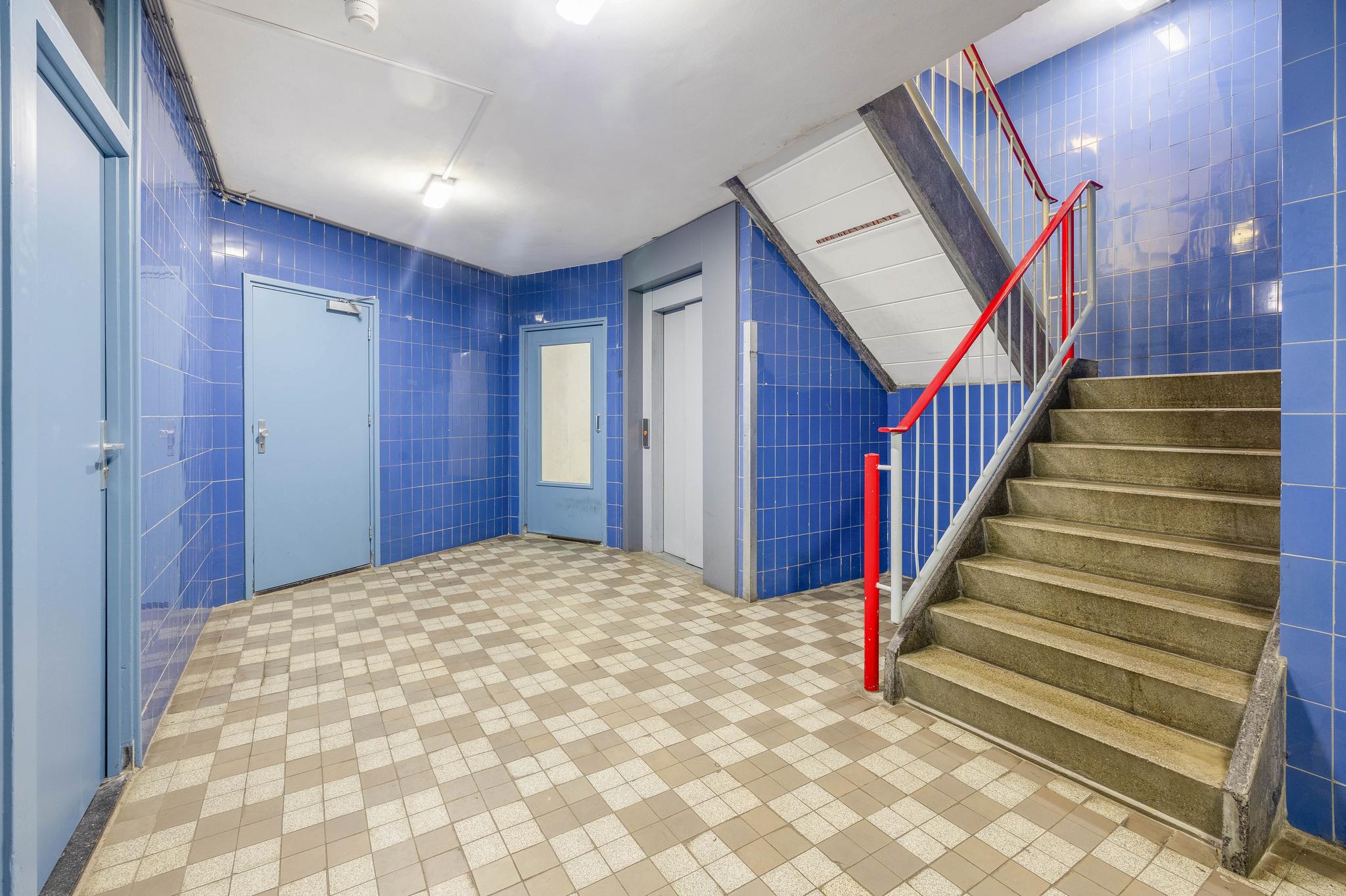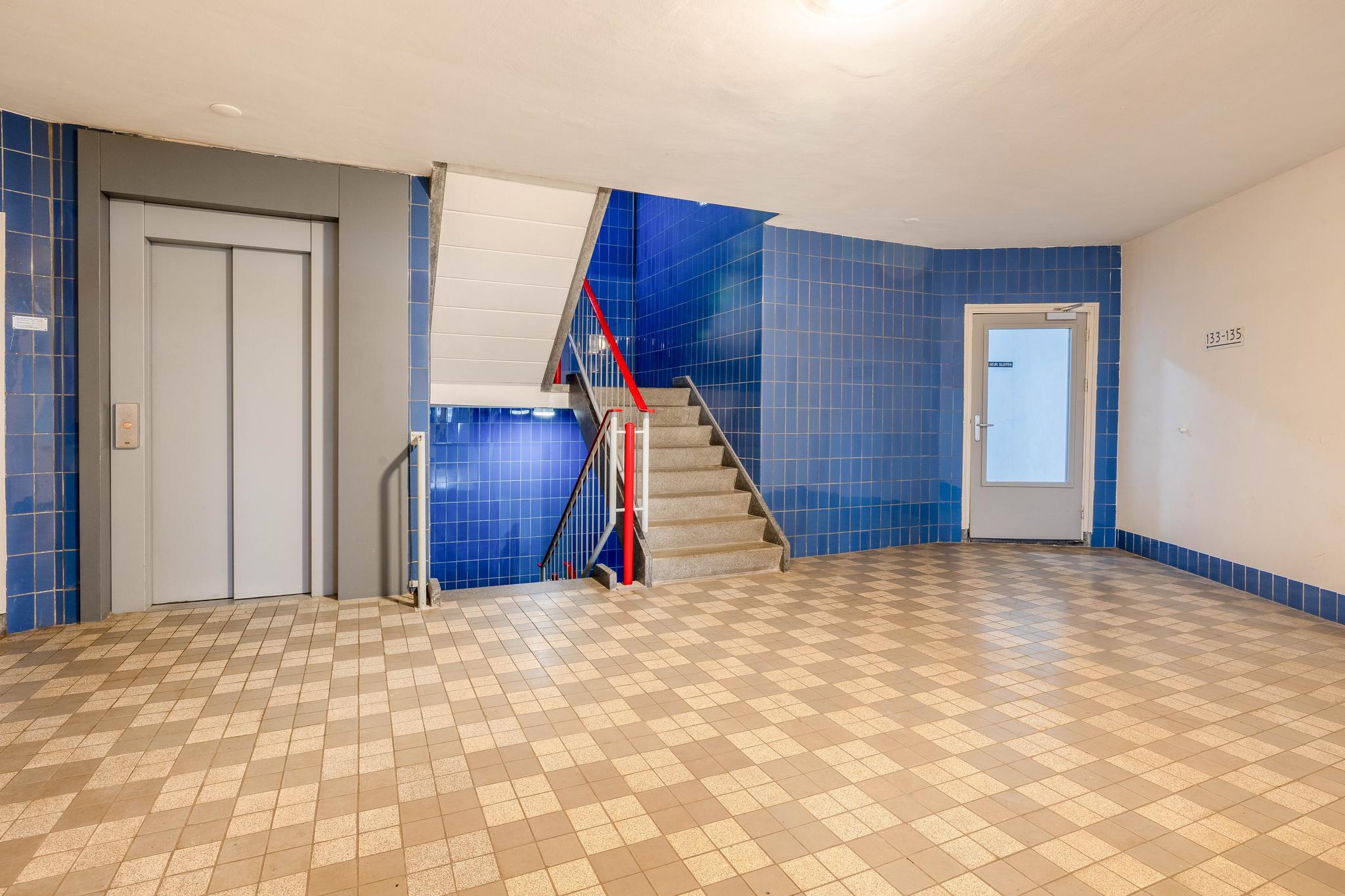Via de beveiligde entree komen wij bij de liftinstallaties of het trappenhuis van het appartementencomplex.