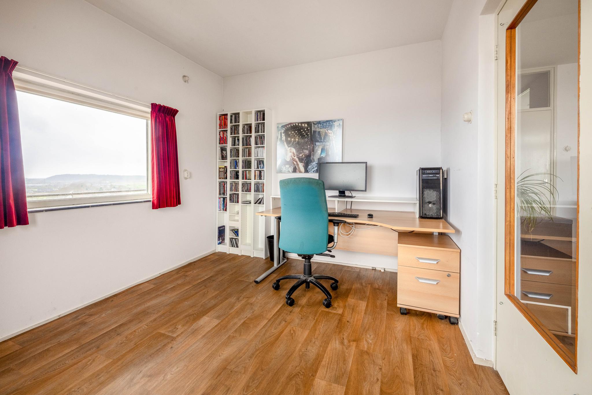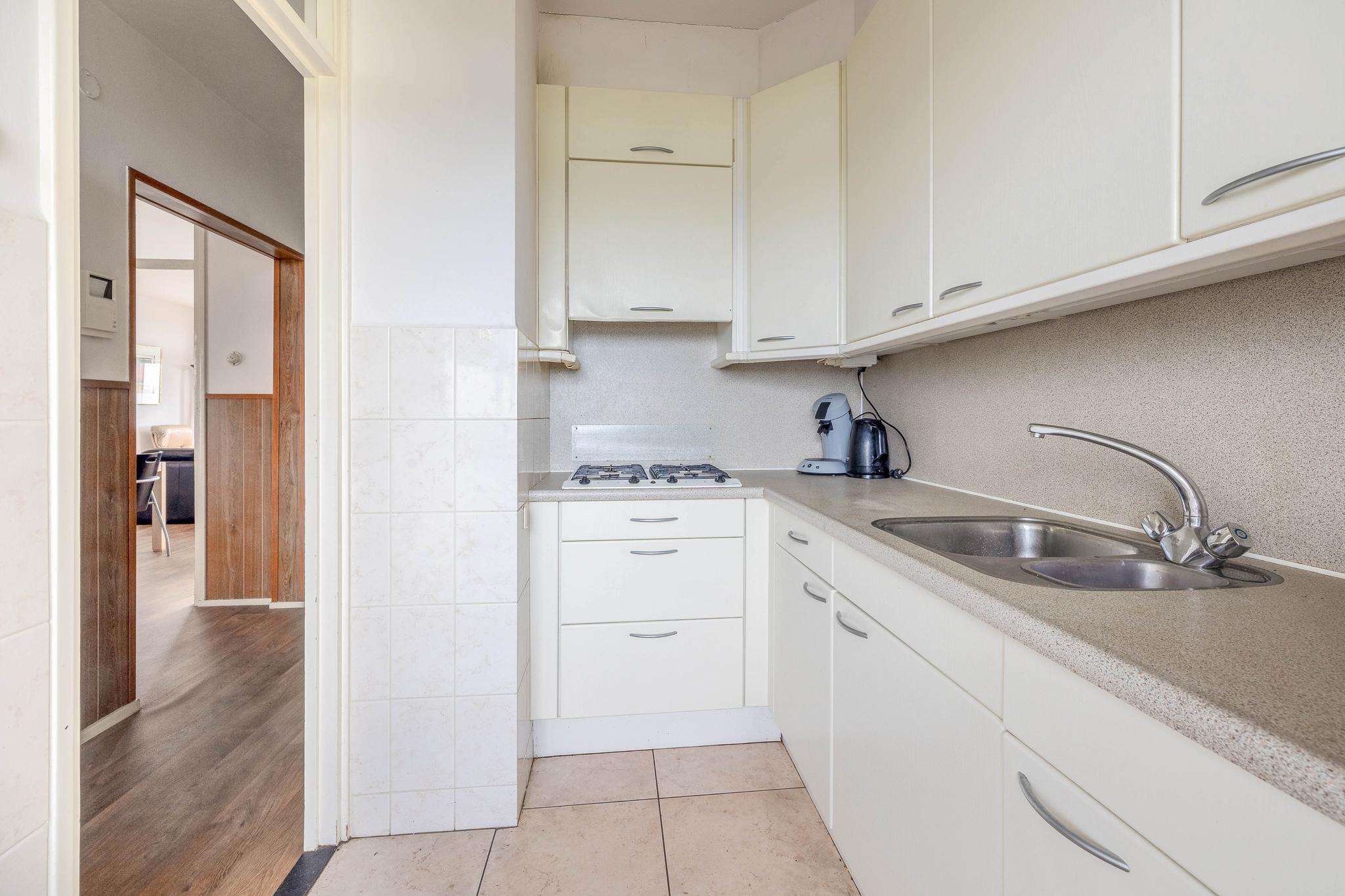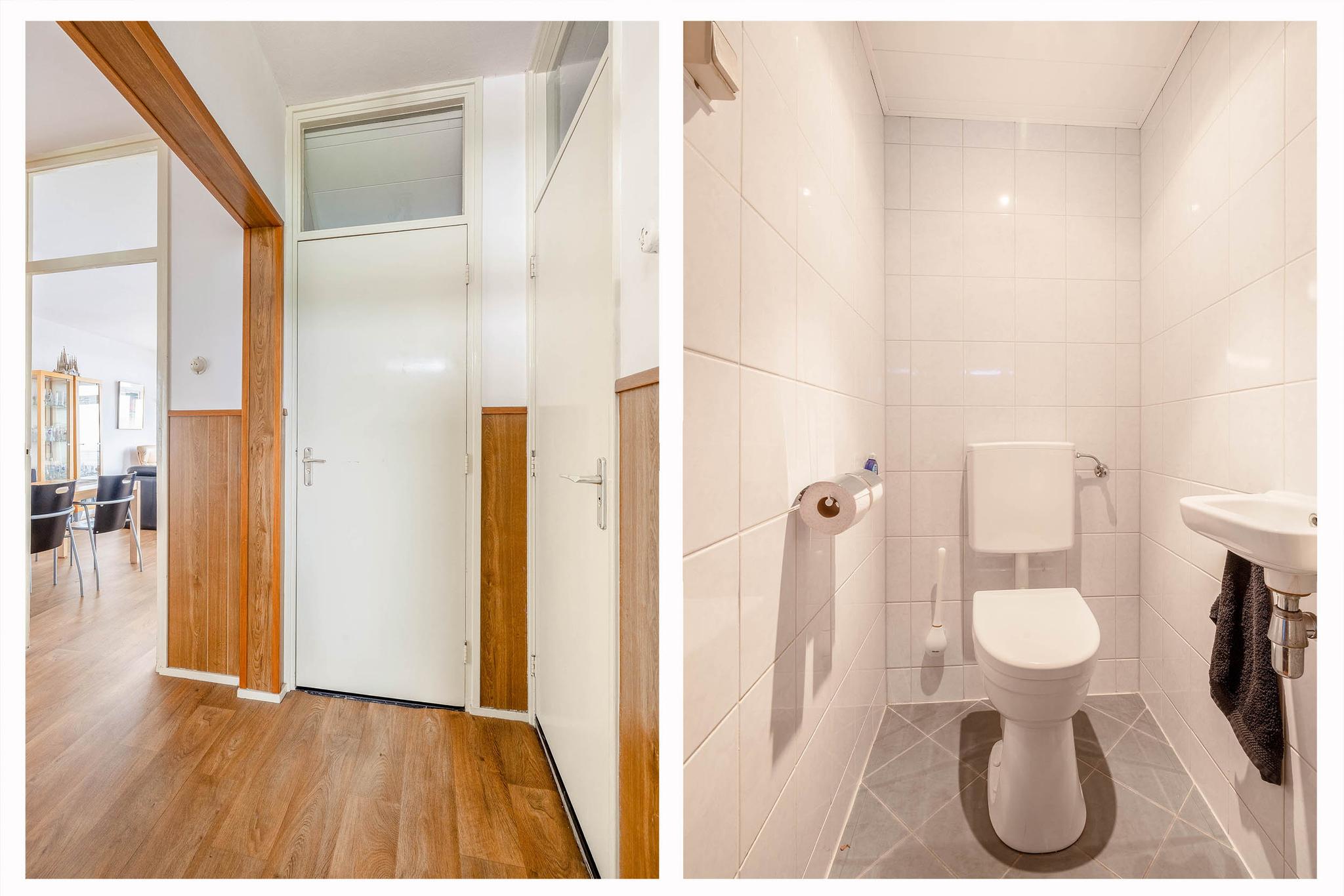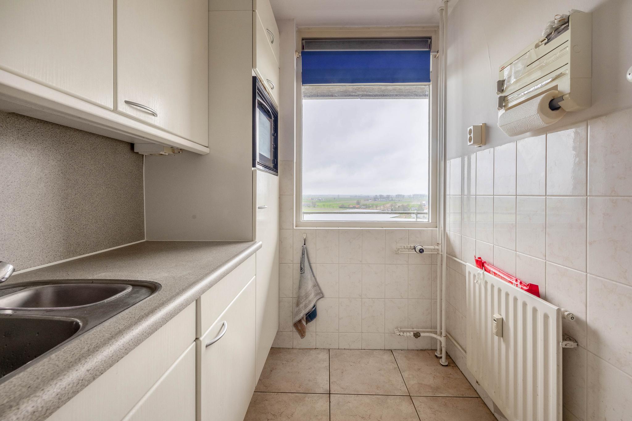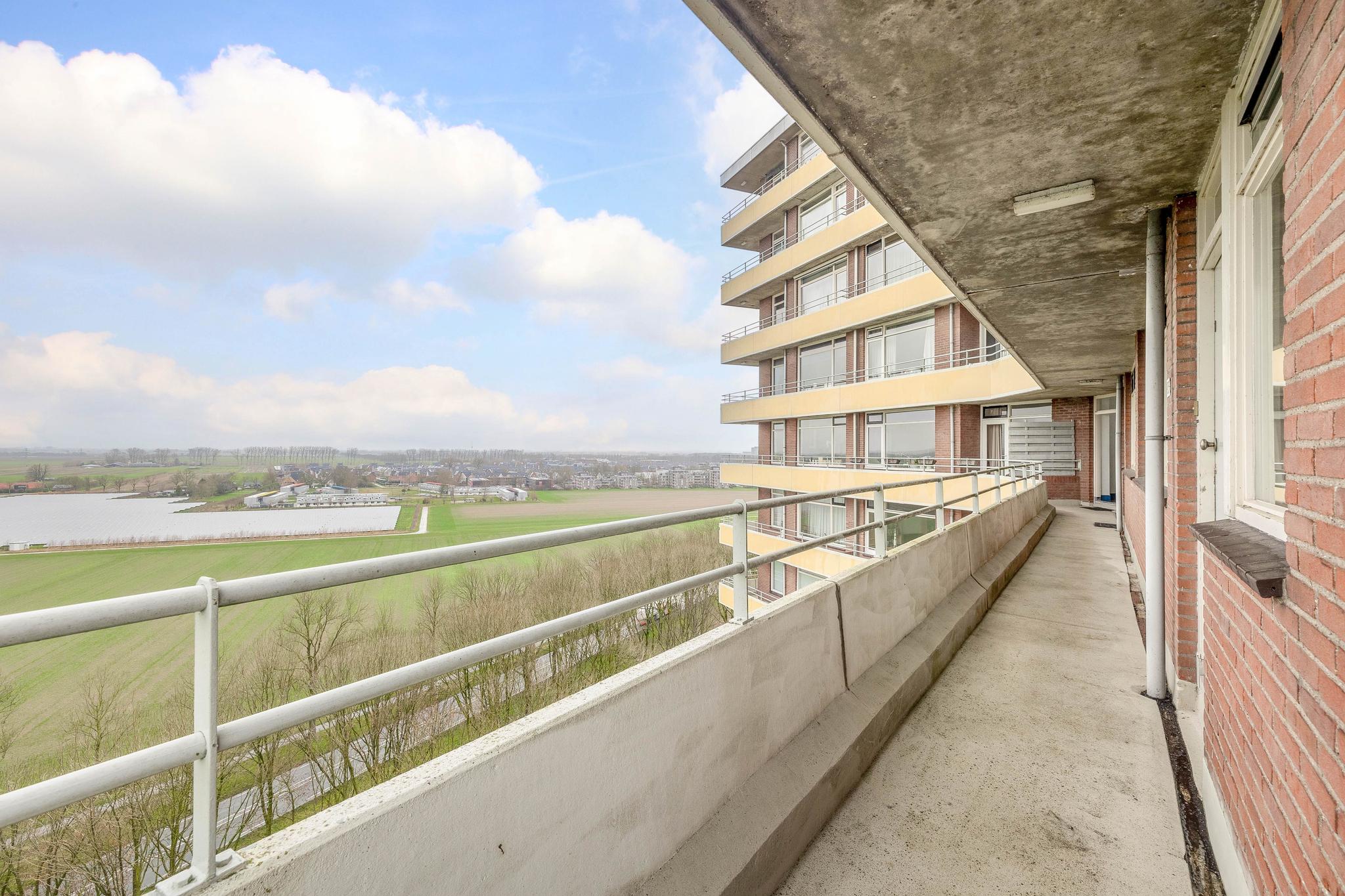 Entree, tochtportaal, hal voorzien van een videofoon installatie, gesloten keuken met raam voorzien van een L-vormige keukenopstelling uitgevoerd in een lichte kleurstelling voorzien van diverse inbouwapparatuur, t.w.: koelkast, 3-ladenvriezer, gaskookplaat, combimagnetron, afzuigkap alsmede een carrouselkast, lichte badkamer tot plafond betegeld voorzien van een tegelvloer, ligbad, vaste wastafel en aansluiting was apparatuur, toilet tot plafond betegeld met fontein, ouderslaapkamer voorzien van vaste kasten, woonkamer voorzien van een vaste kast welke toegang biedt tot een tweede slaap-/werkkamer voorzien van een vaste kast met loopdeur naar het zonnige balkon, waarvan u van het prachtige uitzicht kunt genieten!
