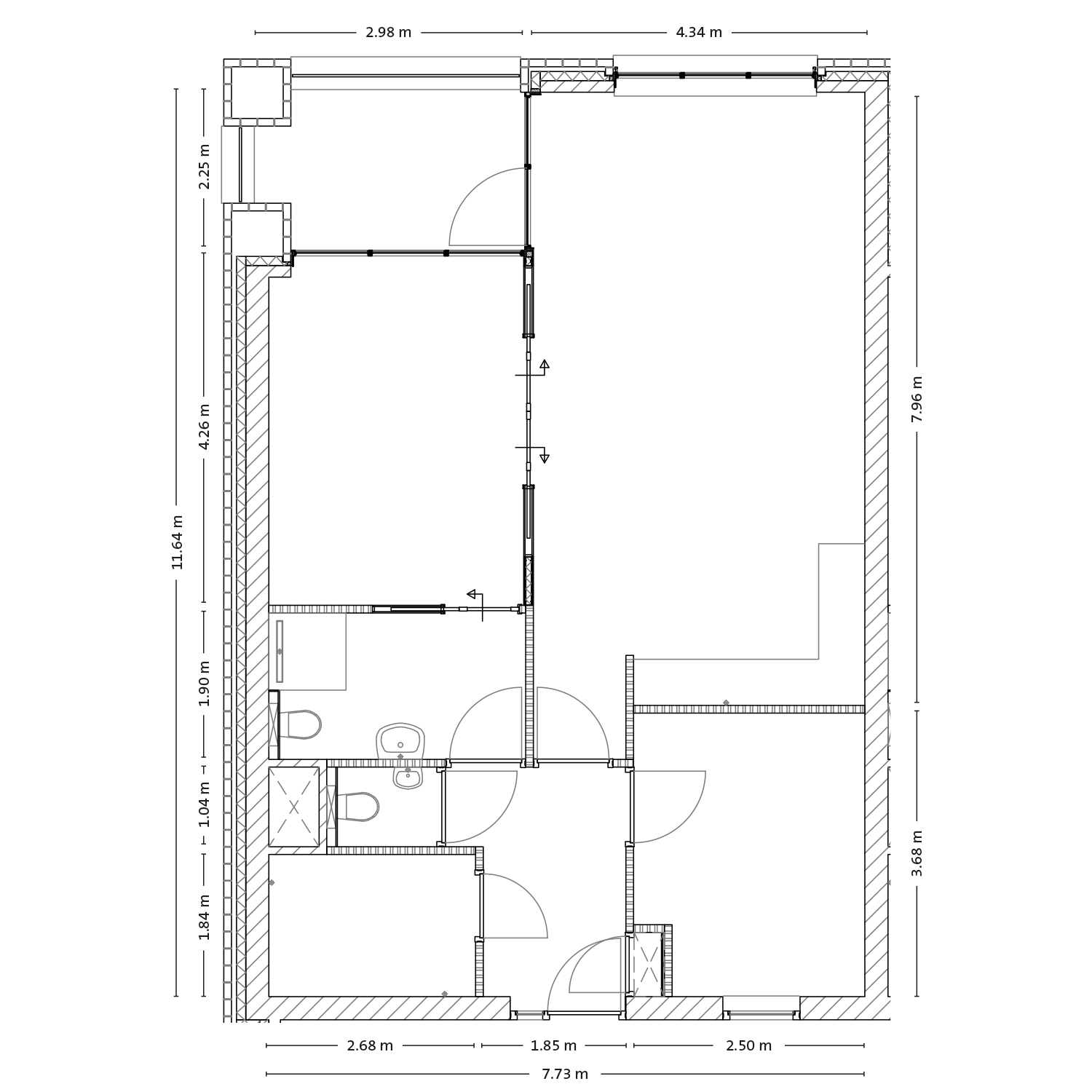 • Technische ruimte met plaats voor installaties, wasmachine, droger en bergruimte.