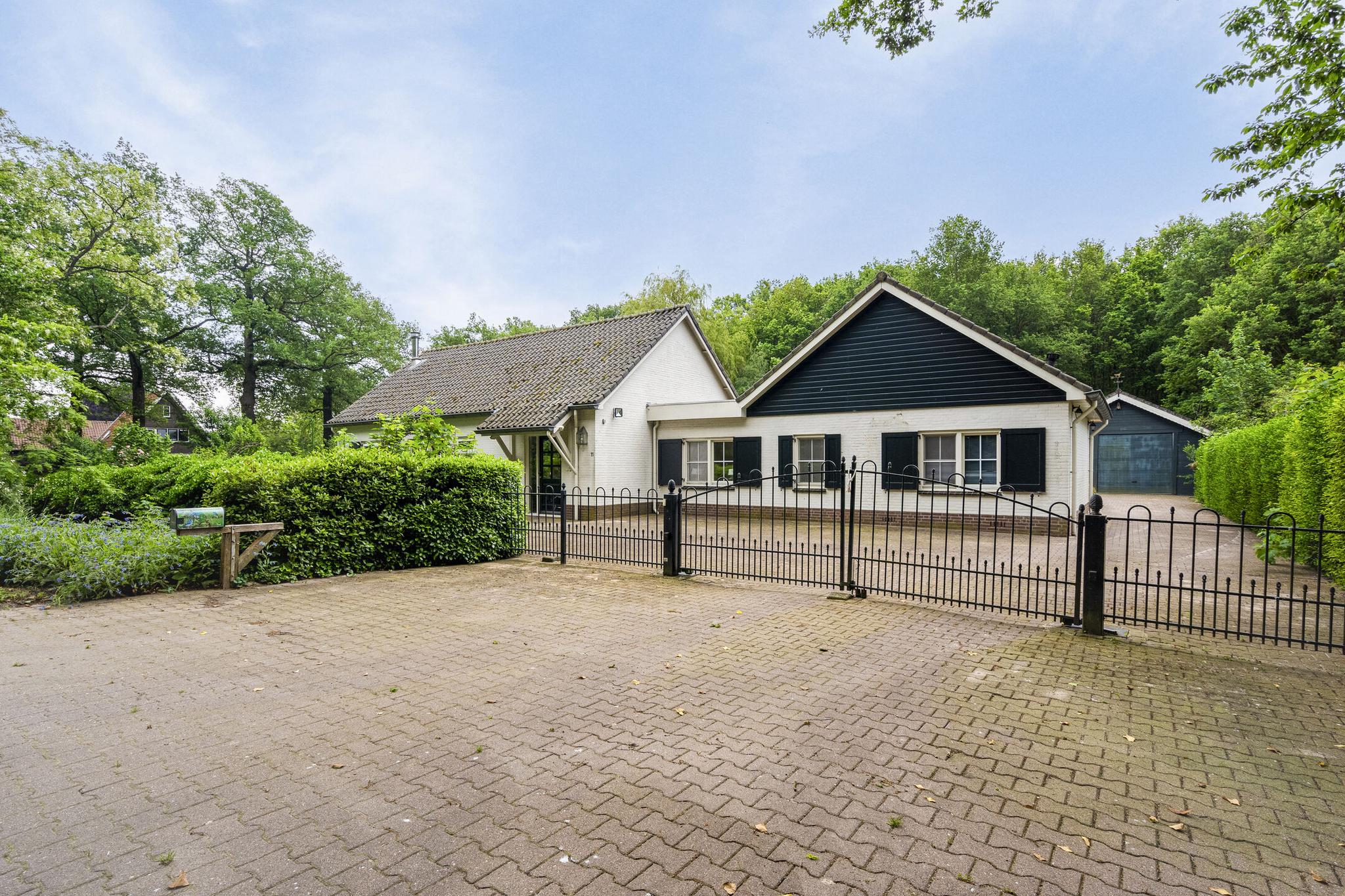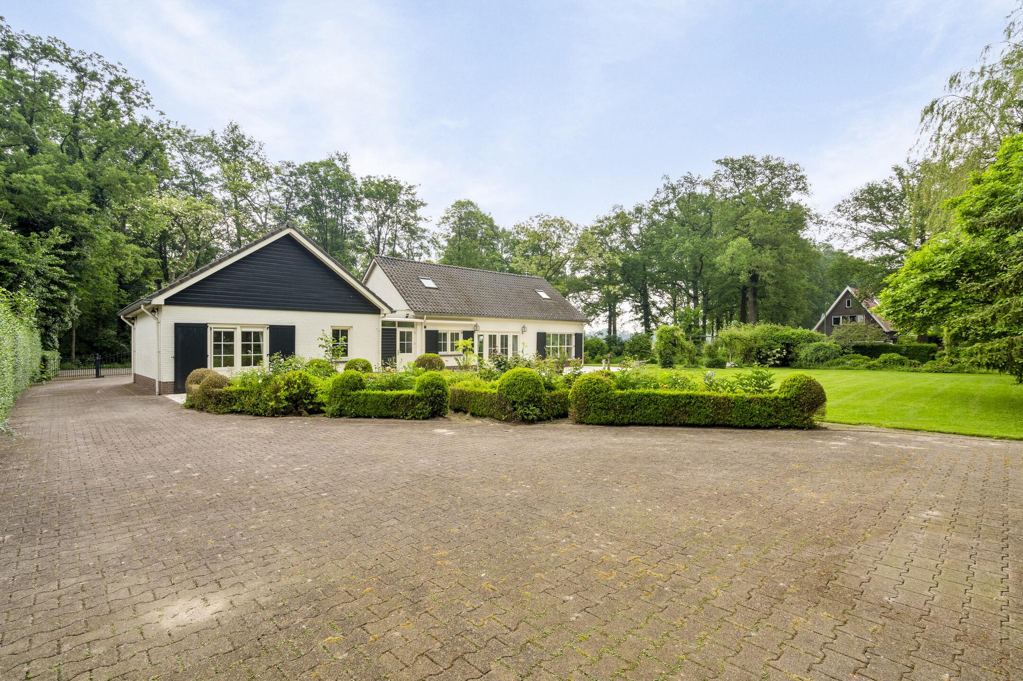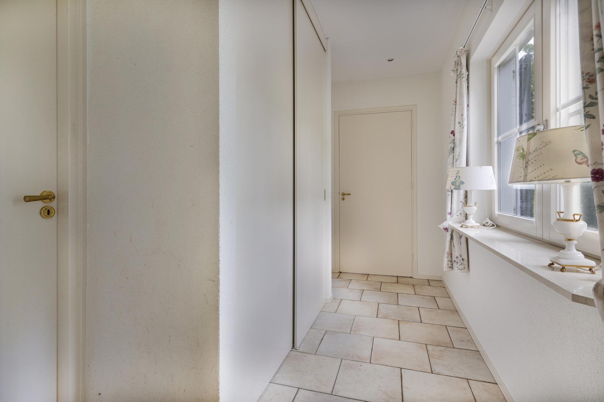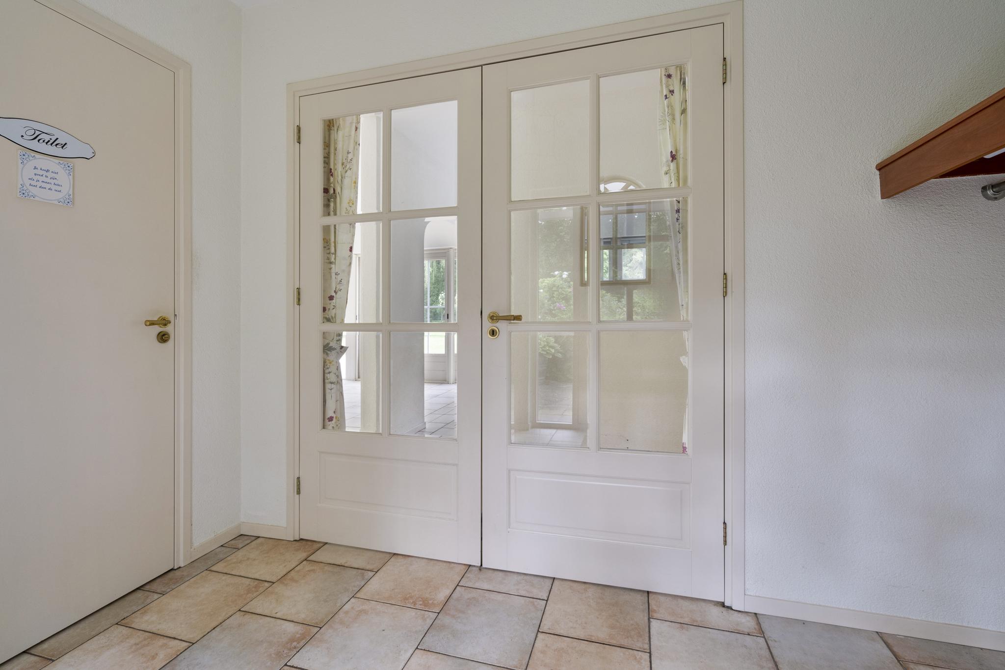 Begane grond: Overdekte entree; royale hal; meterkast; garderobenis; badkamer I met wandtoilet, wastafel, douchecabine en een design radiator; vlieringtrap naar de 1e verdieping; vanuit de hal een dubbele deur naar de woonkamer met een openhaard; dubbele deuren naar de tuin; een landelijke open keuken in L-opstelling en voorzien van granieten aanrechtblad met een inductie kookplaat met afzuigkap, oven, koelkast; tussenhal met schuifkasten wand; bijkeuken spoelbak, inloopkast en met een deur naar de tuin; gang naar slaapkamer I; slaapkamer II met dubbele deuren naar de tuin; badkamer II met raam en voorzien van wastafel, douchecabine, ligbad, bidet en wastafel; vlieringtrap naar de 1e verdieping.