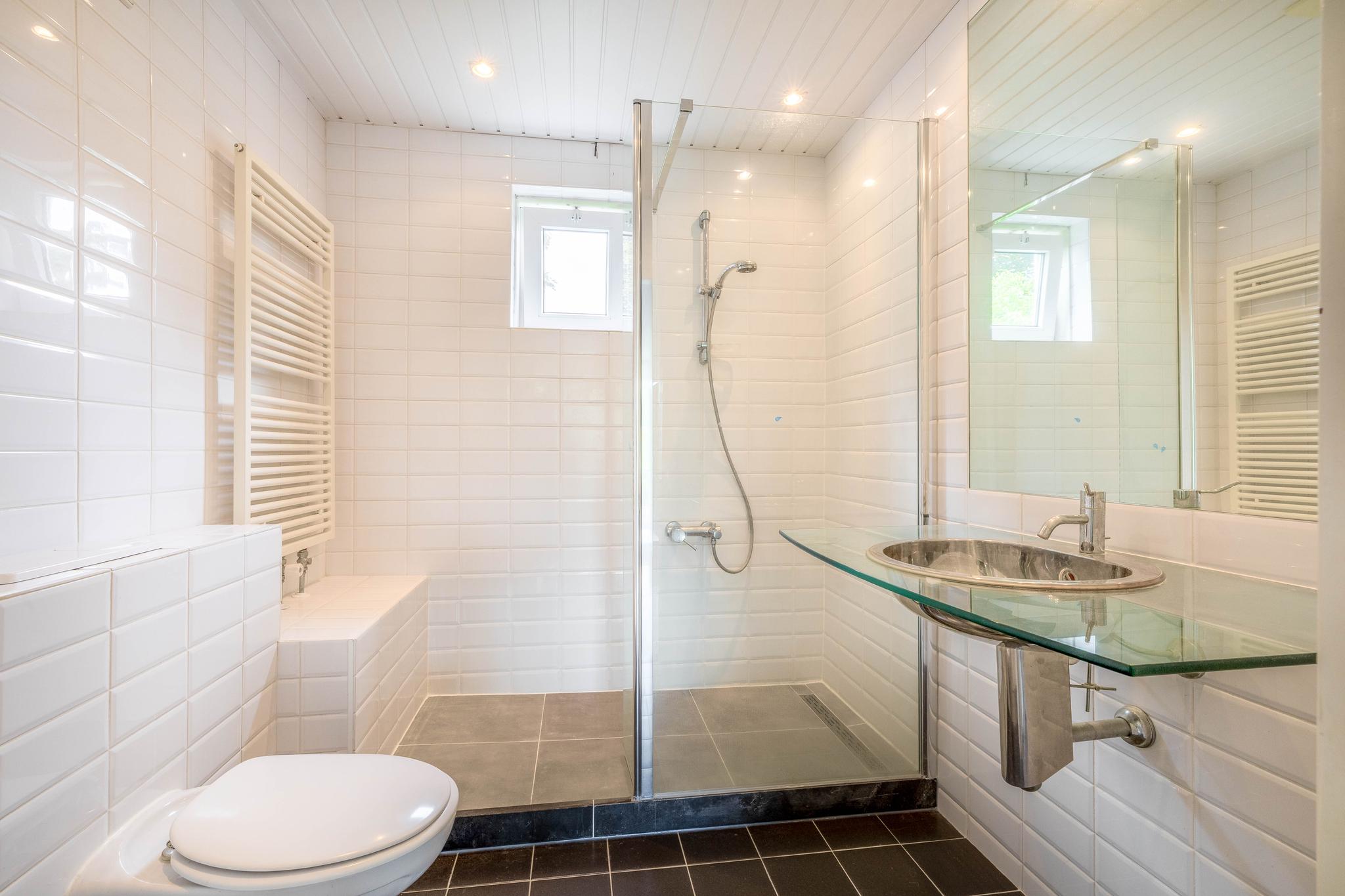 Verdieping: Overloop met glas; slaapkamer I met inloopkast en kunststof kozijn met dubbel glas; moderne badkamer met raam voorzien van kunststof kozijn en dubbel glas, inloopdouche met glazen deur, wastafel, design radiator; slaapkamer II met kunststof kozijn en dubbel glas, deur naar het balkon, twee inloopkasten en wastafel, slaapkamer III met kunststof kozijn en dubbel glas, deur naar het balkon, twee inbouwkasten en wastafel; slaapkamer IV met kunststof kozijn en dubbel glas, deur naar het balkon en inbouwkast.
