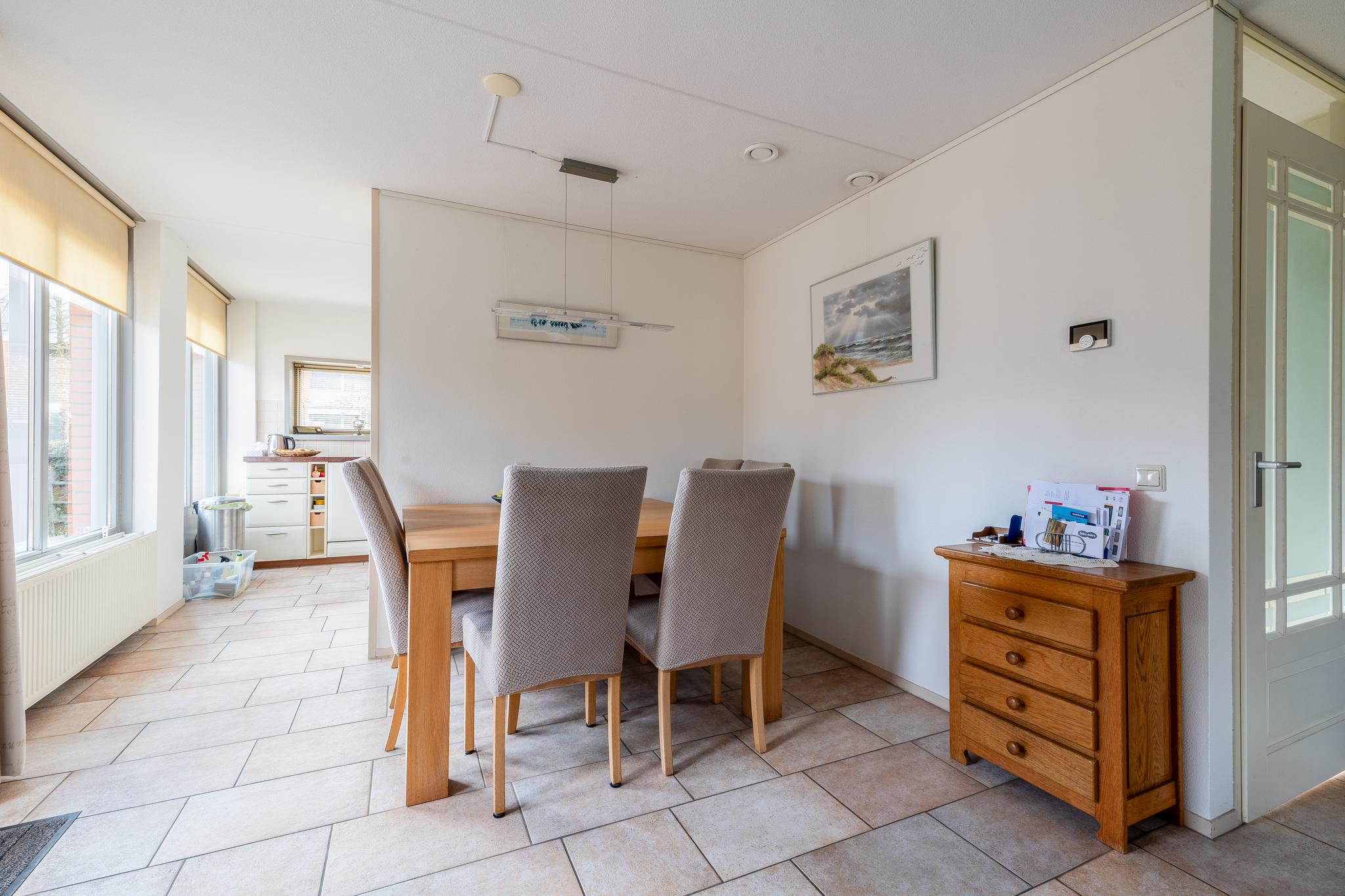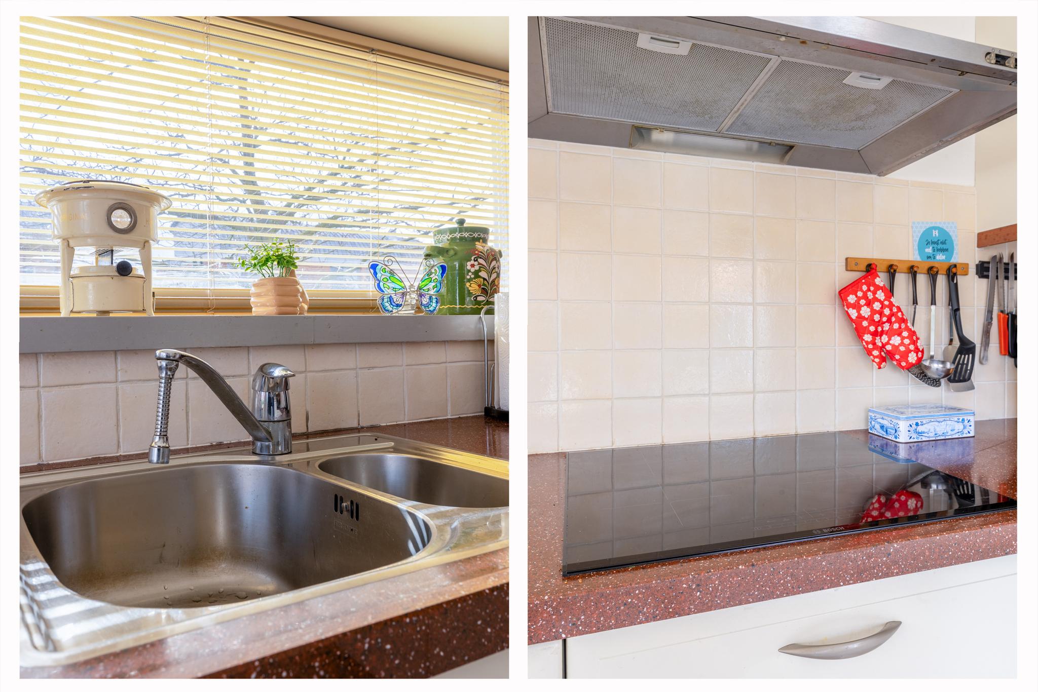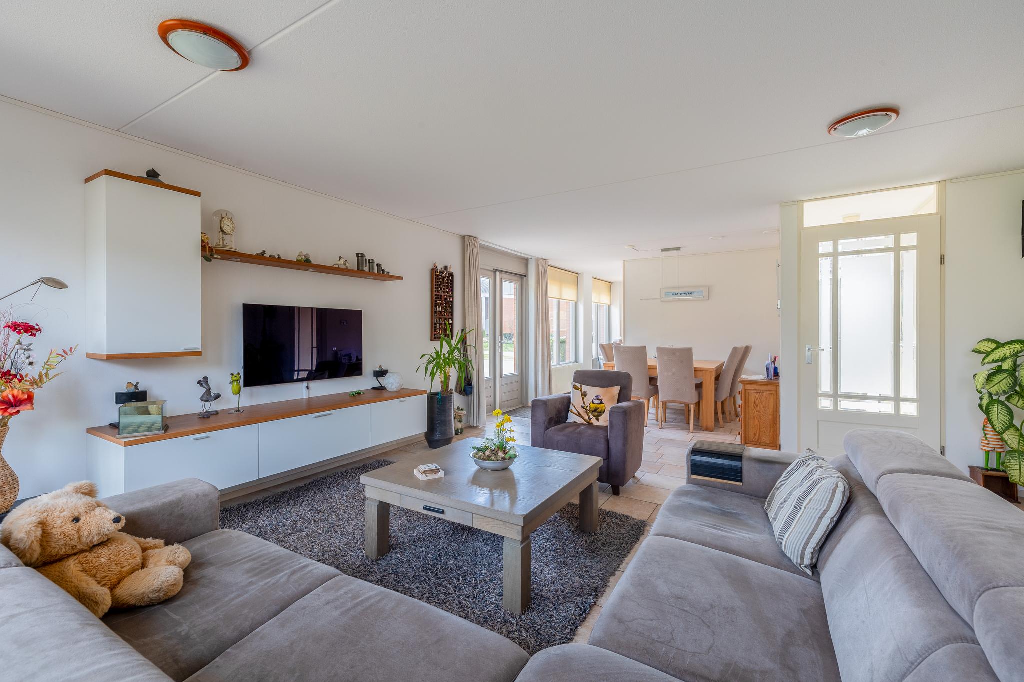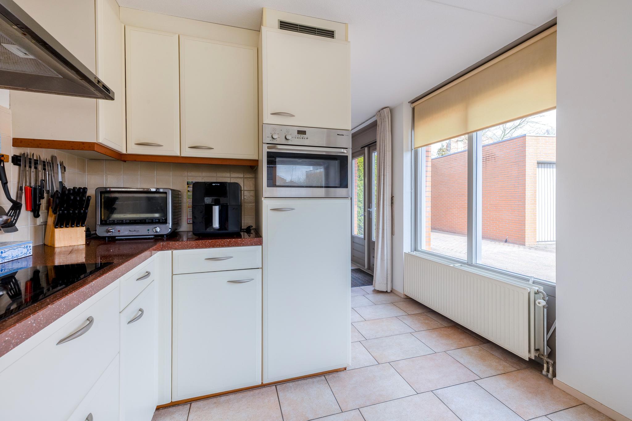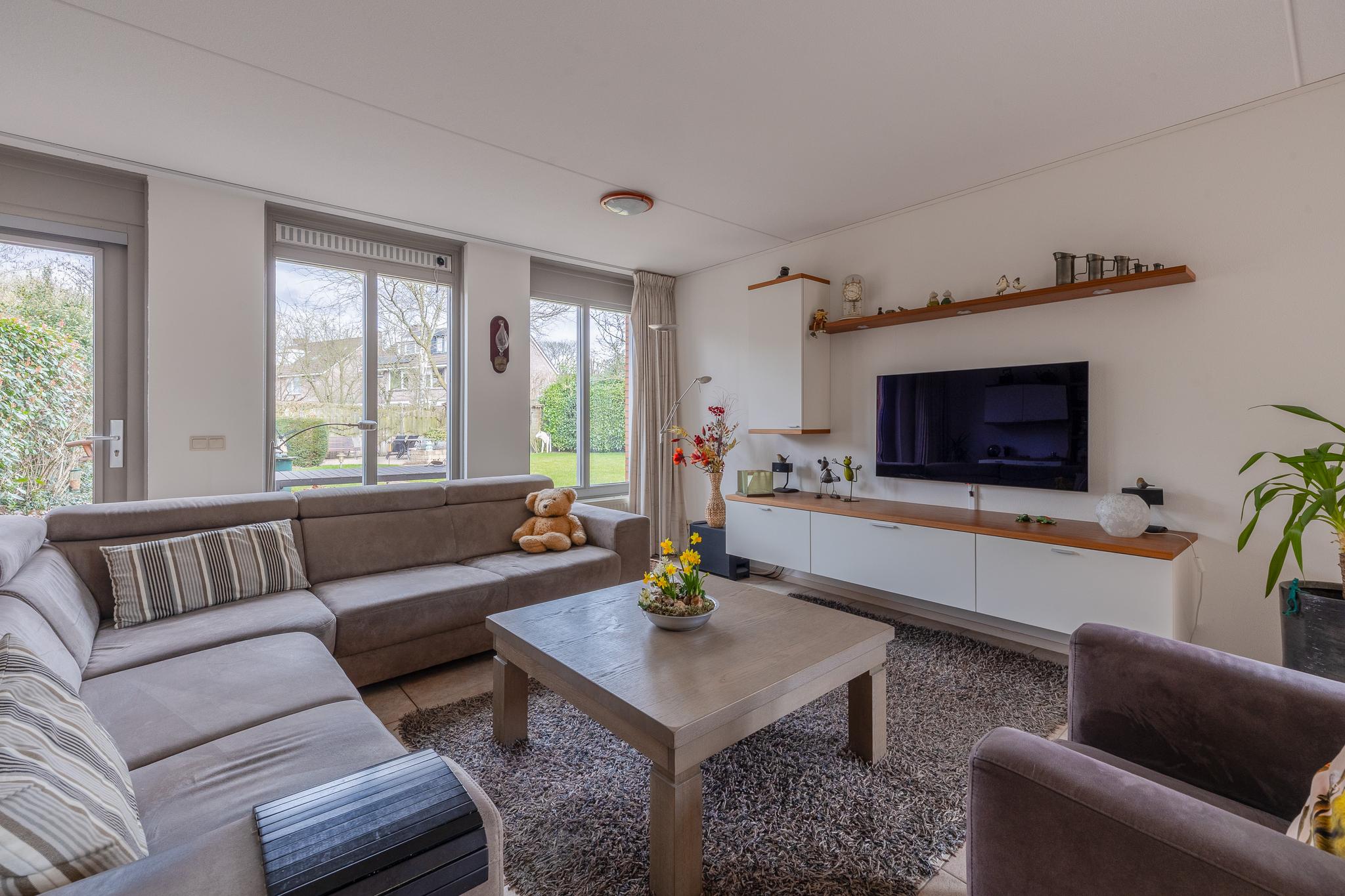 Entree, hal met meterkast en toiletruimte met hangend closet en hoekfontein. Vanuit de hal, met trapkast met de verdeler van de vloerverwarming, is de sfeervolle woonkamer bereikbaar. De openslaande dubbele deuren geven toegang tot de zij-ingang (zijtuin). De half open keuken bevindt zich aan de voorzijde is uitgevoerd in een lichte kleurstelling met L-vormige opstelling en voorzien van afwasmachine, close-in boiler, inductie kookplaat met afzuigkap, oven, magnetron, vriezer, koelkast en granieten aanrechtblad.