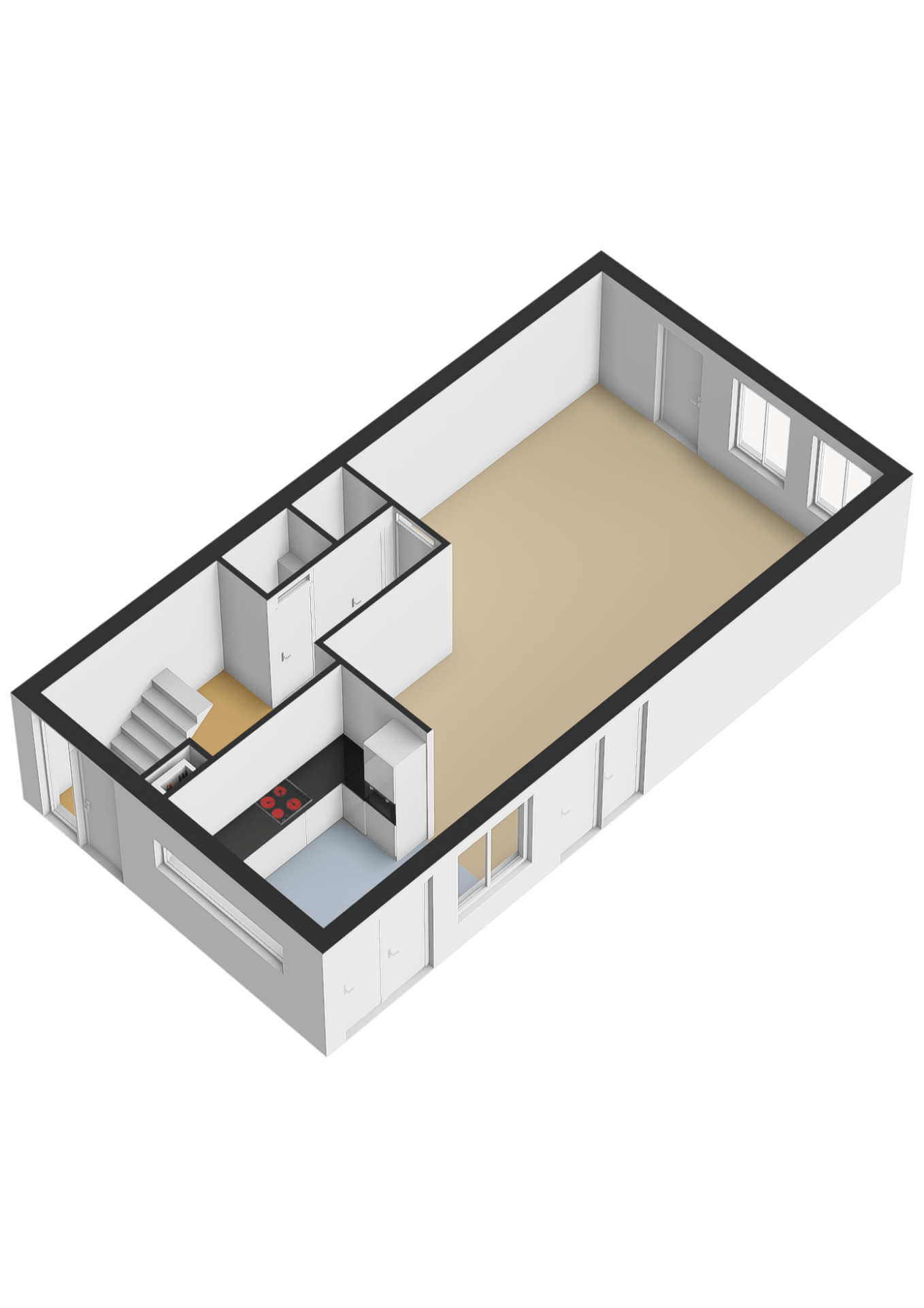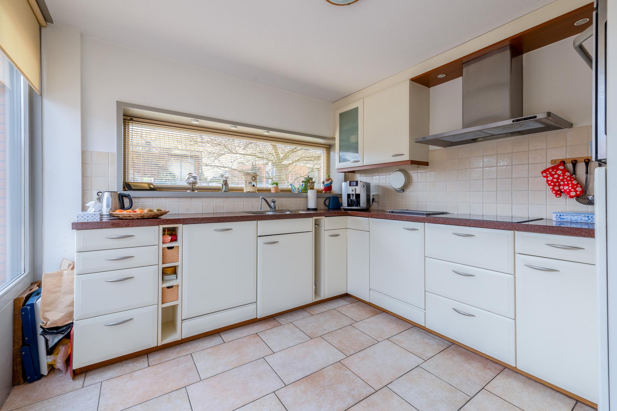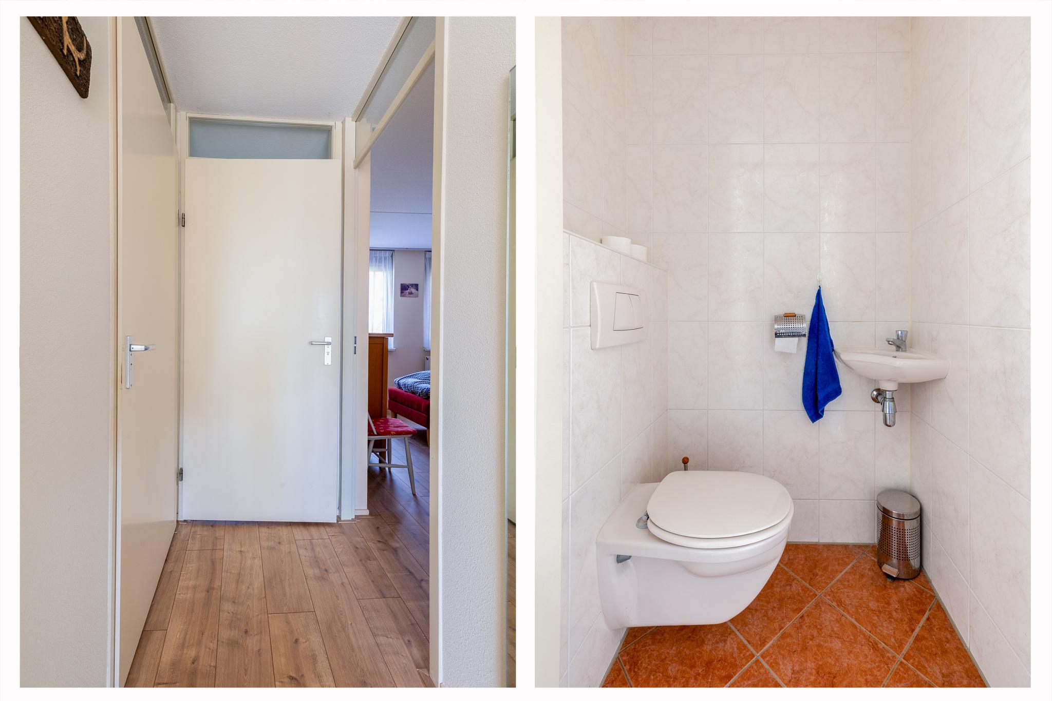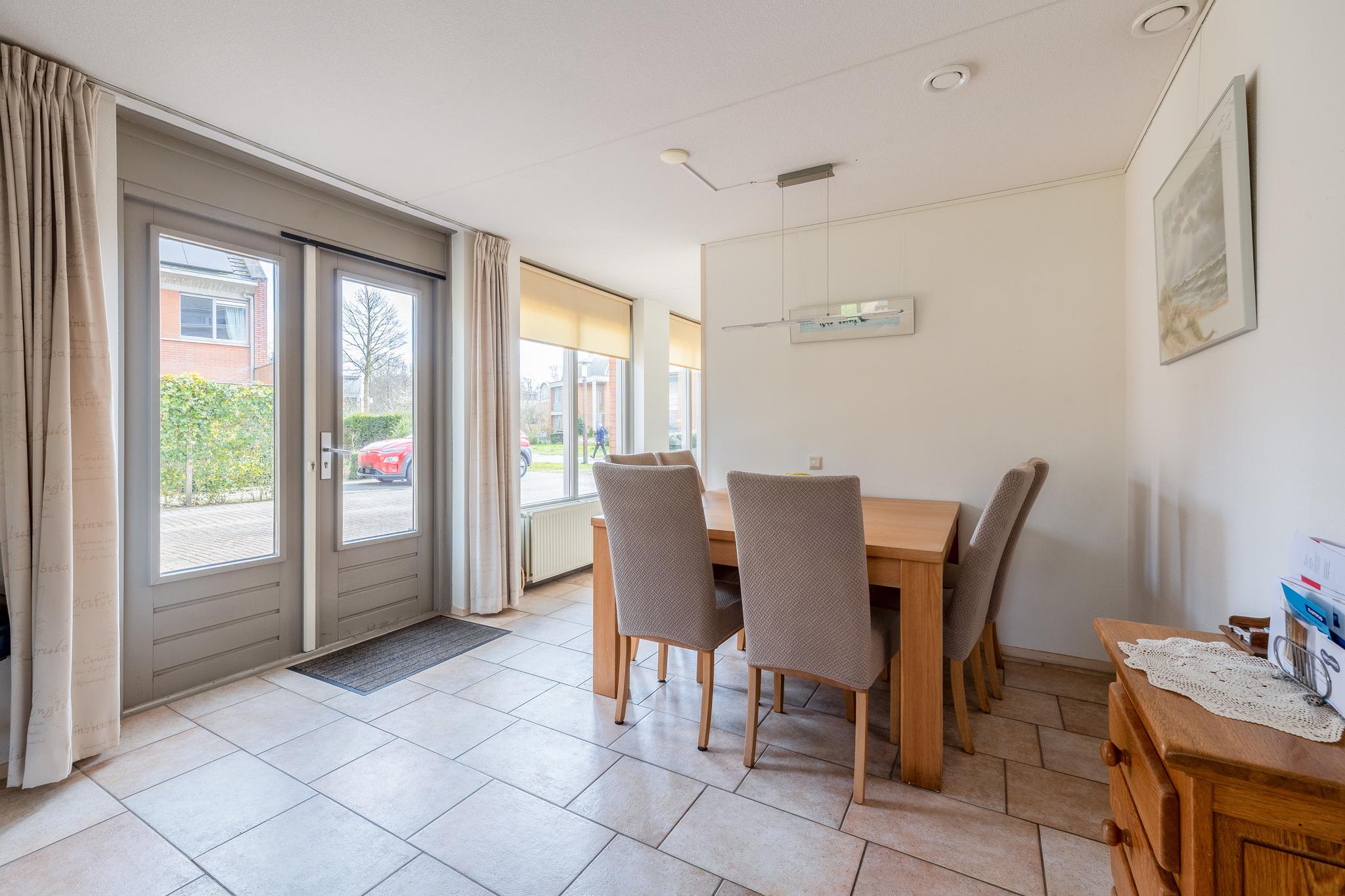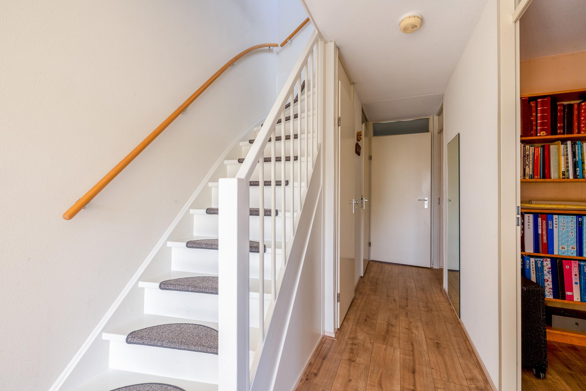 Entree, hal met meterkast en toiletruimte met hangend closet en hoekfontein. Vanuit de hal, met trapkast met de verdeler van de vloerverwarming, is de sfeervolle woonkamer bereikbaar. De openslaande dubbele deuren geven toegang tot de zij-ingang (zijtuin). De half open keuken bevindt zich aan de voorzijde is uitgevoerd in een lichte kleurstelling met L-vormige opstelling en voorzien van afwasmachine, close-in boiler, inductie kookplaat met afzuigkap, oven, magnetron, vriezer, koelkast en granieten aanrechtblad.