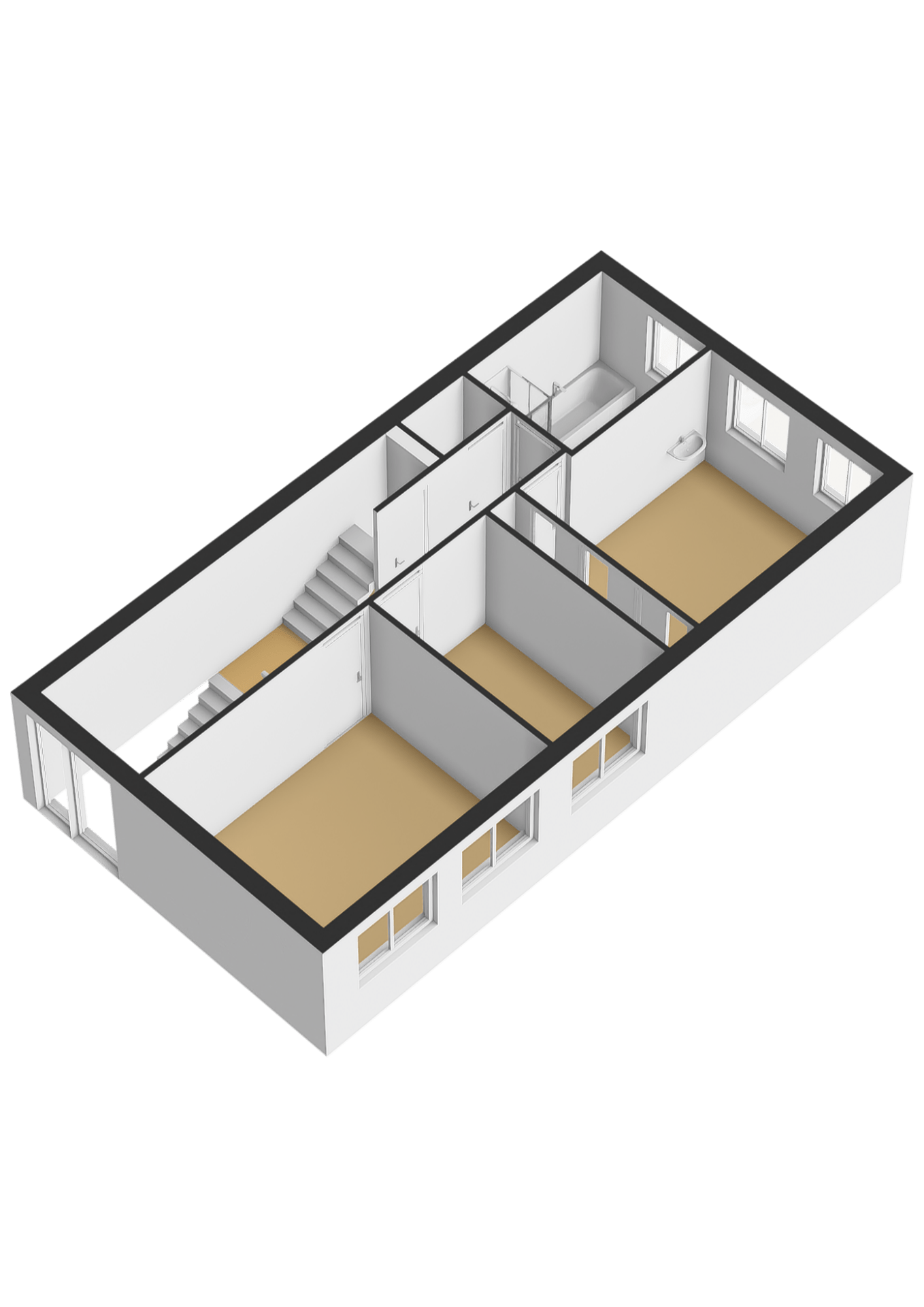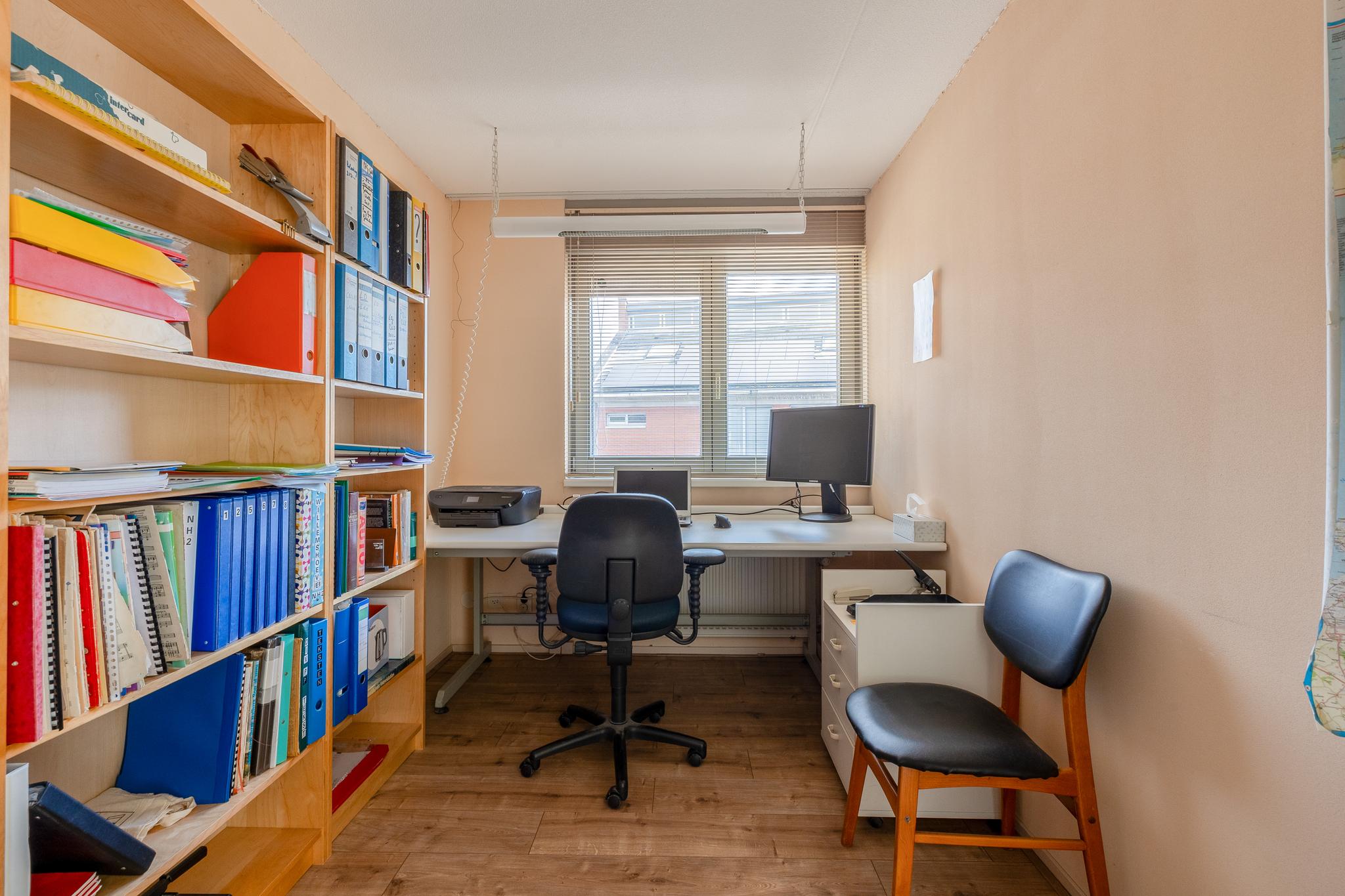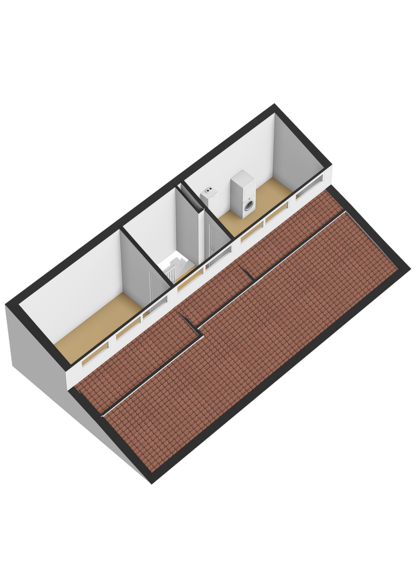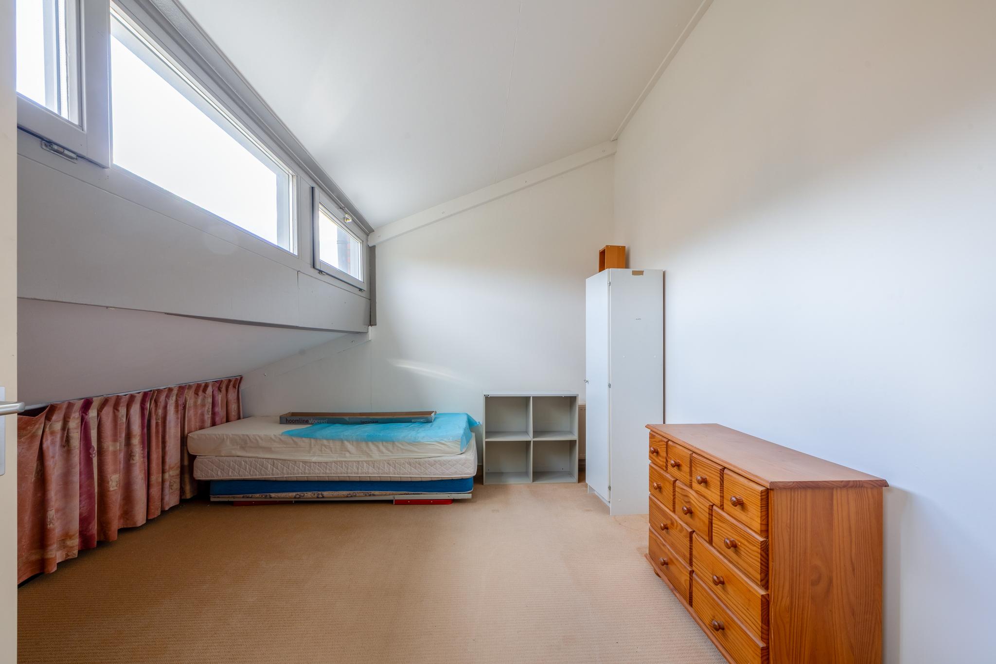 Overloop met ramen en opbergruimte, slaapkamer met opbergruimte; wasruimte met aansluitingen voor de wasapparatuur; slaapkamer met opstelling van de C.V. ketel en omvormer voor de zonnepanelen.