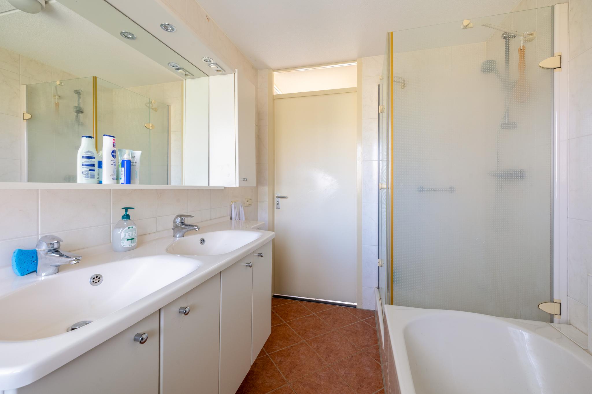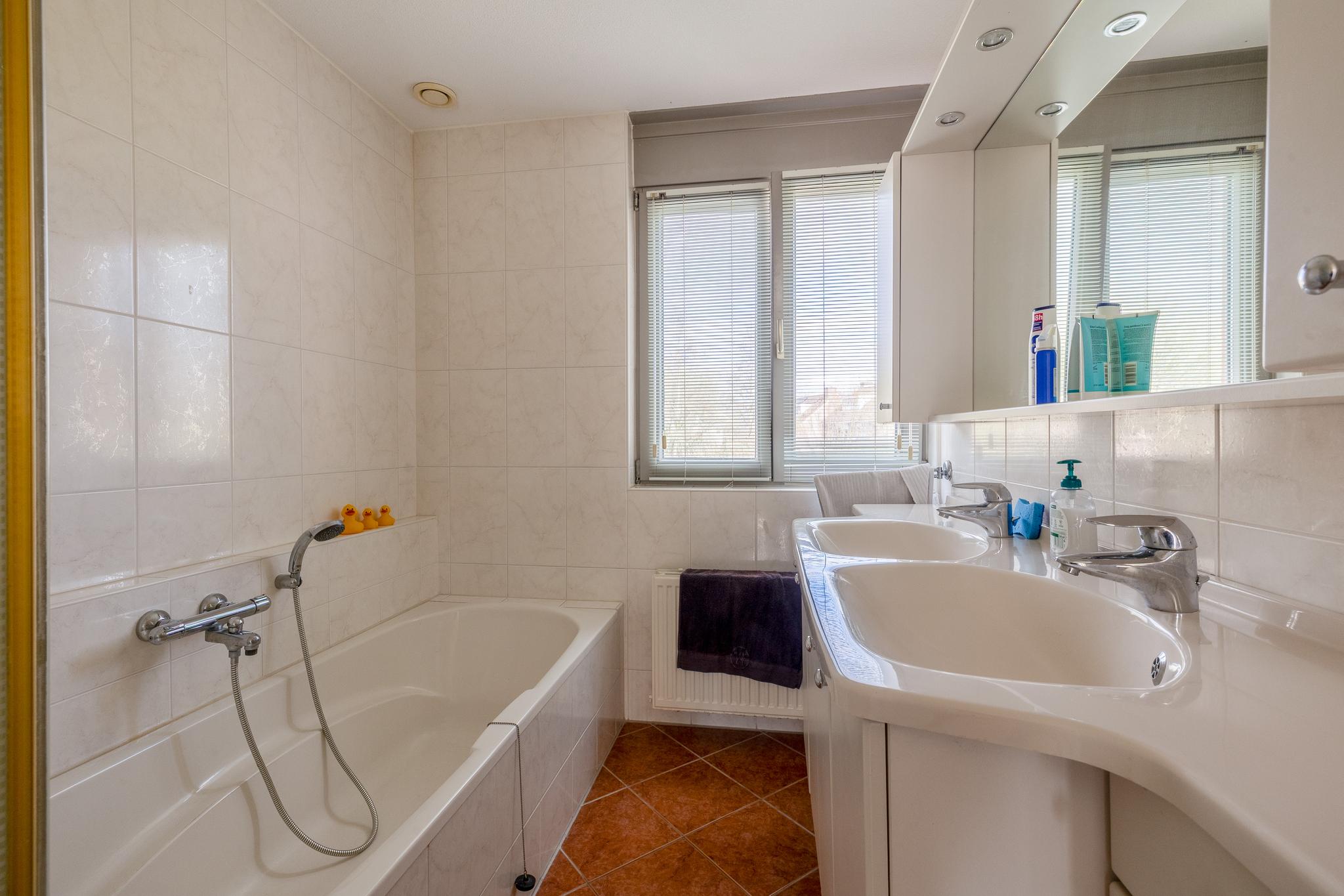 Overloop, slaapkamer met wastafel en kastenwand, badkamer met raam en voorzien van ligbad, douchecabine en dubbel wastafelmeubel, aparte toiletruimte met hangend closet en hoekfontein, trapkast met verdeler vloerverwarming voor de badkamer, slaapkamer en grote derde slaapkamer. Vide.