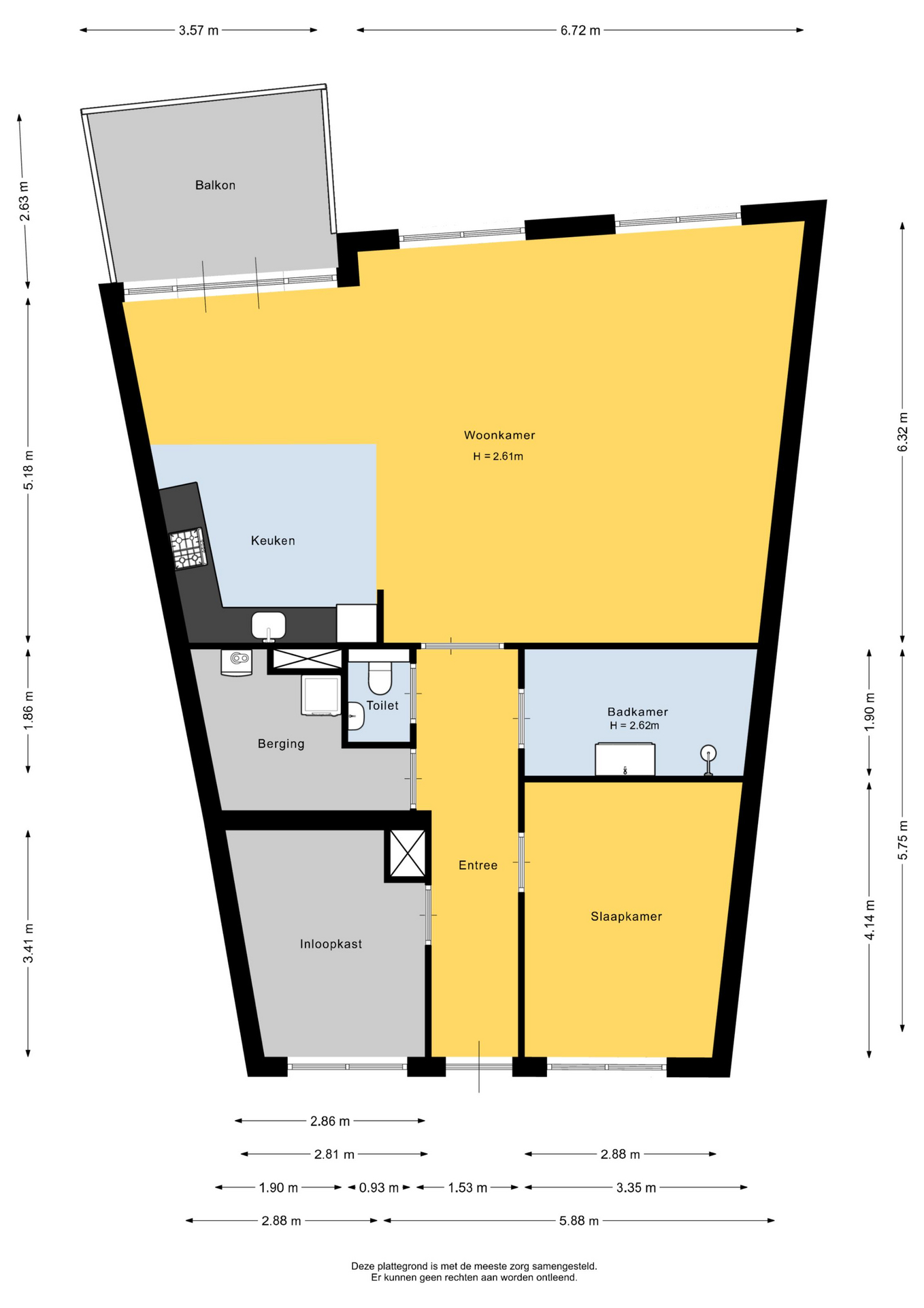 Entree; gang; meterkast; slaapkamer I; slaapkamer II; praktische bijkeuken voorzien van wasmachine aansluiting en