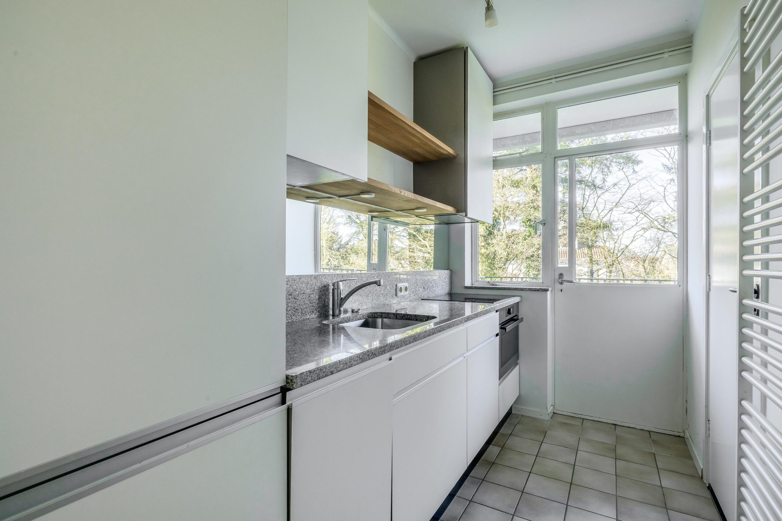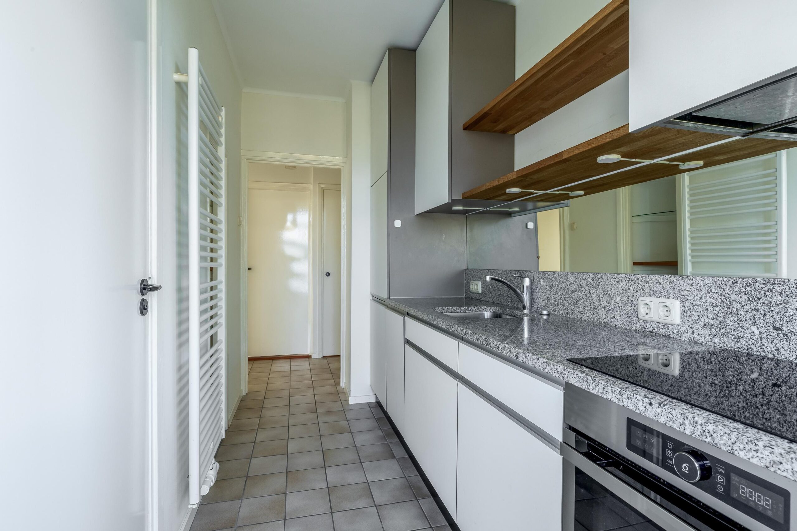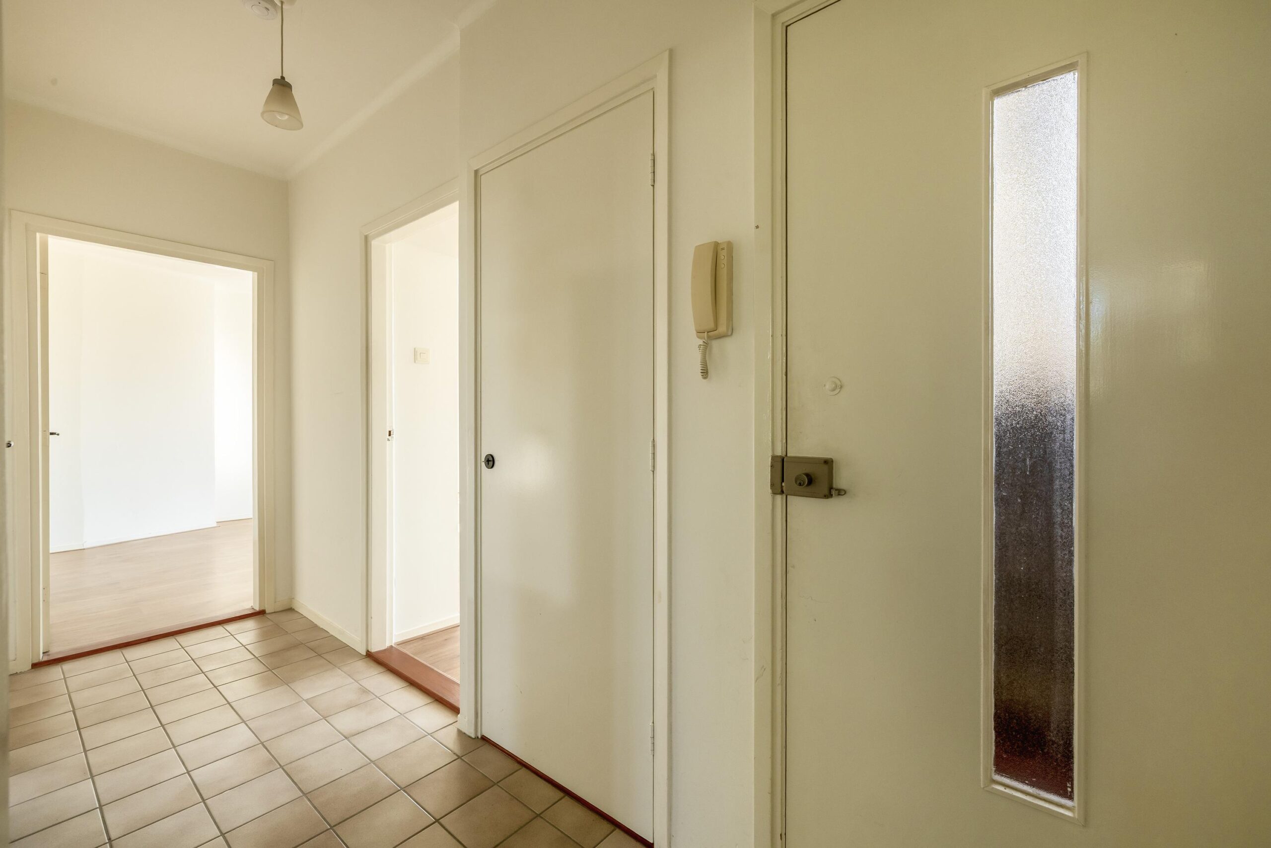 Indeling: Entree; hal met meterkast en vaste kast; gemoderniseerd toilet met hangend closet en fonteintje; slaapkamer I; moderne keuken uitgevoerd in een lichte kleurstelling met aanrechtblad van Portugees hardsteen en voorzien van vaste kast, designradiator en diverse inbouwapparatuur t.w.: koel-/vriescombinatie, vaatwasser, inductie kookplaat, afzuigkap en oven en toegang tot balkon; gemoderniseerde badkamer met inloopdouche, vloerverwarming, wastafeltafel met spiegelkast, aansluiting wasmachine, wasmachine en opstelling c.v.-ketel (Remeha Tzerra plus CW4 uit 2017)) en toegang tot balkon; slaapkamer II met toegang tot de badkamer en toegang naar ruime woonkamer (voorheen twee kamers) (die tevens vanuit de hal bereikbaar is) met toegang tot balkon en twee vaste kasten.