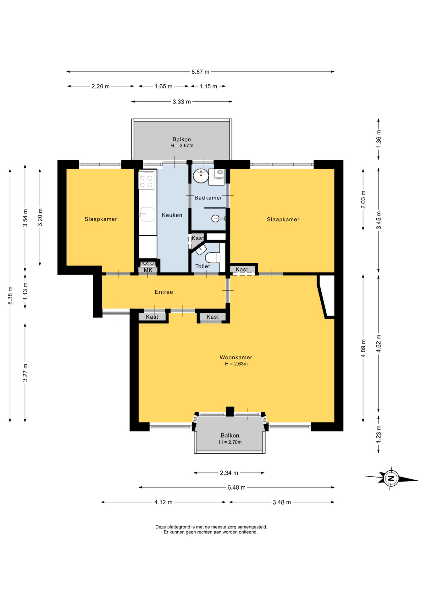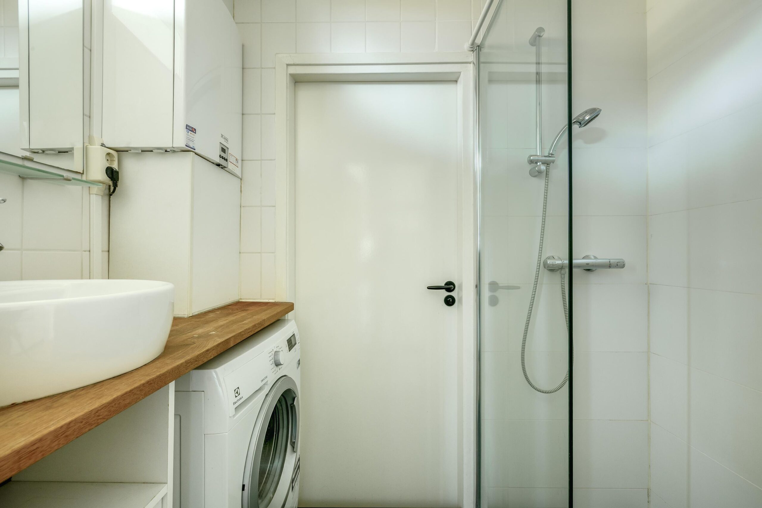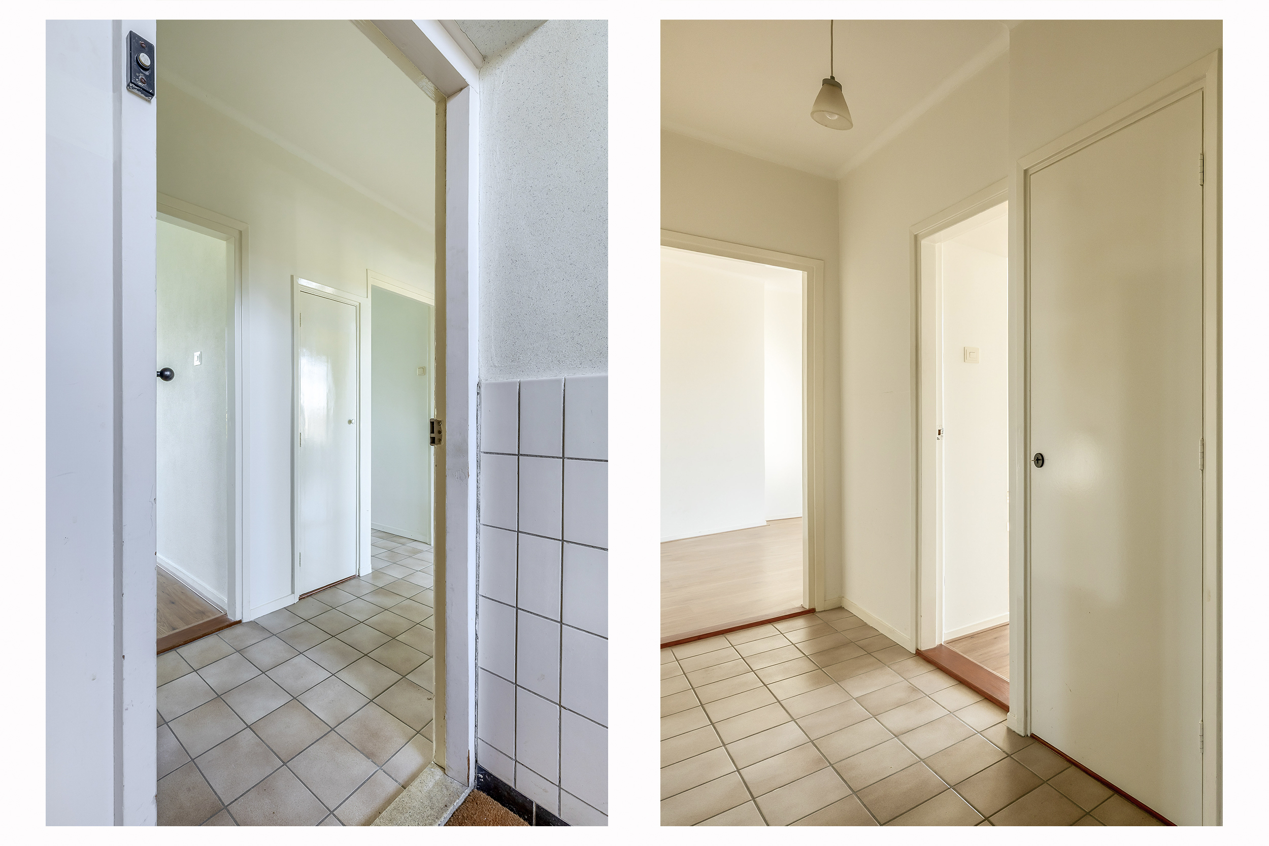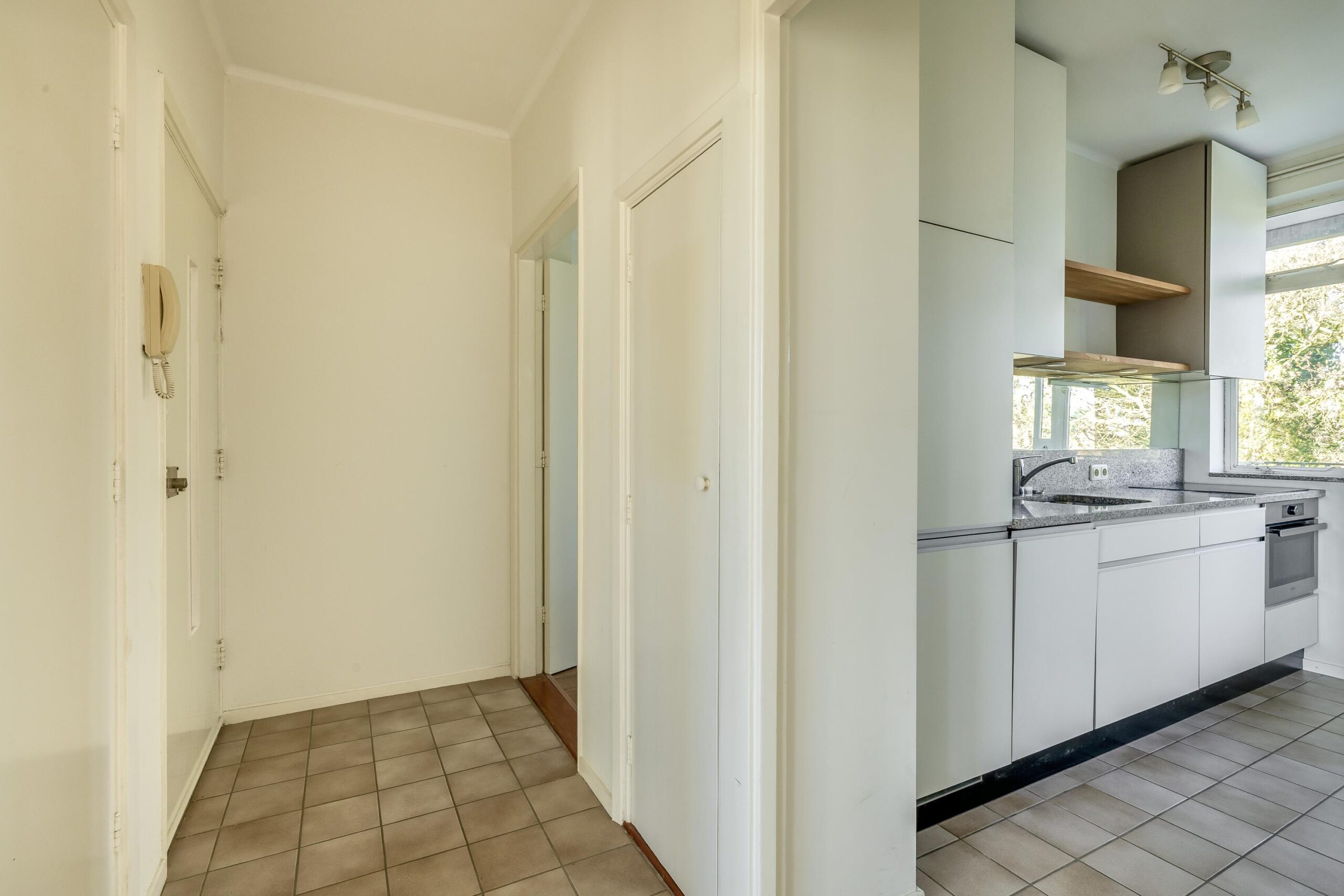 Indeling: Entree; hal met meterkast en vaste kast; gemoderniseerd toilet met hangend closet en fonteintje; slaapkamer I; moderne keuken uitgevoerd in een lichte kleurstelling met aanrechtblad van Portugees hardsteen en voorzien van vaste kast, designradiator en diverse inbouwapparatuur t.w.: koel-/vriescombinatie, vaatwasser, inductie kookplaat, afzuigkap en oven en toegang tot balkon; gemoderniseerde badkamer met inloopdouche, vloerverwarming, wastafeltafel met spiegelkast, aansluiting wasmachine, wasmachine en opstelling c.v.-ketel (Remeha Tzerra plus CW4 uit 2017)) en toegang tot balkon; slaapkamer II met toegang tot de badkamer en toegang naar ruime woonkamer (voorheen twee kamers) (die tevens vanuit de hal bereikbaar is) met toegang tot balkon en twee vaste kasten.