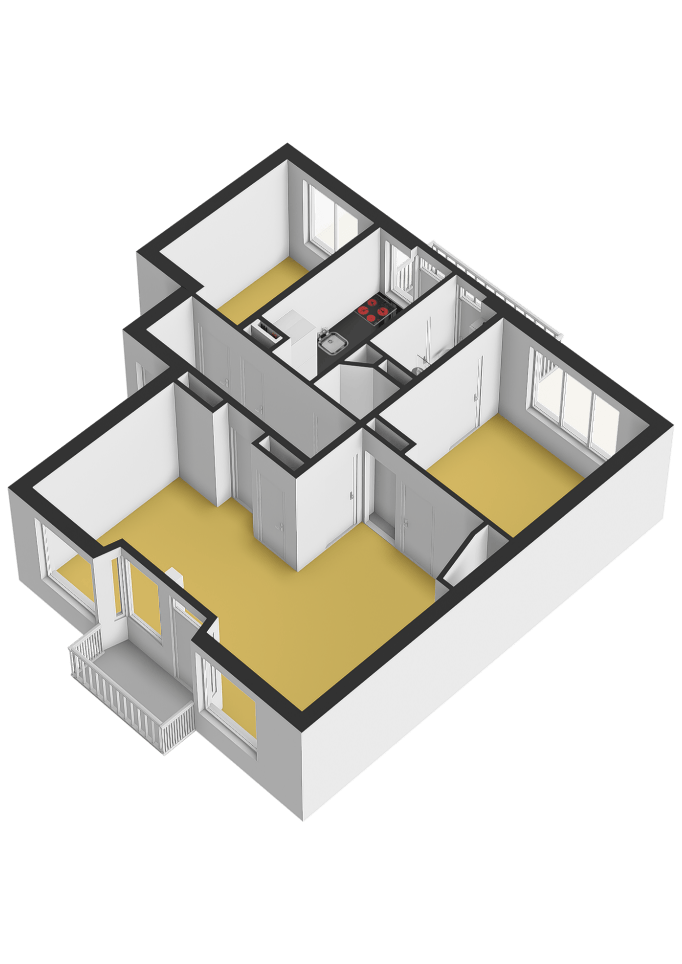 – Twee balkons (één aan de voorzijde (Oost) en één aan de achterzijde (West);