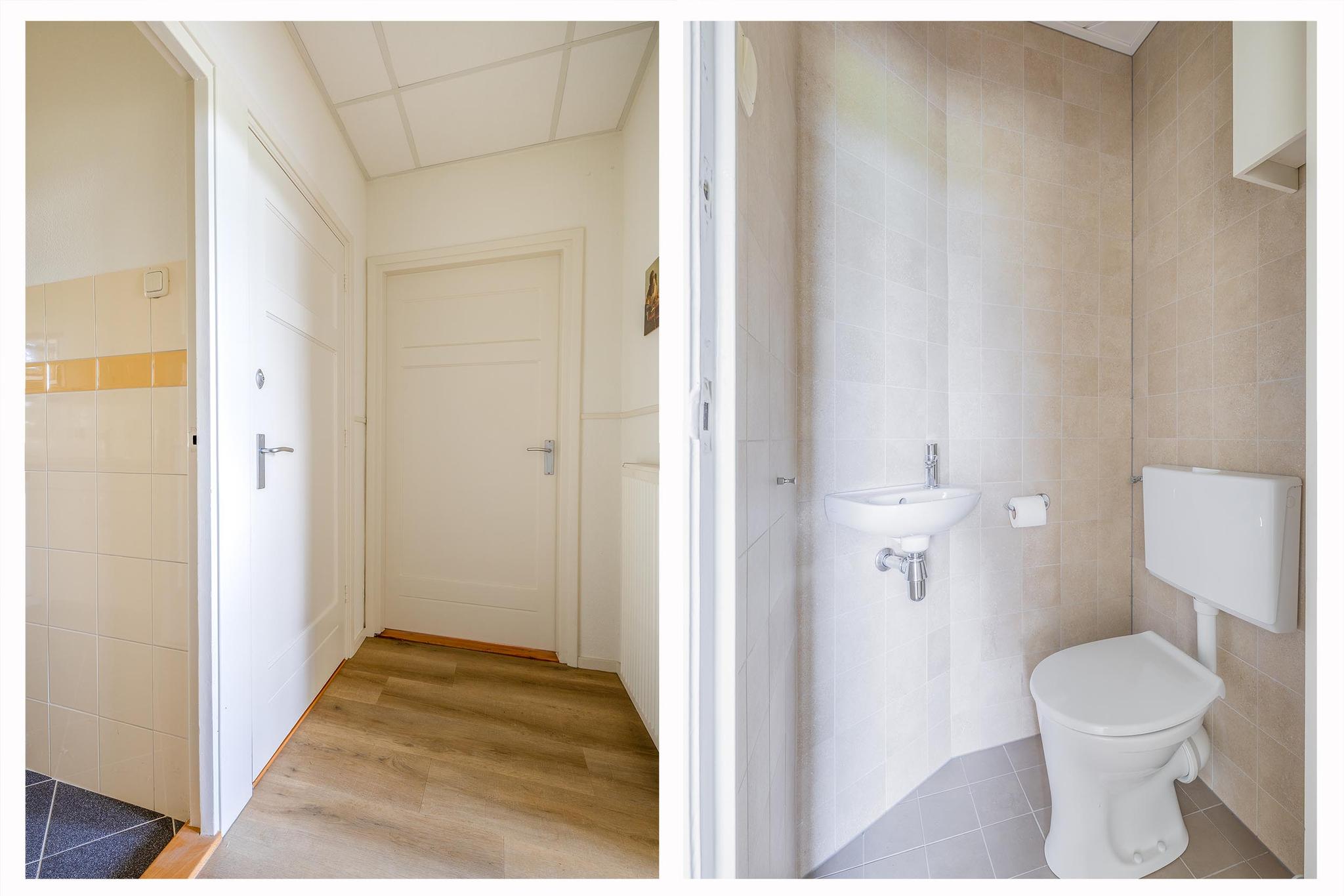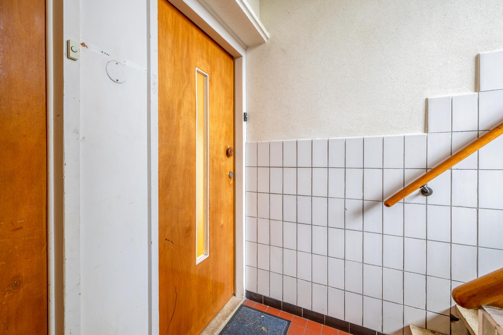 De centrale afgesloten hal geeft toegang tot de brievenbus en de trapopgangen naar de woning evenals de trap naar de berging.