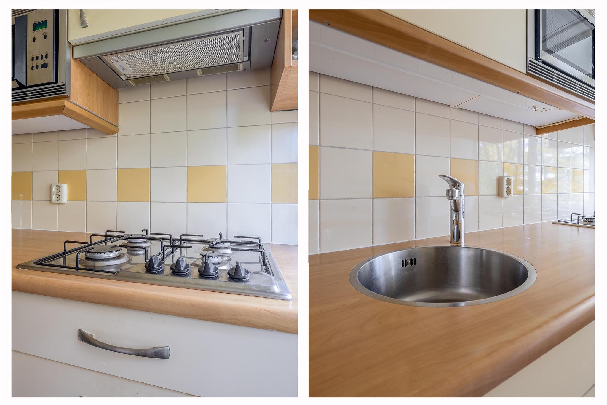 De woonkamer is sfeervol en biedt toegang tot de eetkamer via de originele schuifdeur en is voorzien van twee inbouw kasten. De praktische nette keuken is van alle gemakken voorzien en bied toegang tot één van de balkons. In de badkamer is een ruime douche met schuifdeur en een wastafel met design radiator.