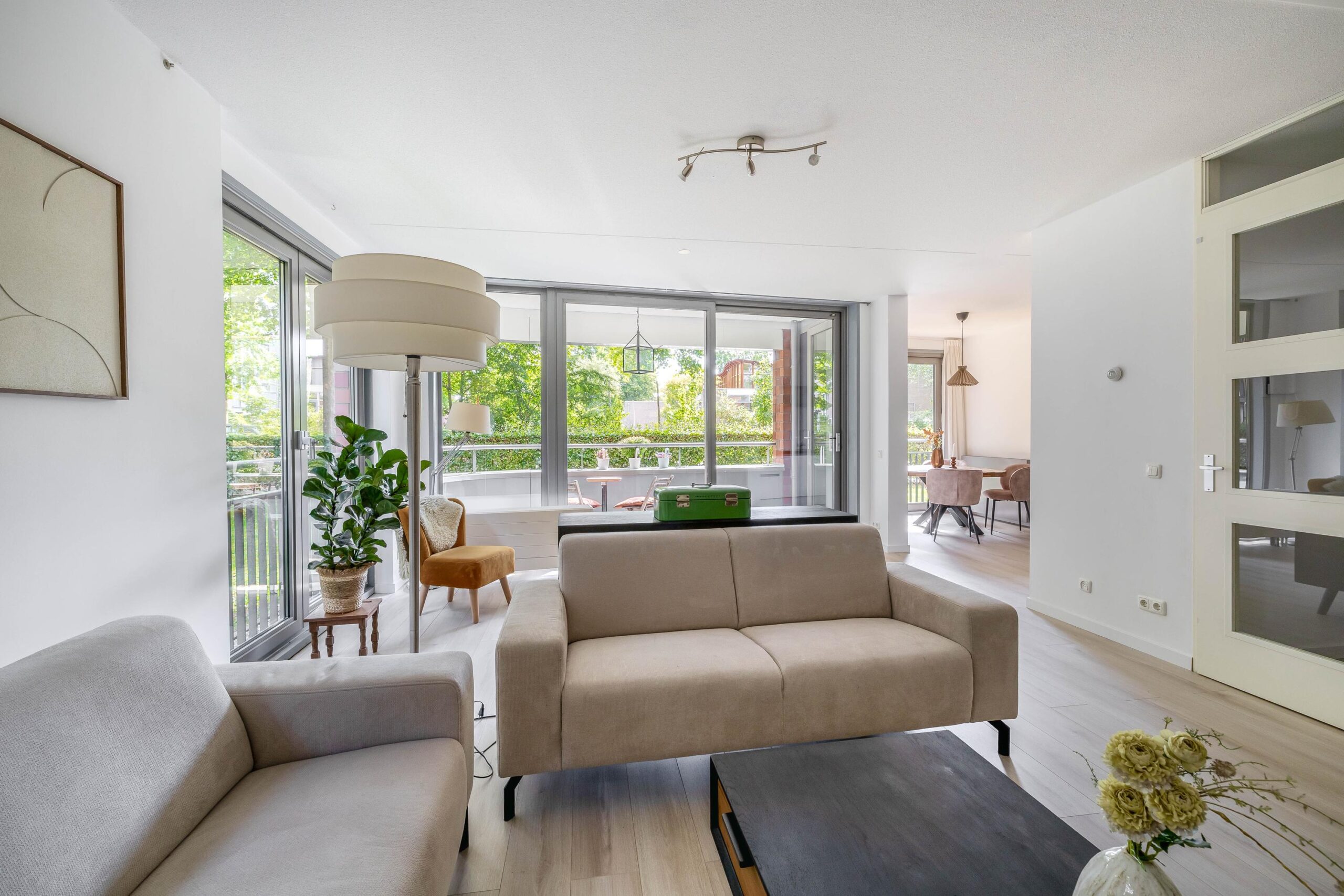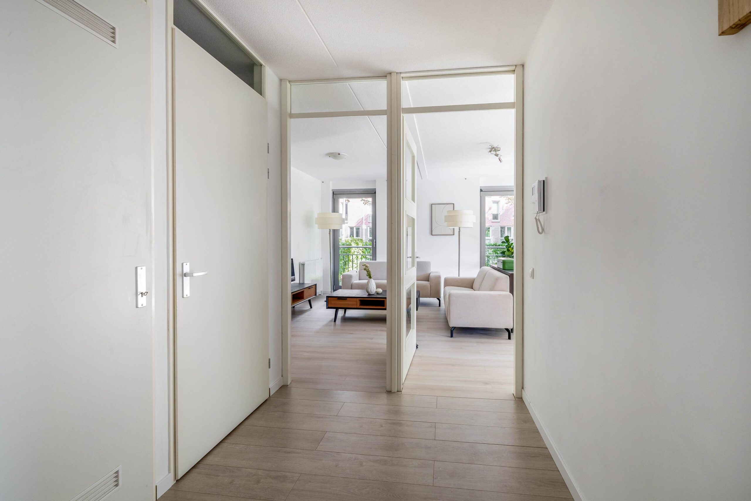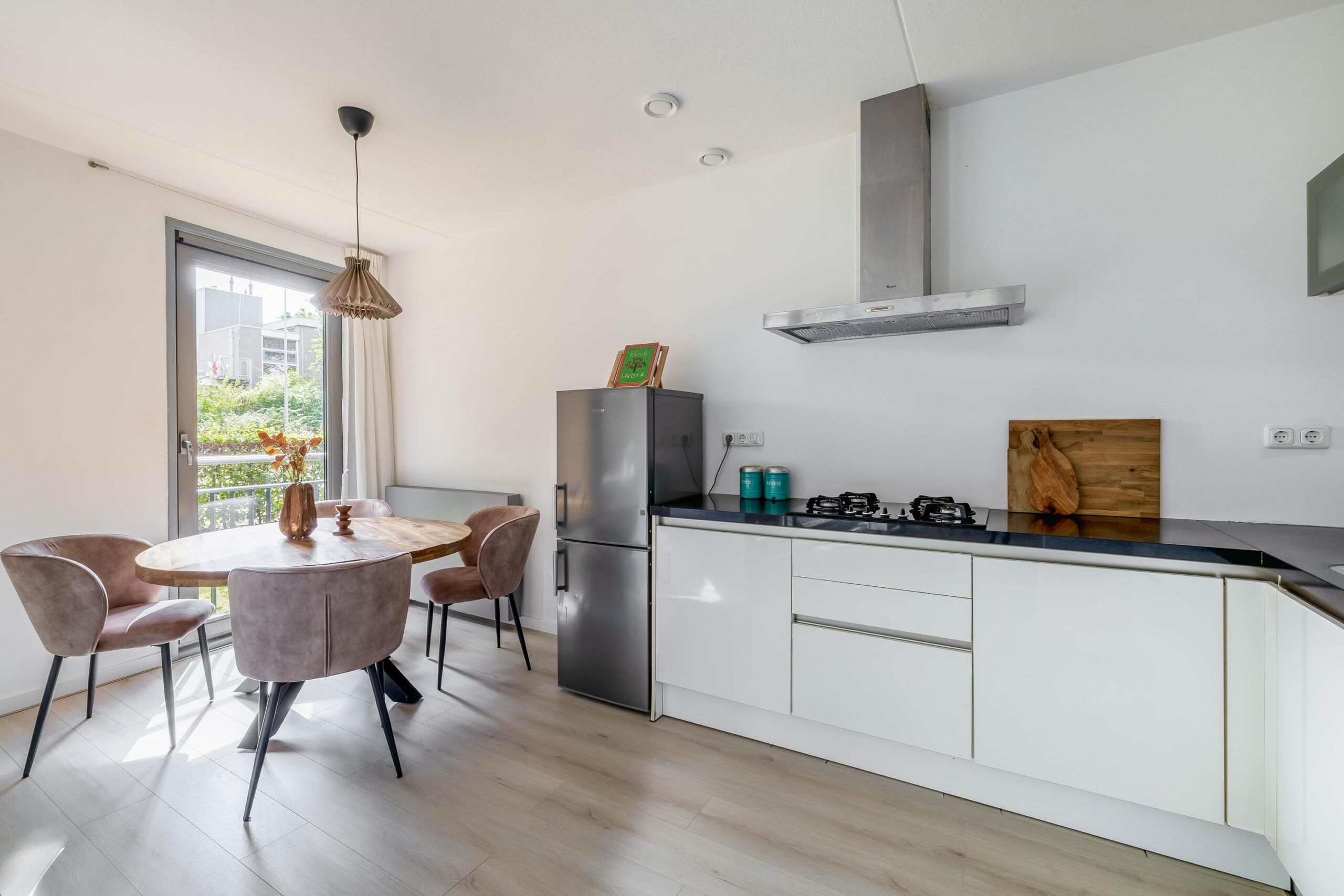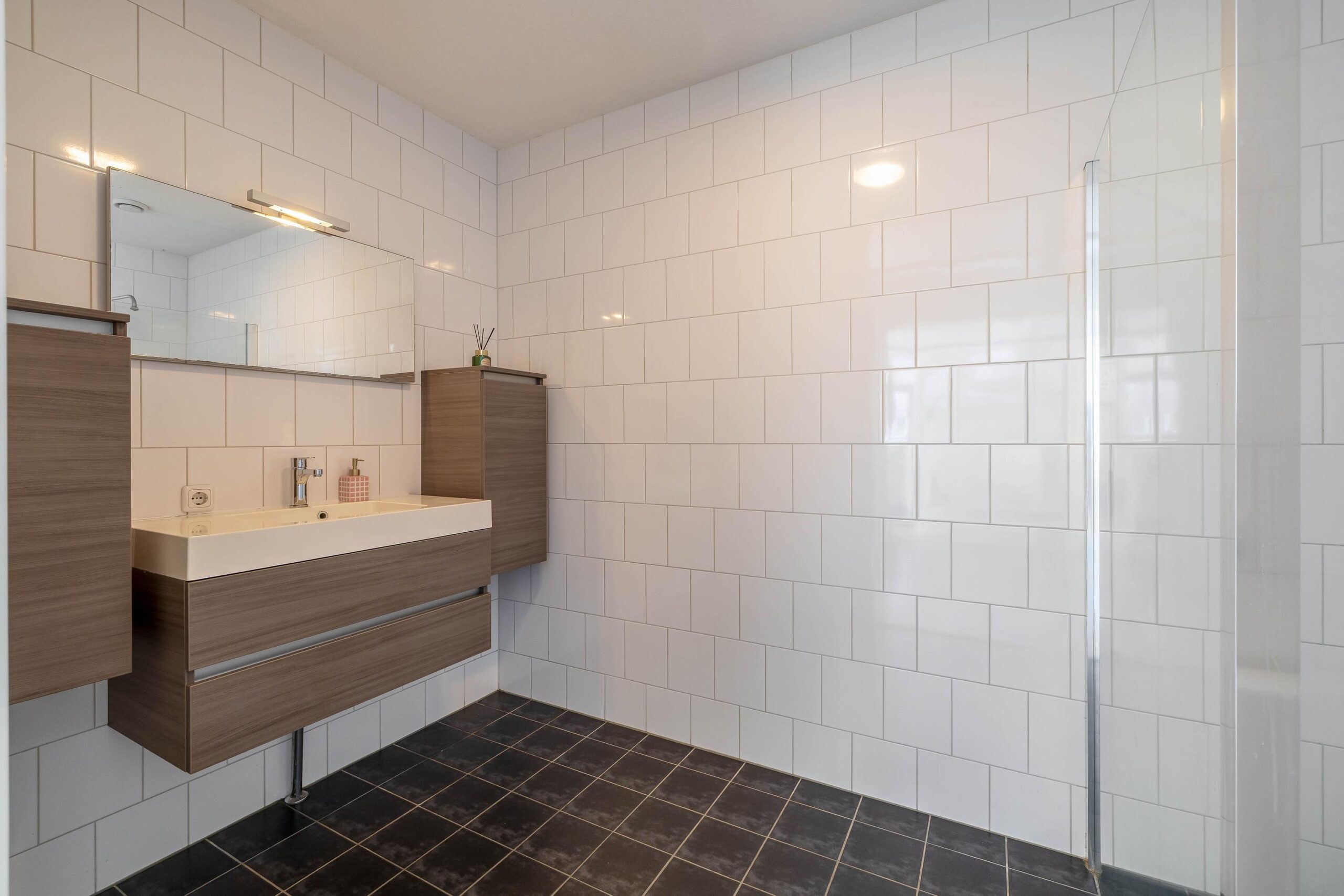 wasmachine- en droger, opstelling c.v.- ketel, veel bergruimte en voorzien van mechanische ventilatie, moderne, ruime badkamer voorzien van een inloop-regendouche met thermostaatkraan, brede wastafel met houtkleurige onderkast en twee bijbehorende kasten aan de zijkant, ruime woonkamer met een schuifpui naar het ruime balkon, de woonkamer heeft tevens twee Franse balkons, waarvan één met dubbele deuren, waardoor de kamer profiteert van veel lichtinval,