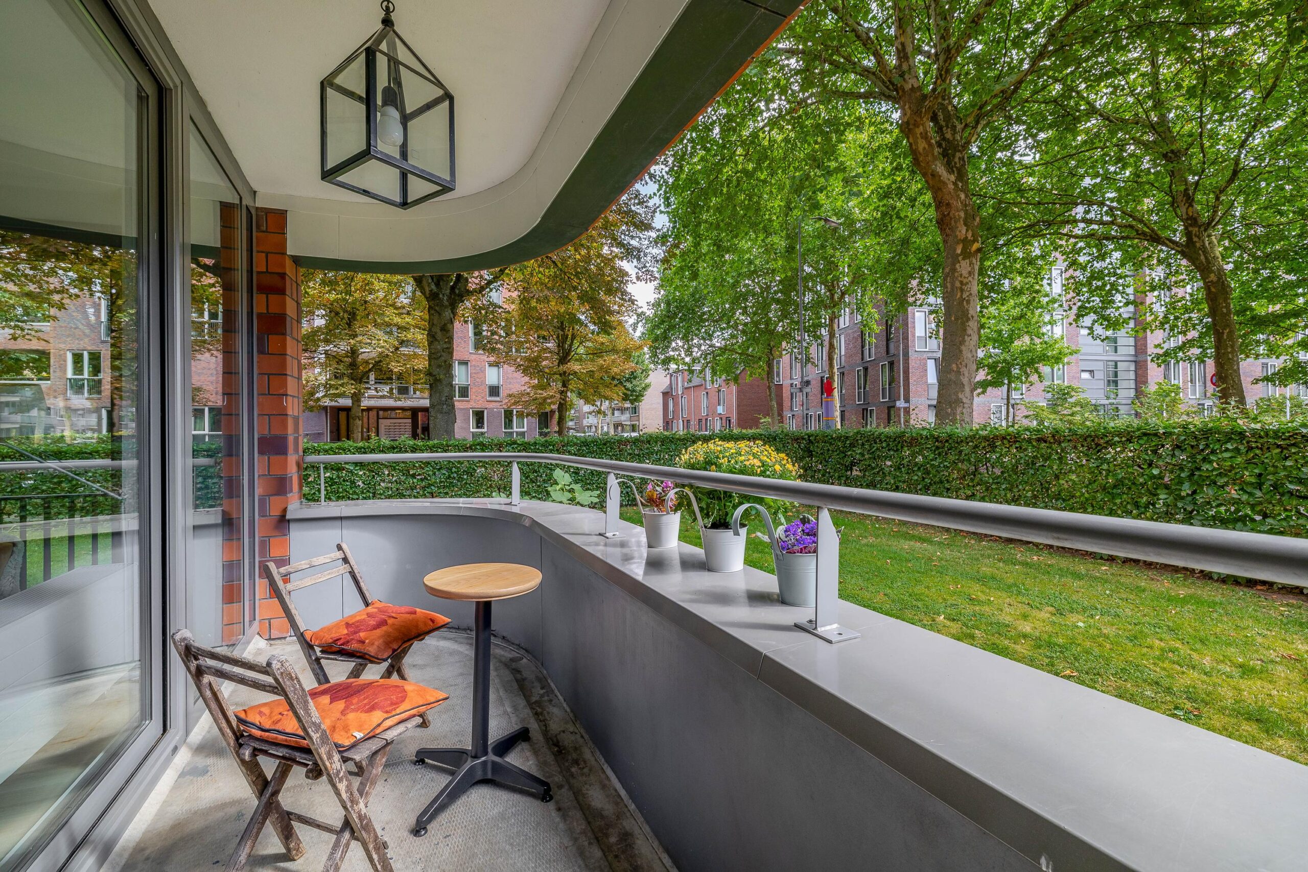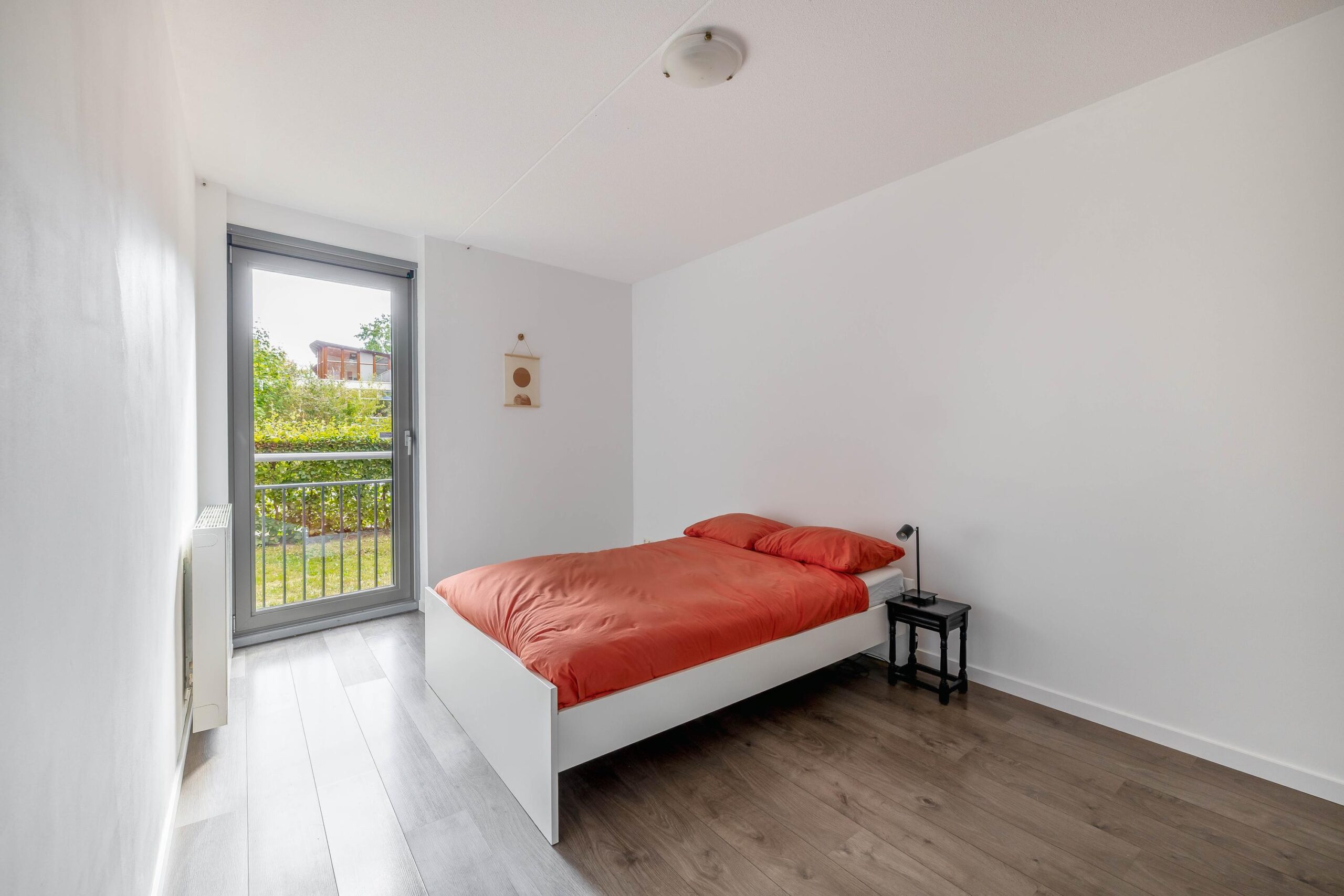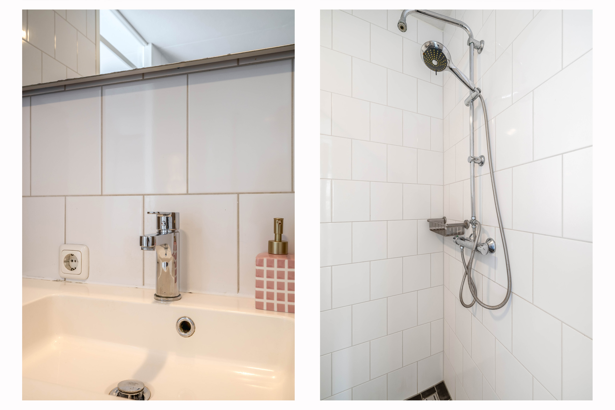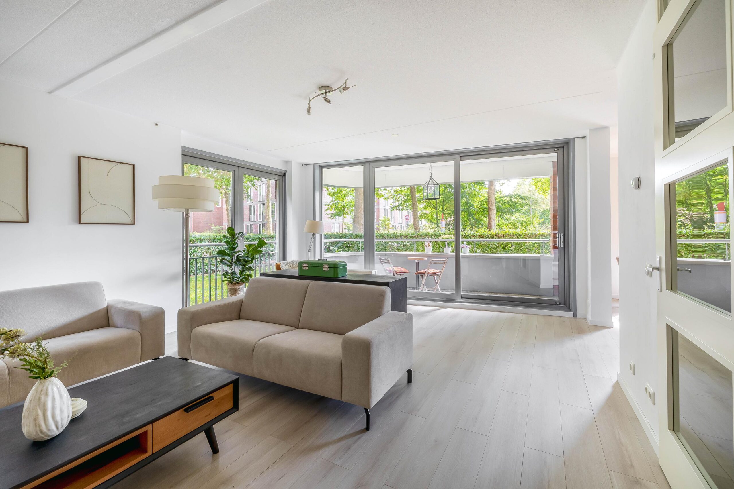 wasmachine- en droger, opstelling c.v.- ketel, veel bergruimte en voorzien van mechanische ventilatie, moderne, ruime badkamer voorzien van een inloop-regendouche met thermostaatkraan, brede wastafel met houtkleurige onderkast en twee bijbehorende kasten aan de zijkant, ruime woonkamer met een schuifpui naar het ruime balkon, de woonkamer heeft tevens twee Franse balkons, waarvan één met dubbele deuren, waardoor de kamer profiteert van veel lichtinval,