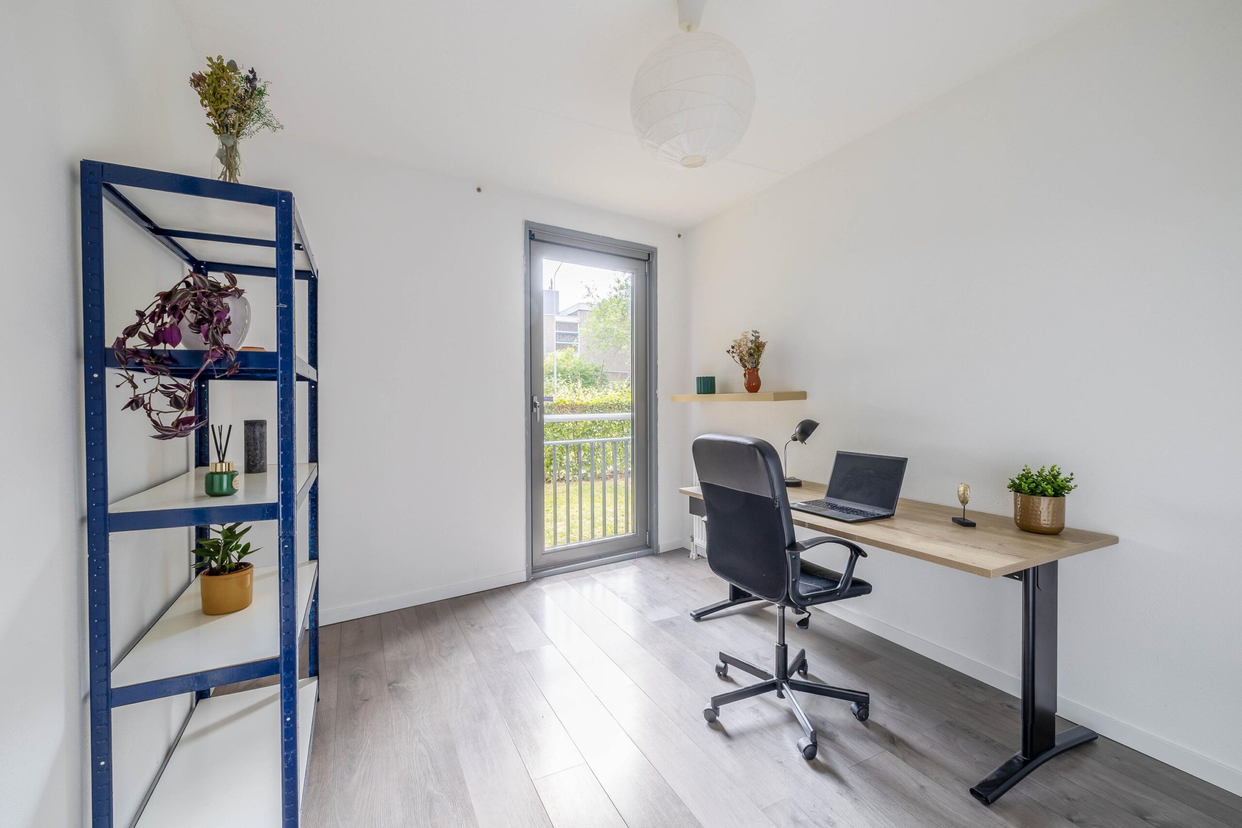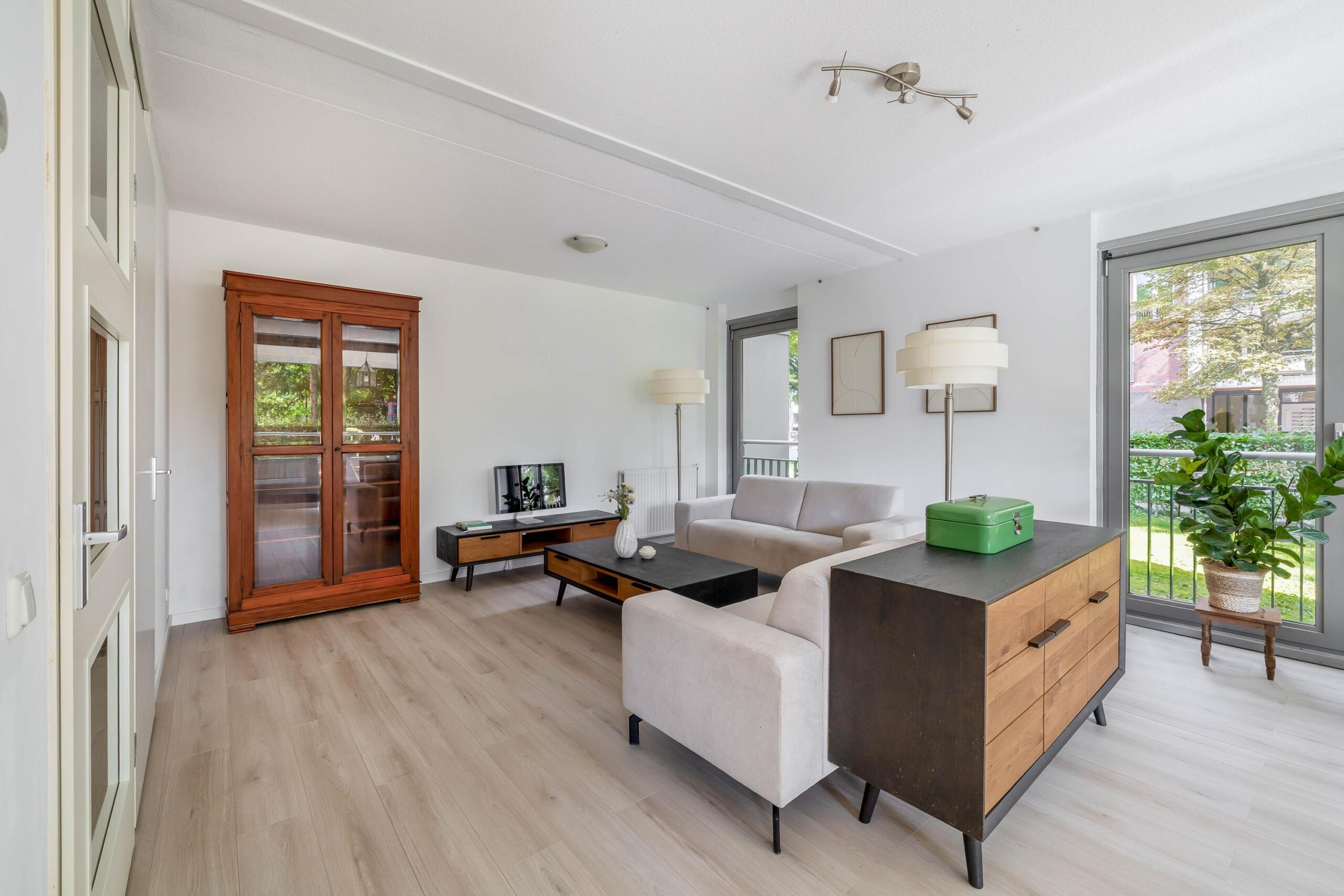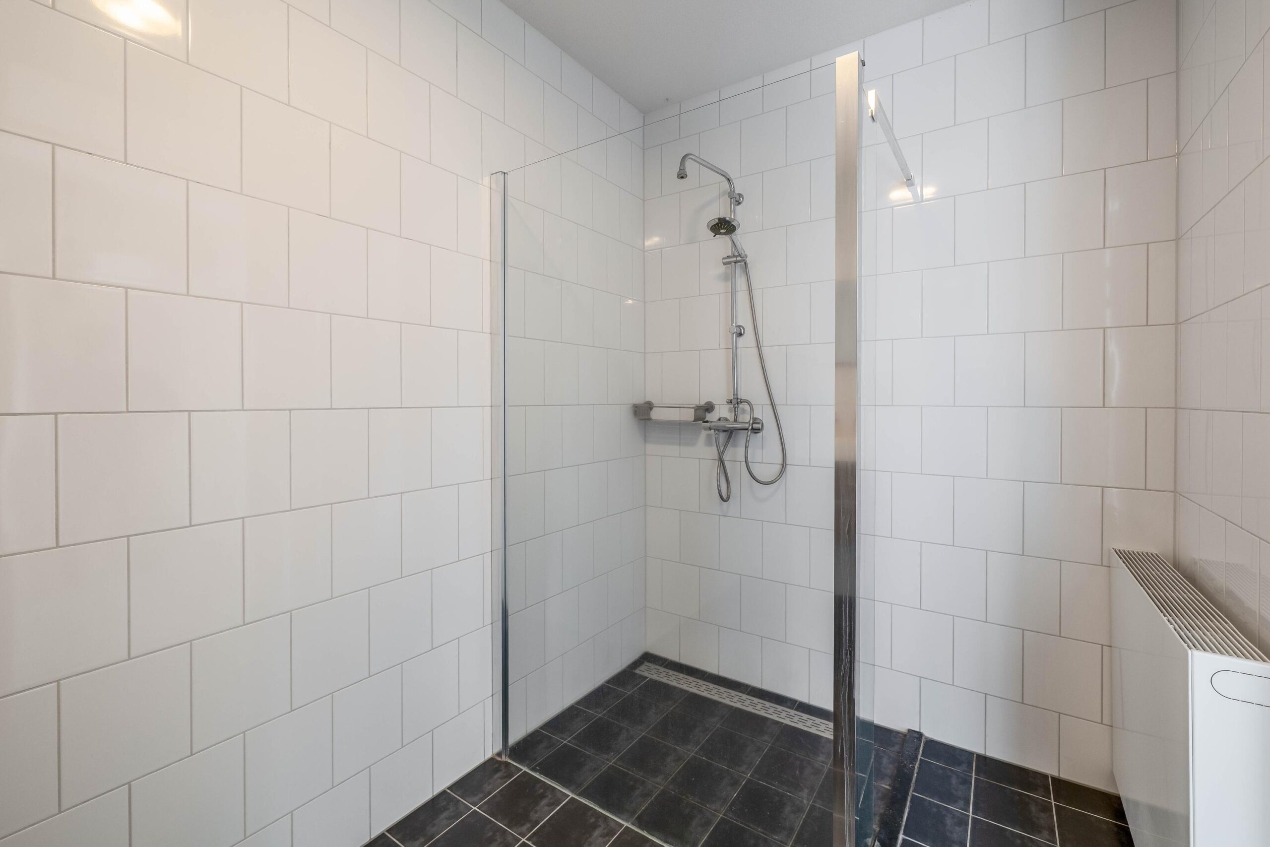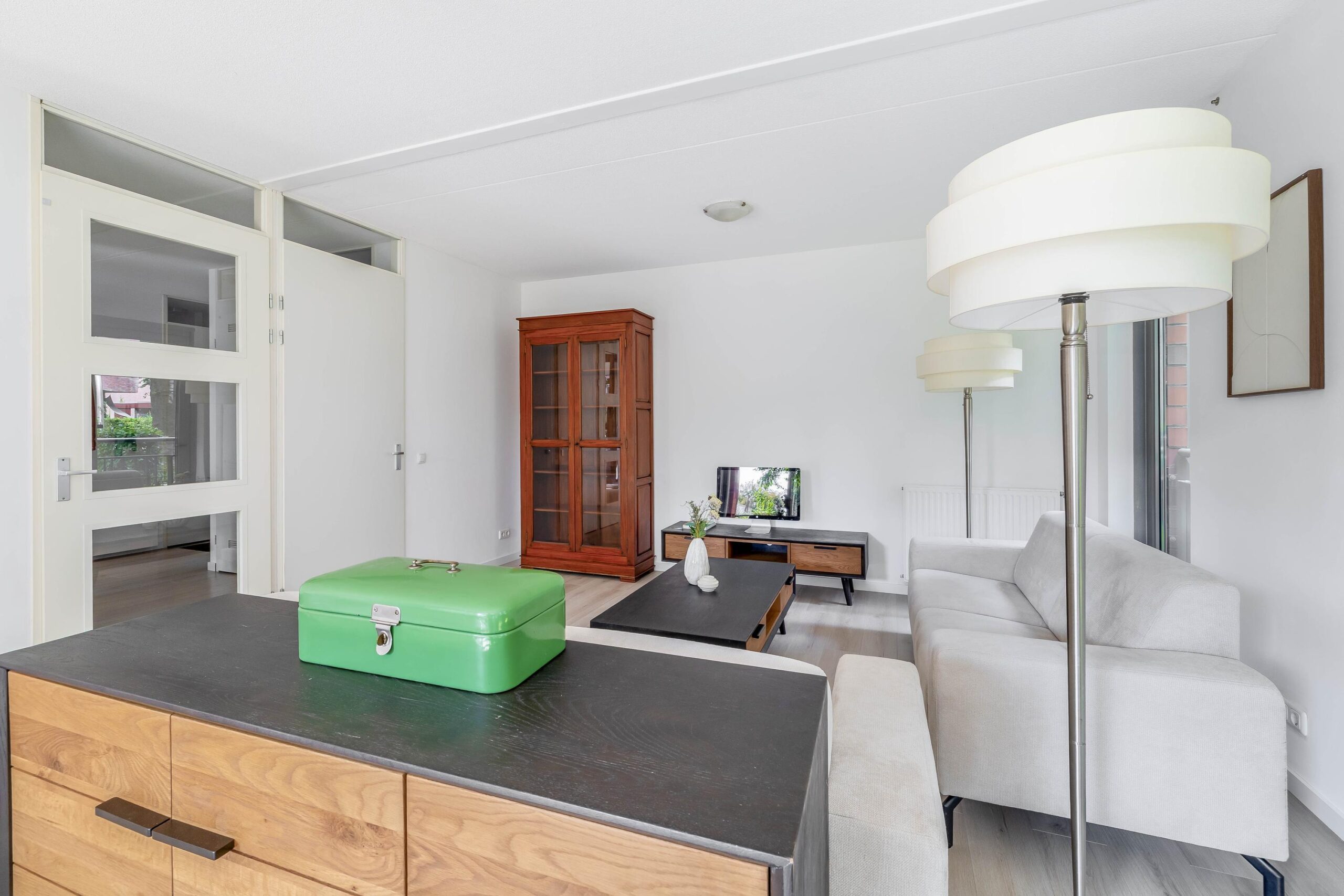wasmachine- en droger, opstelling c.v.- ketel, veel bergruimte en voorzien van mechanische ventilatie, moderne, ruime badkamer voorzien van een inloop-regendouche met thermostaatkraan, brede wastafel met houtkleurige onderkast en twee bijbehorende kasten aan de zijkant, ruime woonkamer met een schuifpui naar het ruime balkon, de woonkamer heeft tevens twee Franse balkons, waarvan één met dubbele deuren, waardoor de kamer profiteert van veel lichtinval,