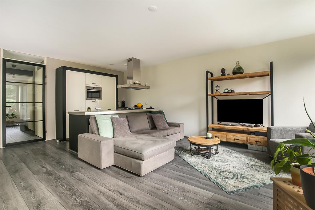 Entree; gang; meterkast; badkamer tot plafond betegeld en v.v. ligbad, inloop douche en wastafelmeubel met ronde spiegel; voorraad ruimte met aansluiting voor wasmachine en wasdroger, cv-ketel Remeha HR 2016; slaapkamer I; slaapkamer II; separaat toilet met fontein; royale en sfeervolle woonkamer met toegang tot overdekt balkon; open keuken met eiland in rechte opstelling geplaatst en v.v. gas op glas, afzuigkap, vaatwasser, combi magnetron, koelkast en vriezer.