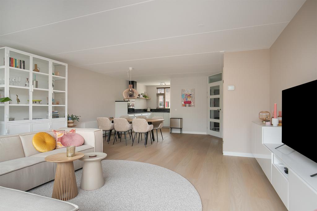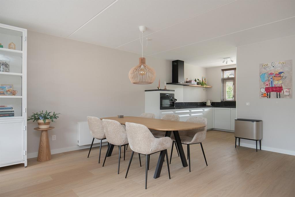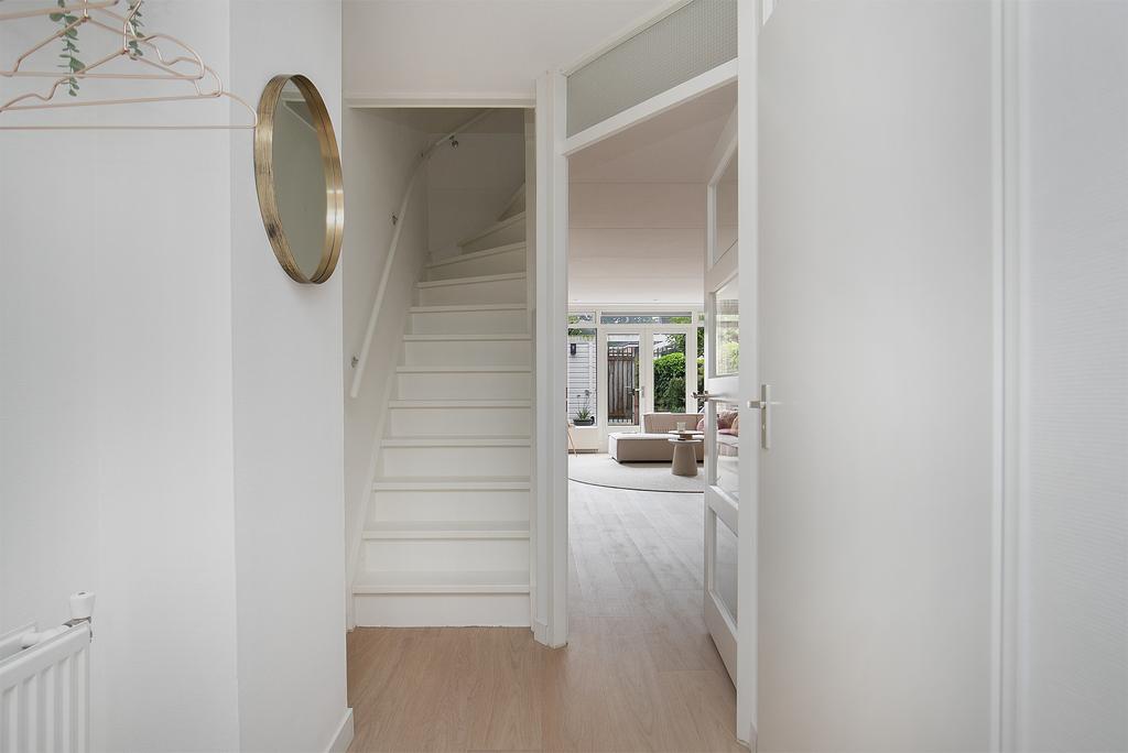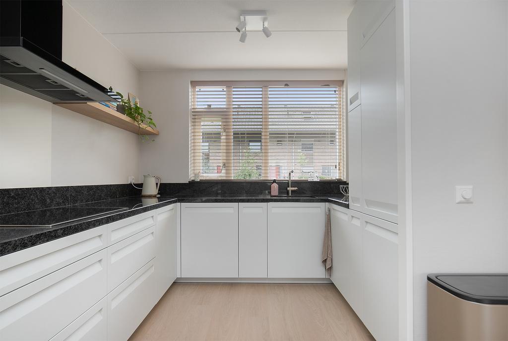 Mooi onderhouden en in mei 2023 van binnen geheel nieuw geschilderde, sfeervolle tussenwoning met vrijstaande houten berging. De woning beschikt over 4 royale slaapkamers, uitgebouwde woonkamer met nieuwe PVC-vloer, veel lichtinval en dubbele deuren naar de fraaie zonnige achtertuin met nieuwe verlichting en nieuwe beplanting. Luxe ruime keuken van slechts 2 jaar oud met granieten aanrechtblad, apothekerskast, combinatie (stoom)oven/magnetron, inductie kookplaat en Siemens vaatwasser. Keurig sanitair met nieuw badmeubilair en voldoende bergruimte mede door de vliering. Deze woning kenmerkt zich verder door een verzorgde afwerking waarbij gebruik is gemaakt van rustige kleurstellingen. Ook het onderhoud is altijd goed uitgevoerd. Daarnaast is de gehele woning voorzien van nieuwe raambekleding, verlichting, wandcontactdozen en led-dimmers op de benedenverdieping, nieuw ventilatiesysteem, recent vervangen Remeha CV-ketel, nieuwe horren en nieuw Velux-dakraam op de zolderkamer.
