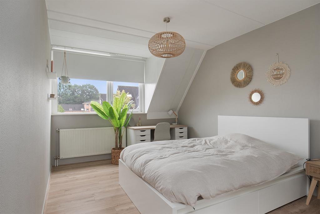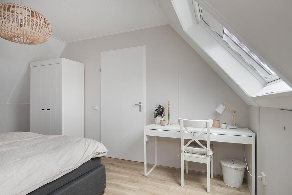 2e verdieping: voorzolder met cv-ketel (Remeha HR 2021), wasmachine en wasdroger aansluiting; slaapkamer IV met dakvenster en bergruimte achter knieschotten.