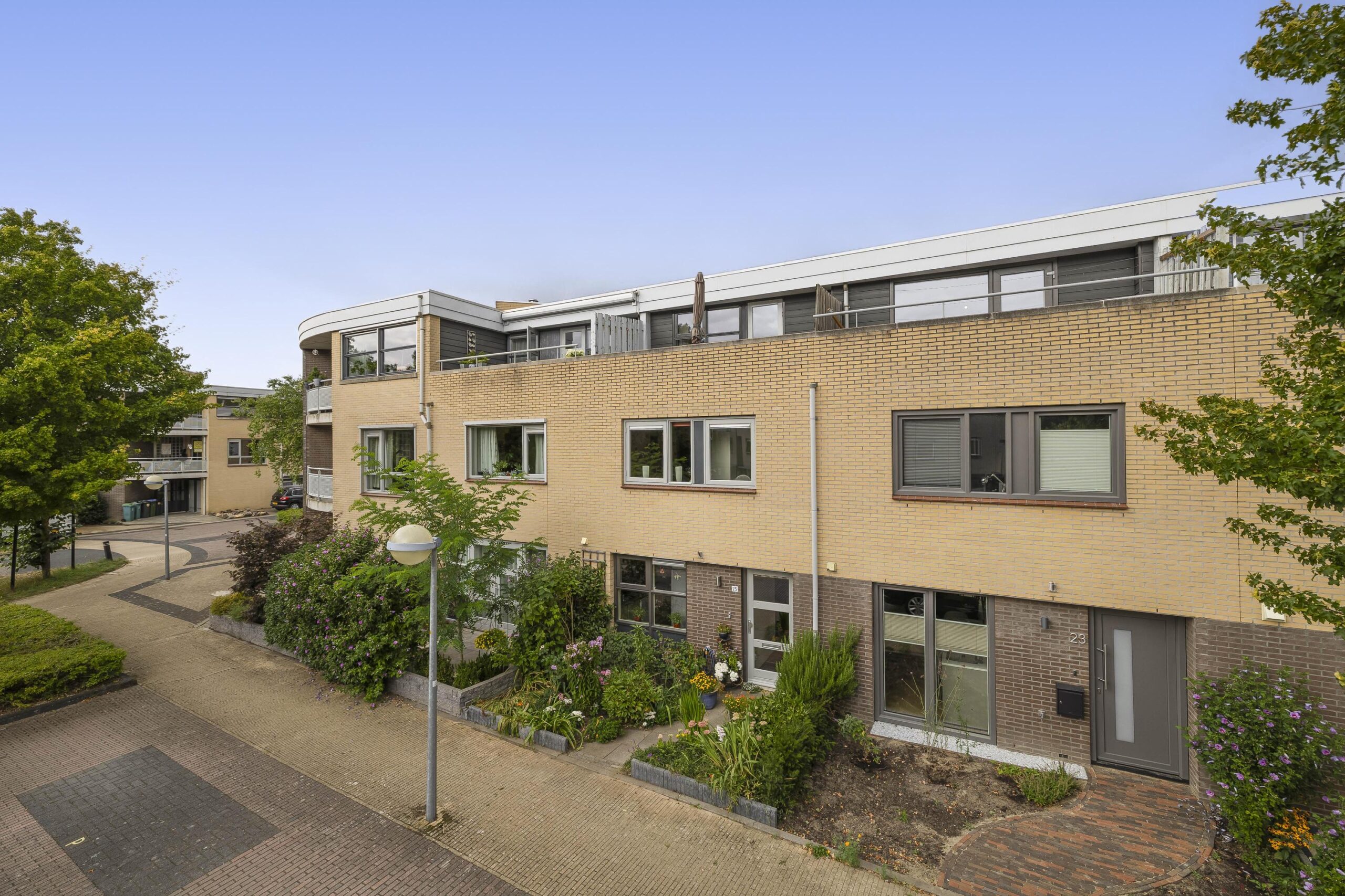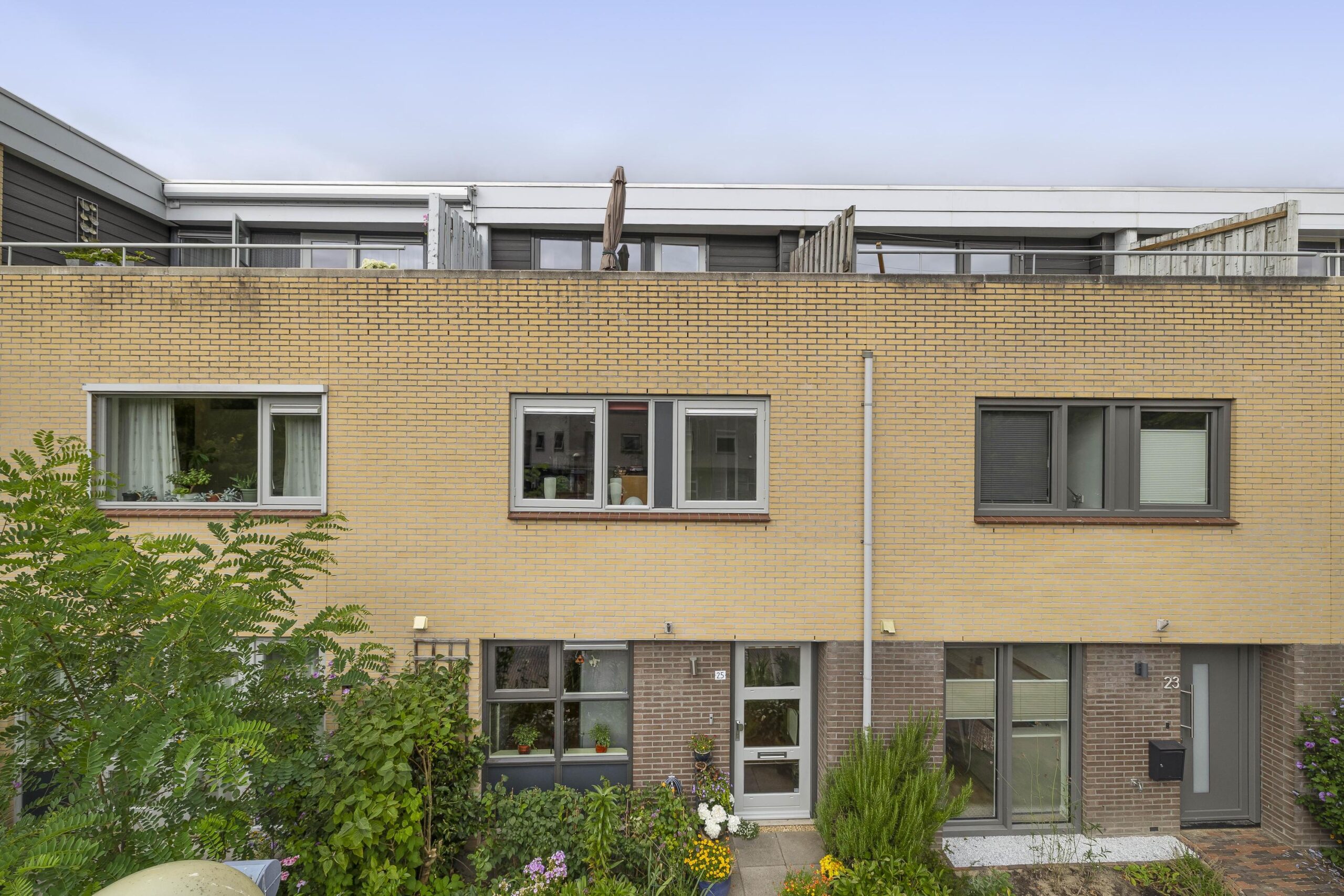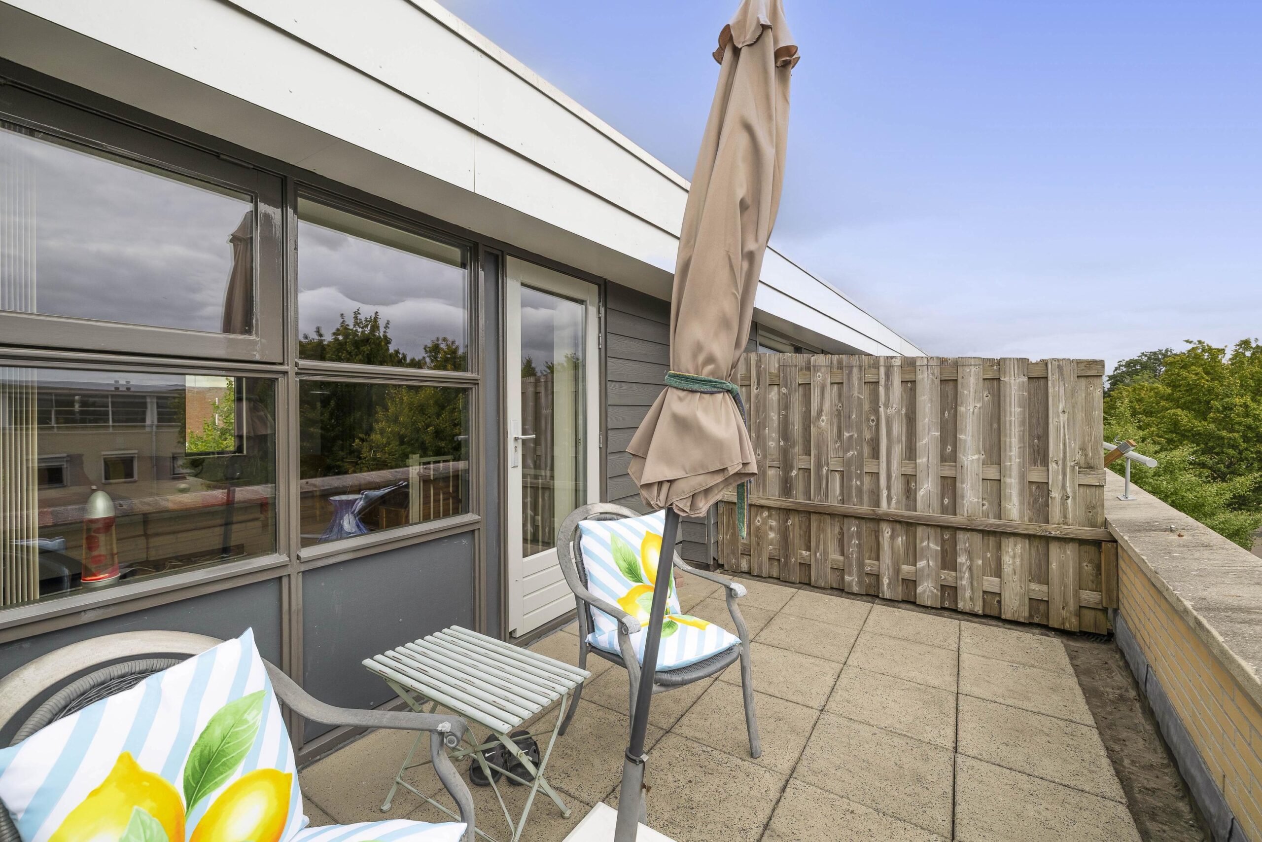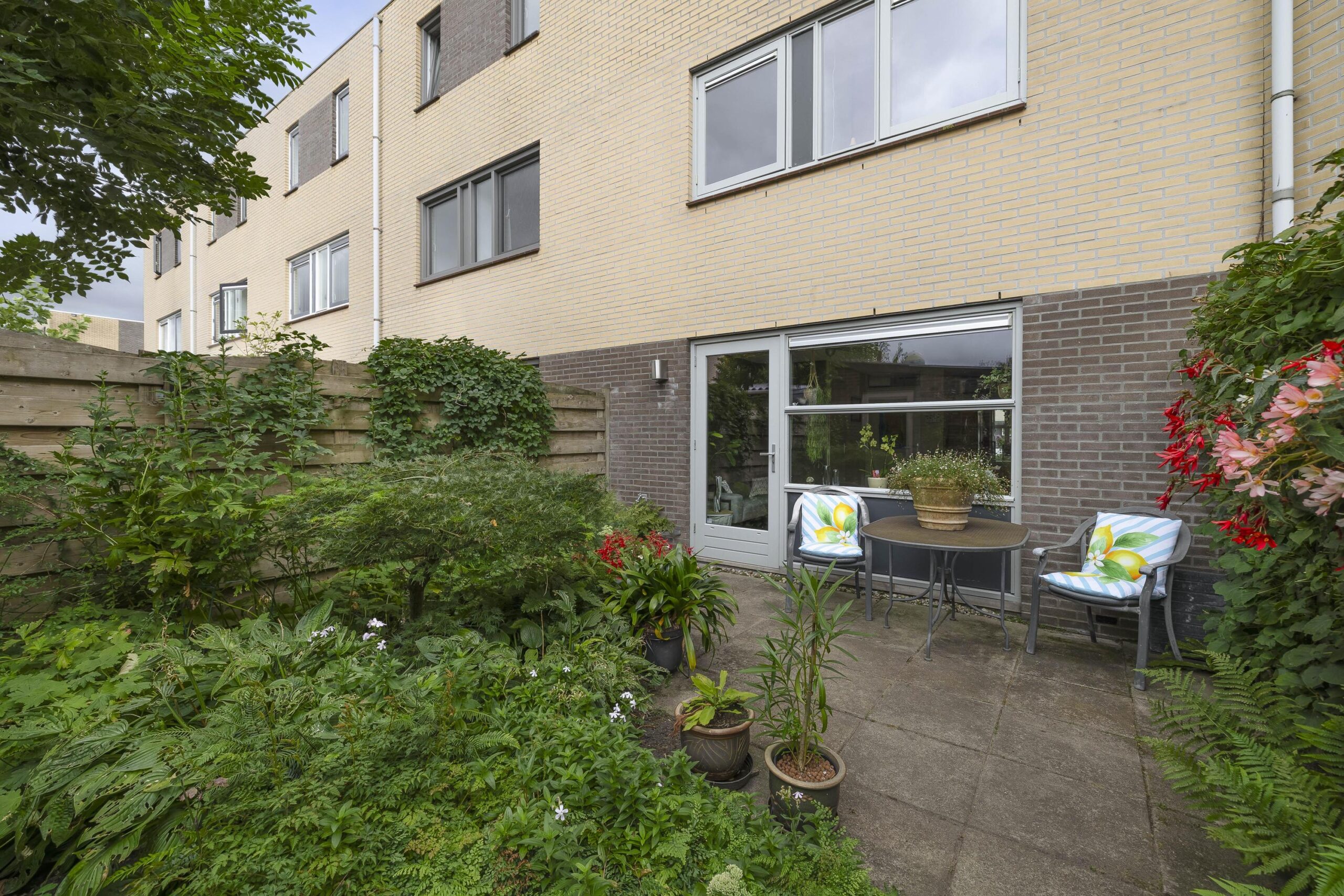 – Achtertuin gelegen op het noodwesten met een vrijstaande stenen berging en dakterras gelegen op het zuidoosten zodat
