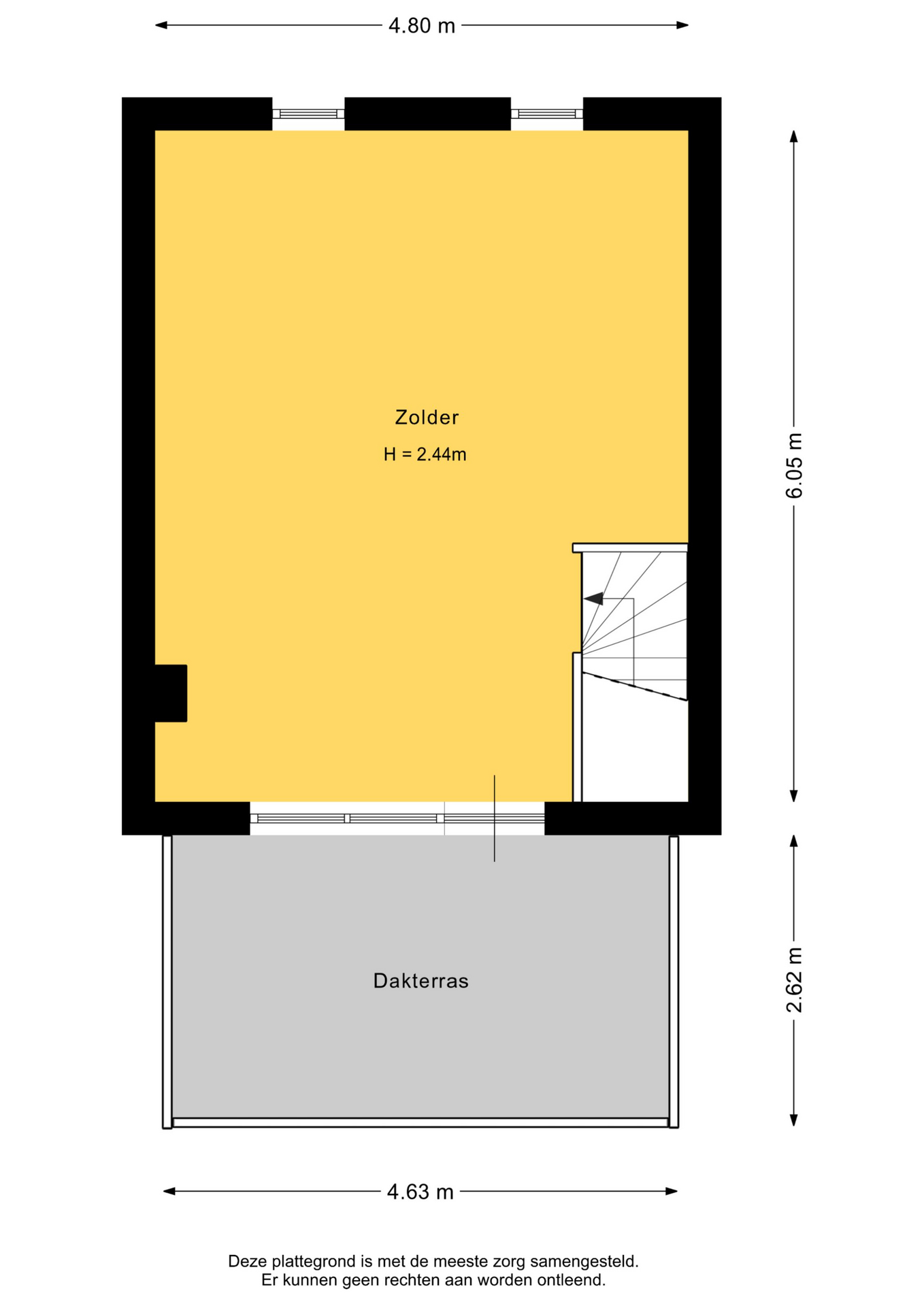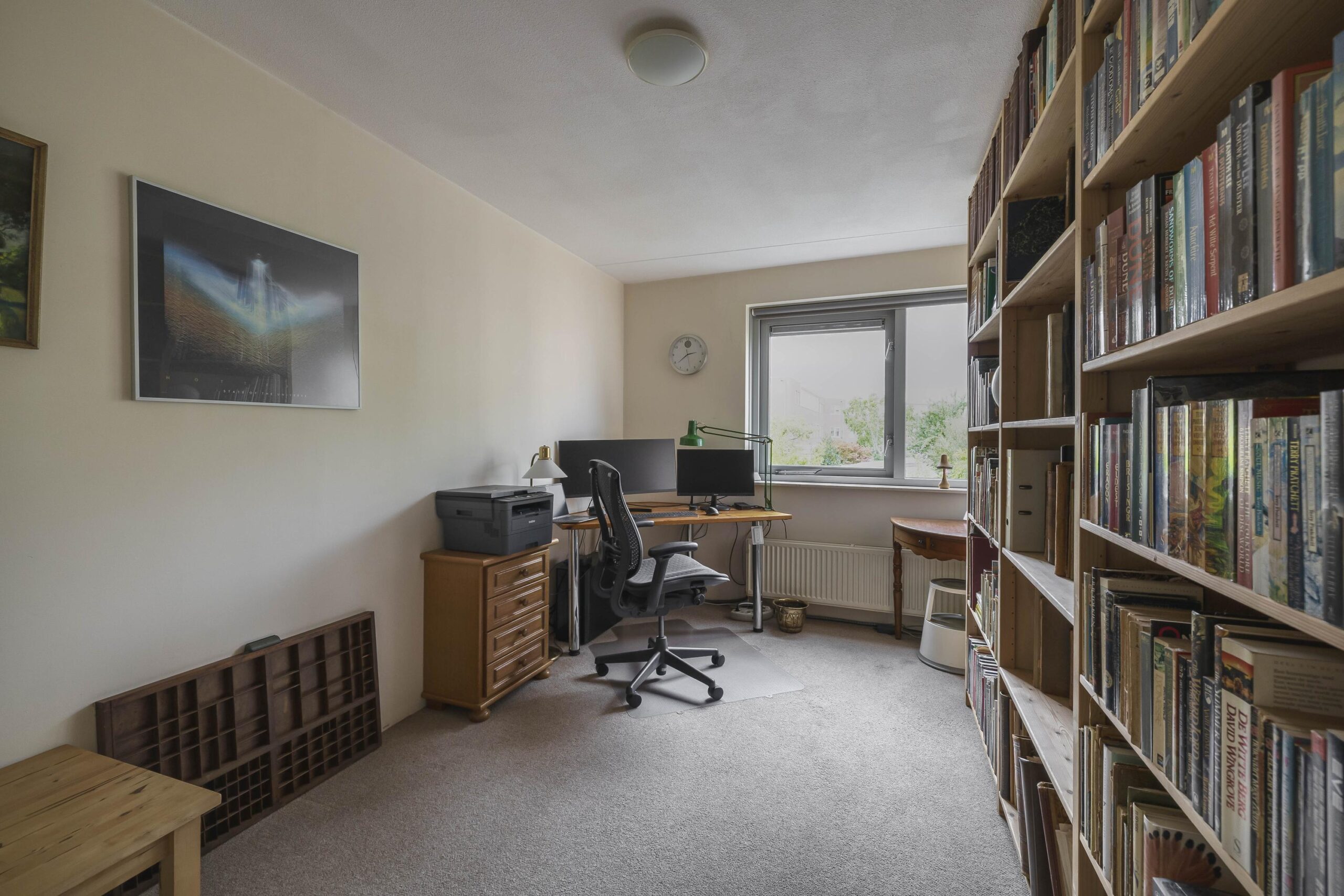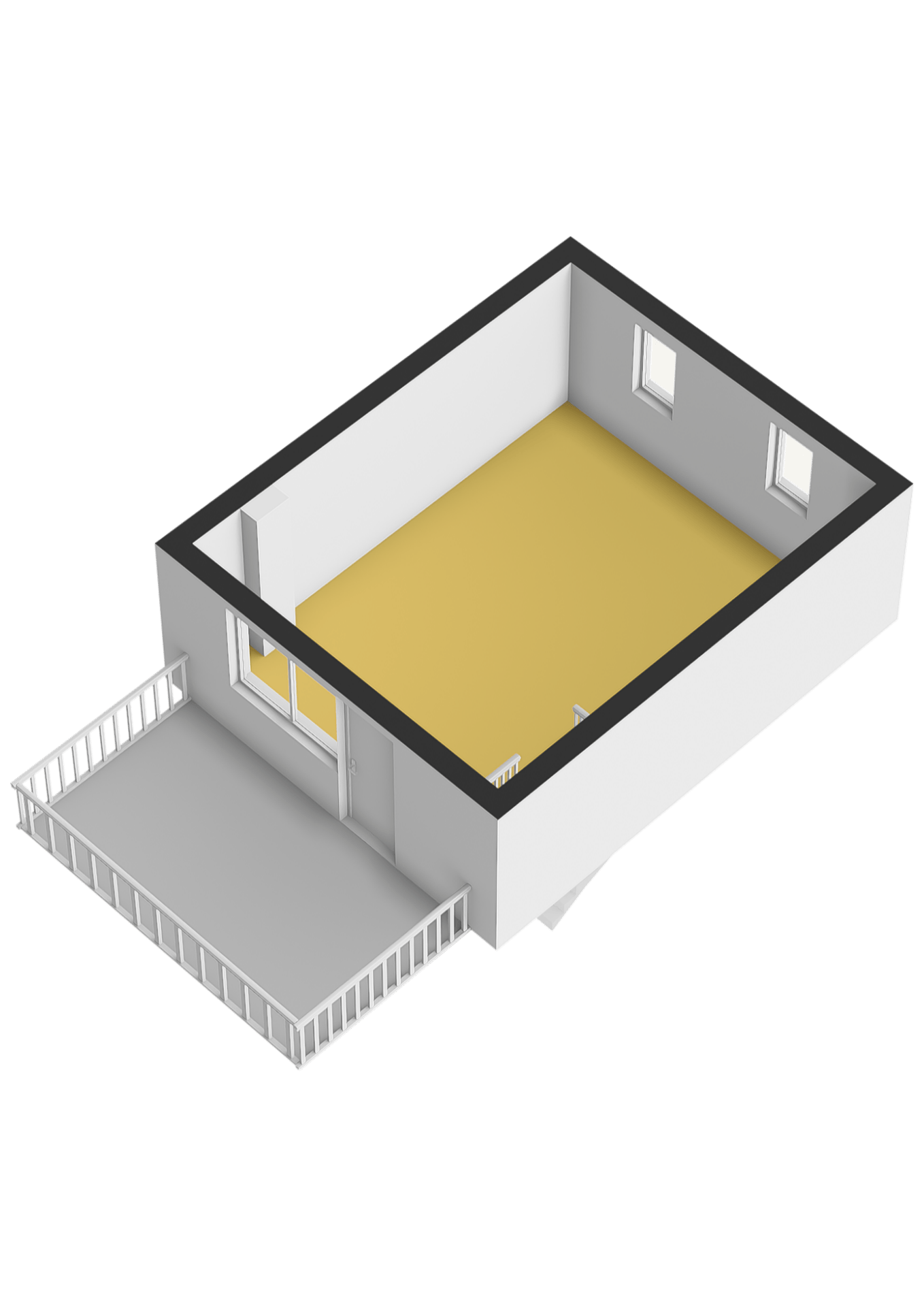 2e verdieping: Grote zolderruimte thans ingericht als slaapkamer met opstelling mechanische ventilatie-box en toegang tot het dakterras. Deze verdieping biedt de mogelijkheid om een tweede slaapkamer te creëren.