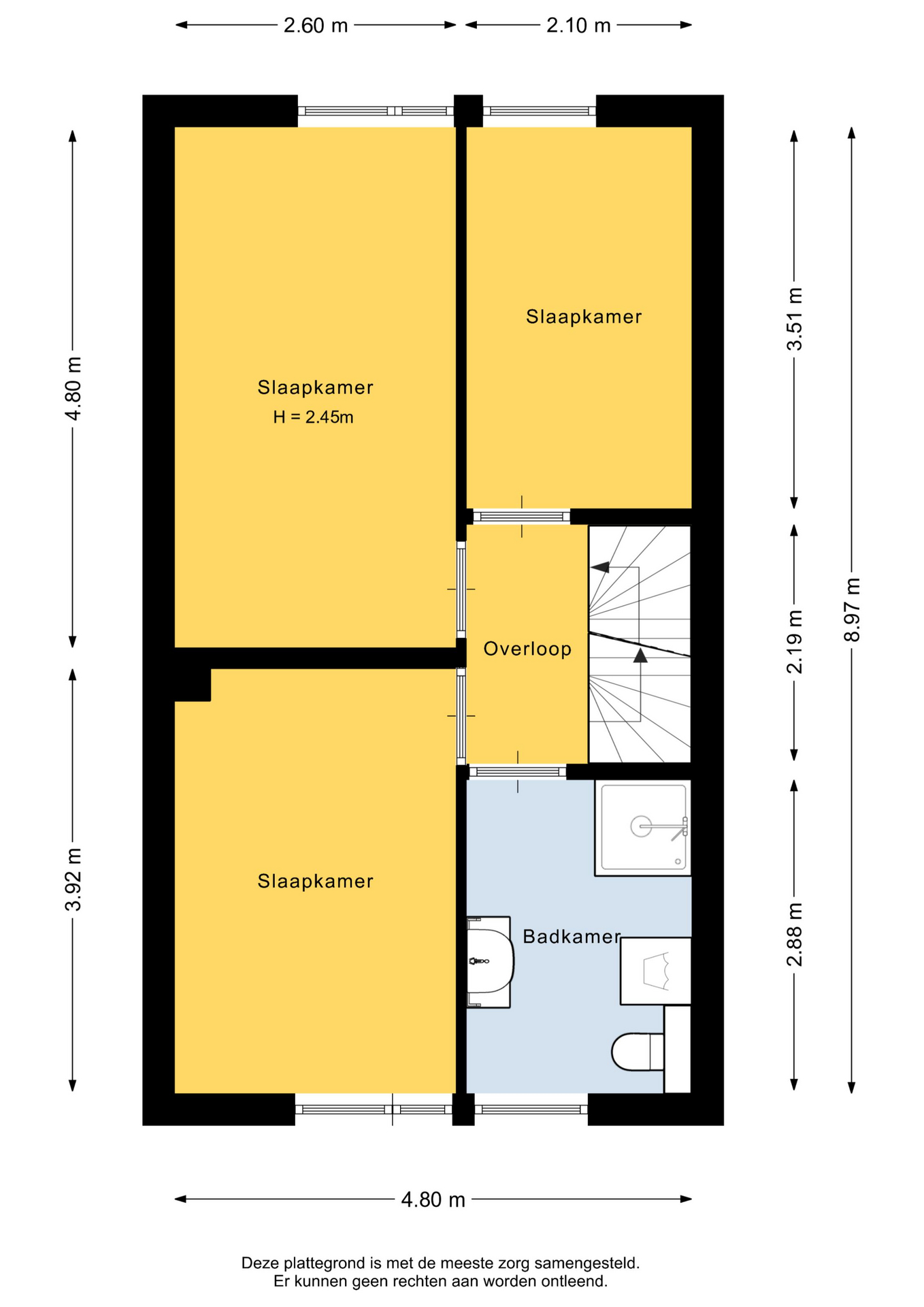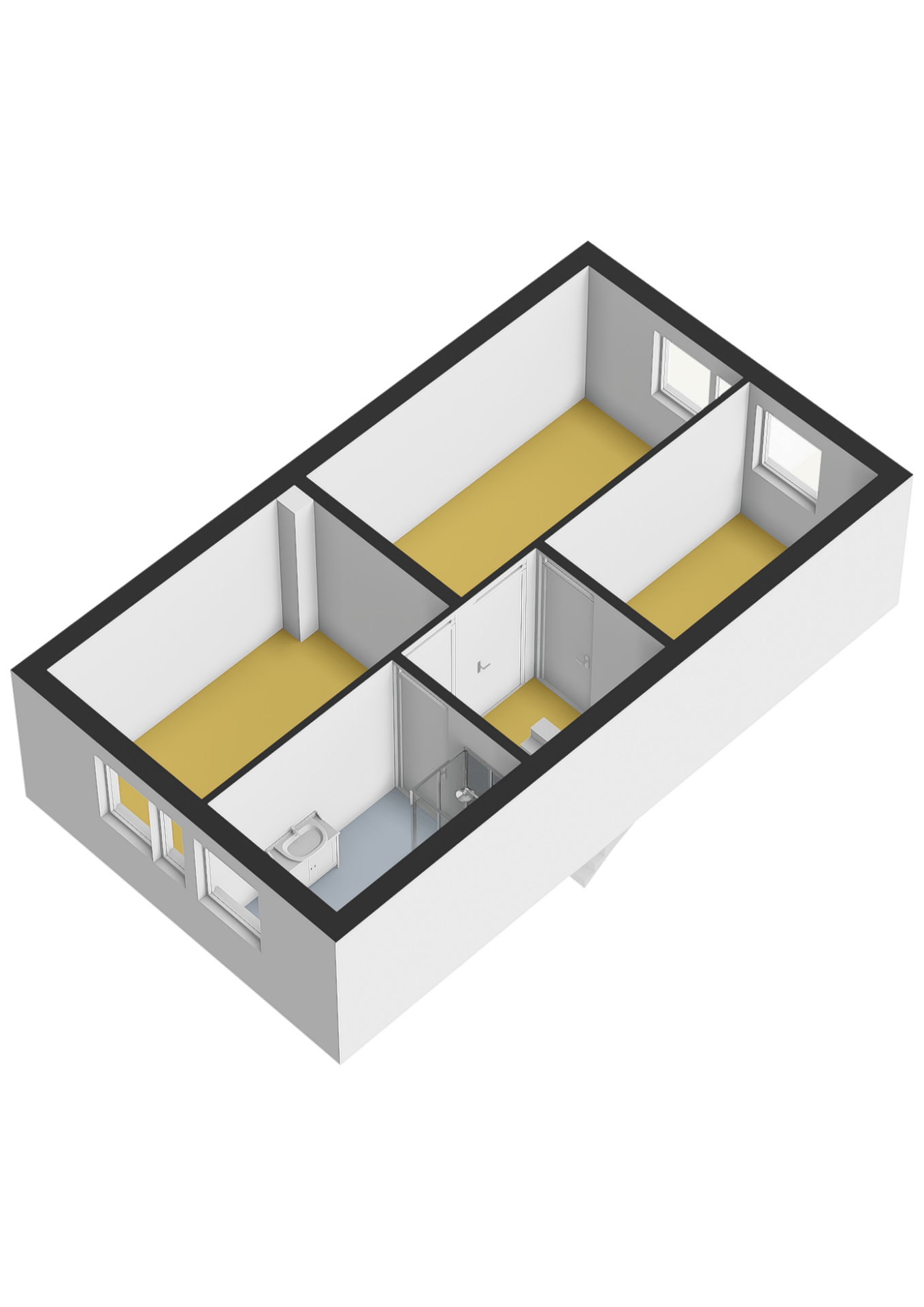 1e verdieping: Overloop met toegang tot drie slaapkamers te weten: slaapkamer I circa 10 m² gelegen aan de voorzijde, slaapkamer II circa 12.5 m² en slaapkamer III circa 7,4 m² beide gelegen aan de achterzijde, badkamer met raam en voorzien van toilet met wandcloset, wasmachine-aansluiting, douchecabine en wastafel.