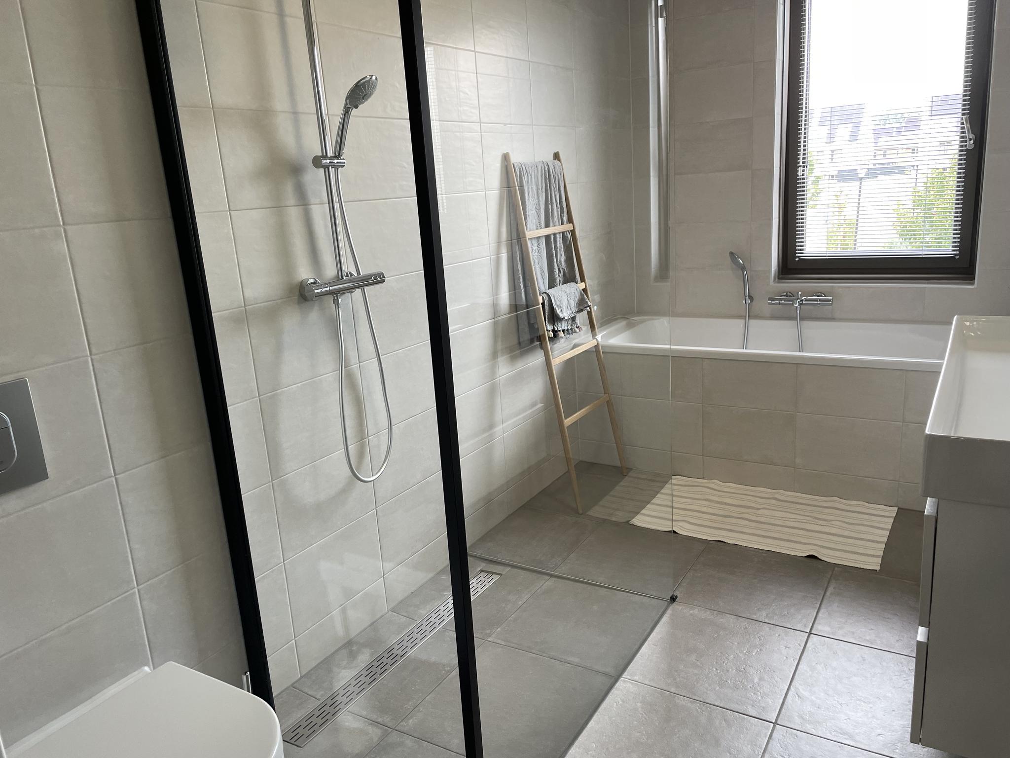 1e verdieping: overloop; badkamer tot plafond betegeld en v.v. raam, design radiator, vloerverwarming, wandcloset, ligbad, inloopdouche en wastafelmeubel; slaapkamer I met raam tot aan de vloer en royale slaapkamer II.