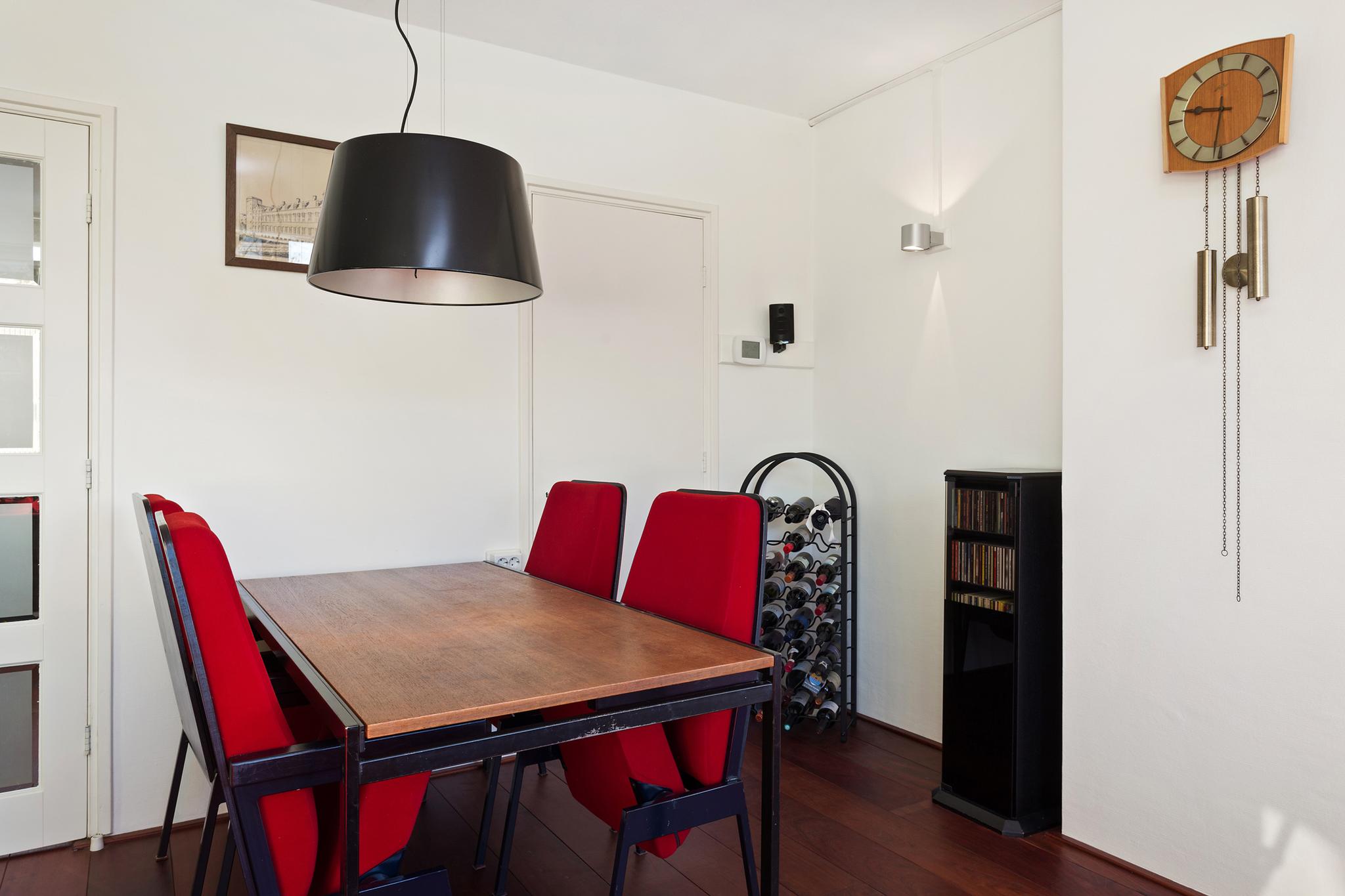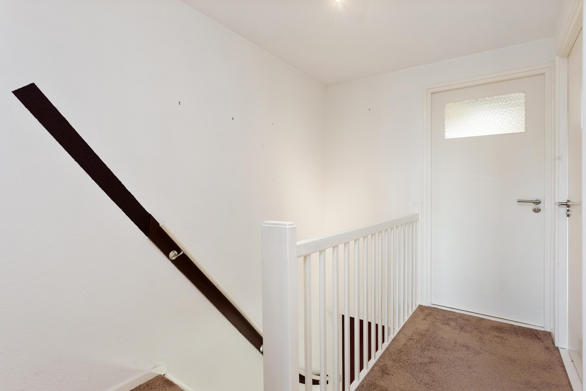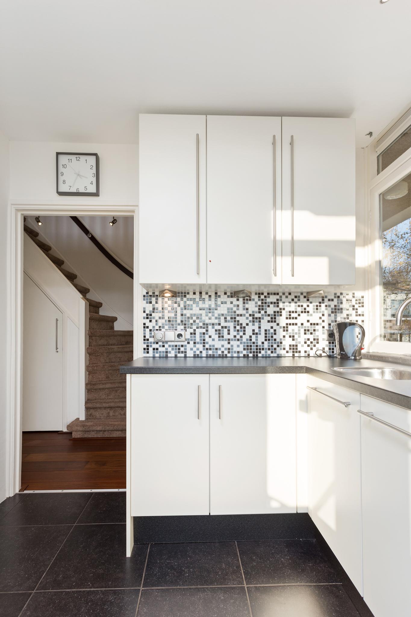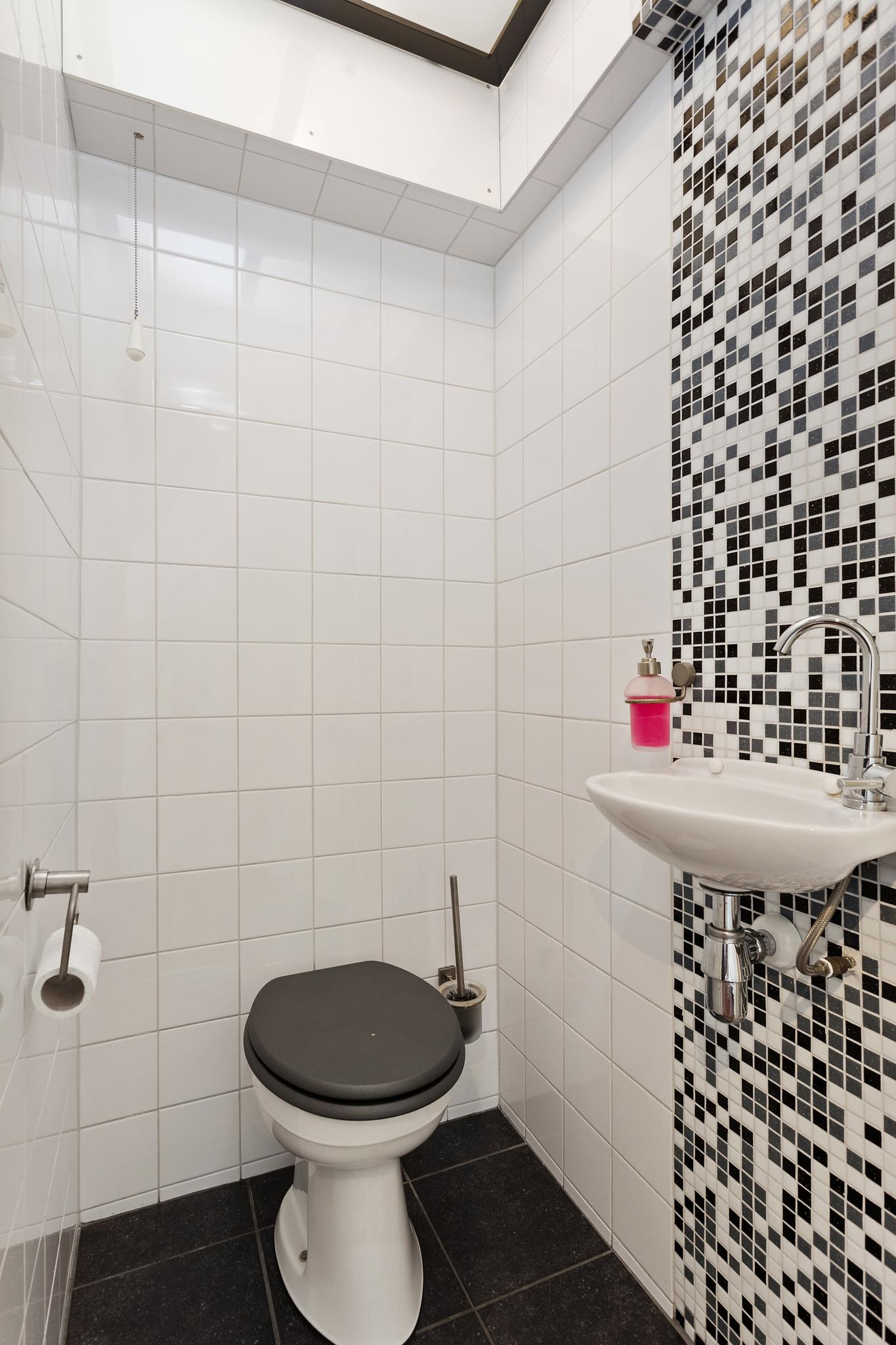 Woonverdieping: entree; vergrote hal met garderobenis, vriezer inbouw en kastruimte; meterkast; trapkast; luxe keuken in lichte kleurstelling, in hoek opstelling geplaatst voorzien van diverse inbouwapparatuur, t.w. gaskookplaat, afzuigkap, combimagnetron, vaatwasser, koelkast, inbouw (provisie)kast en toegang tot balkon; toilet met fontein; woonkamer met veel lichtinval voorzien van vaste kast en toegang tot 2e balkon.