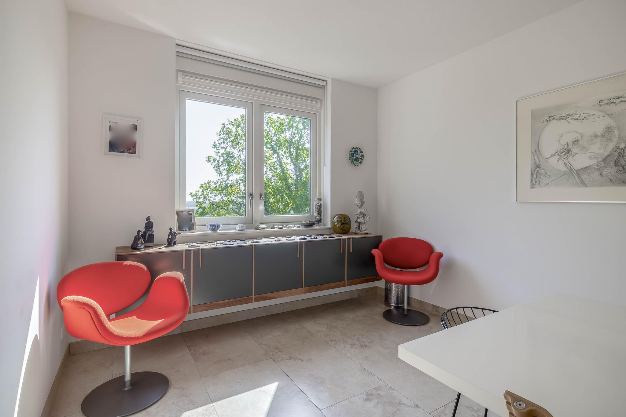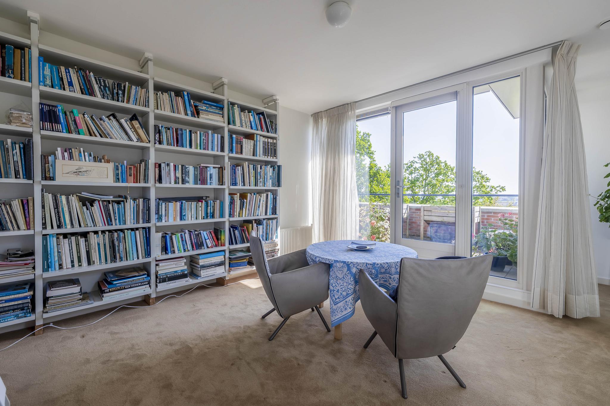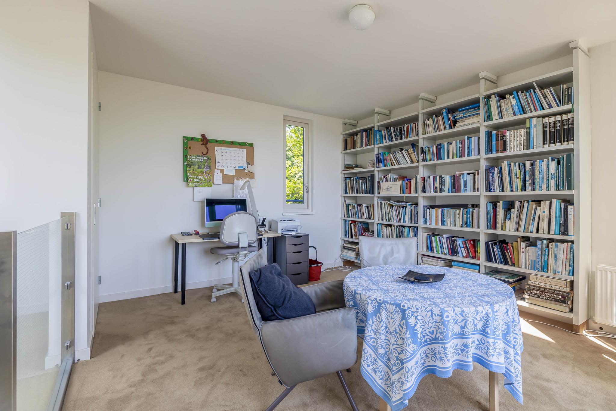 2e verdieping: Deze verdieping is één open en opvallend lichte ruimte (thans kantoor/werkkamer) met diverse gebruiksdoeleinden. Ook hier is er toegang tot een heerlijk dakterras met een magnifiek uitzicht en veel privacy. De aanwezige stookruimte biedt buiten de aanwezige HR cv-ketel en mechanische ventilatie unit, ook mogelijkheid voor extra bergruimte.