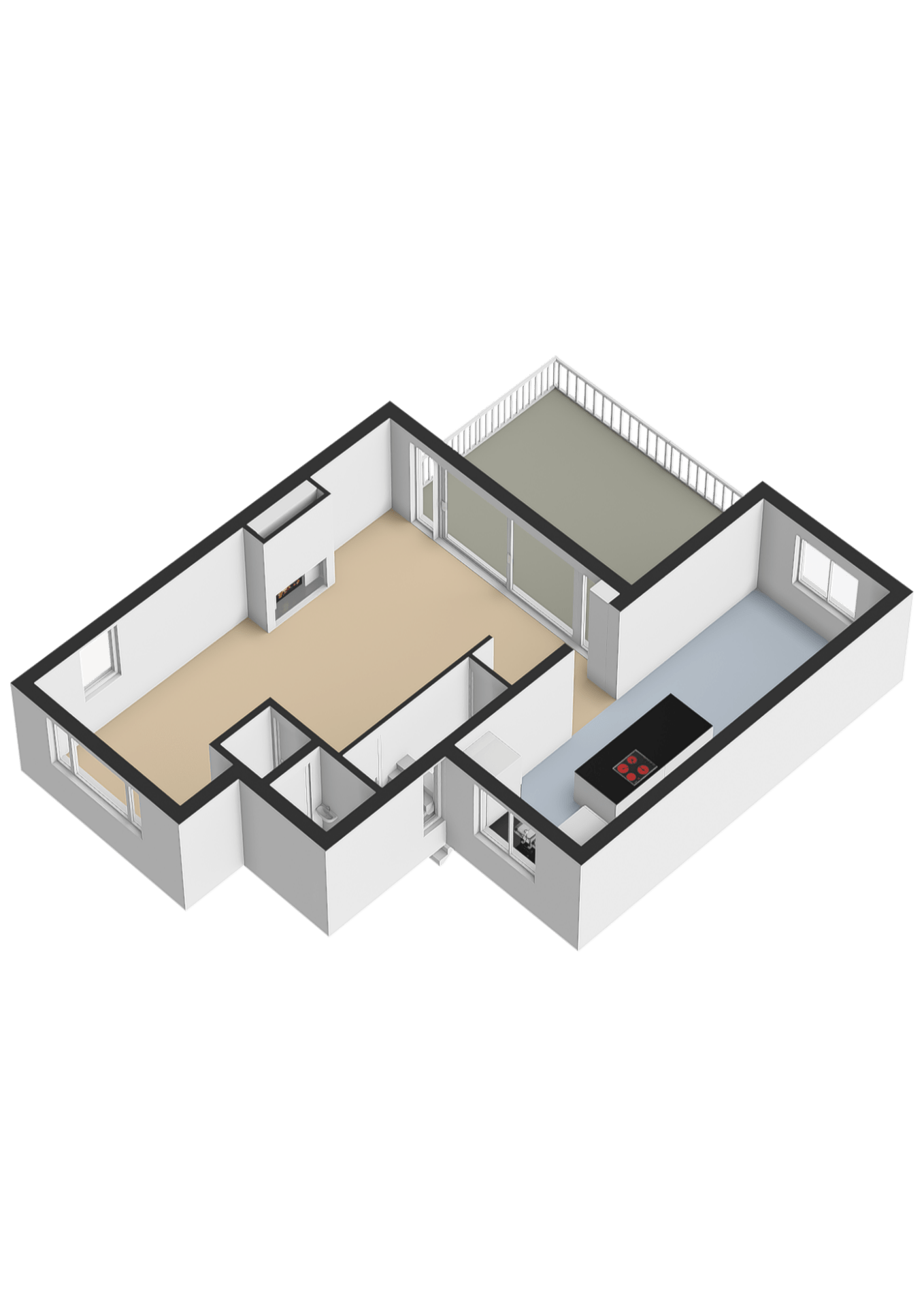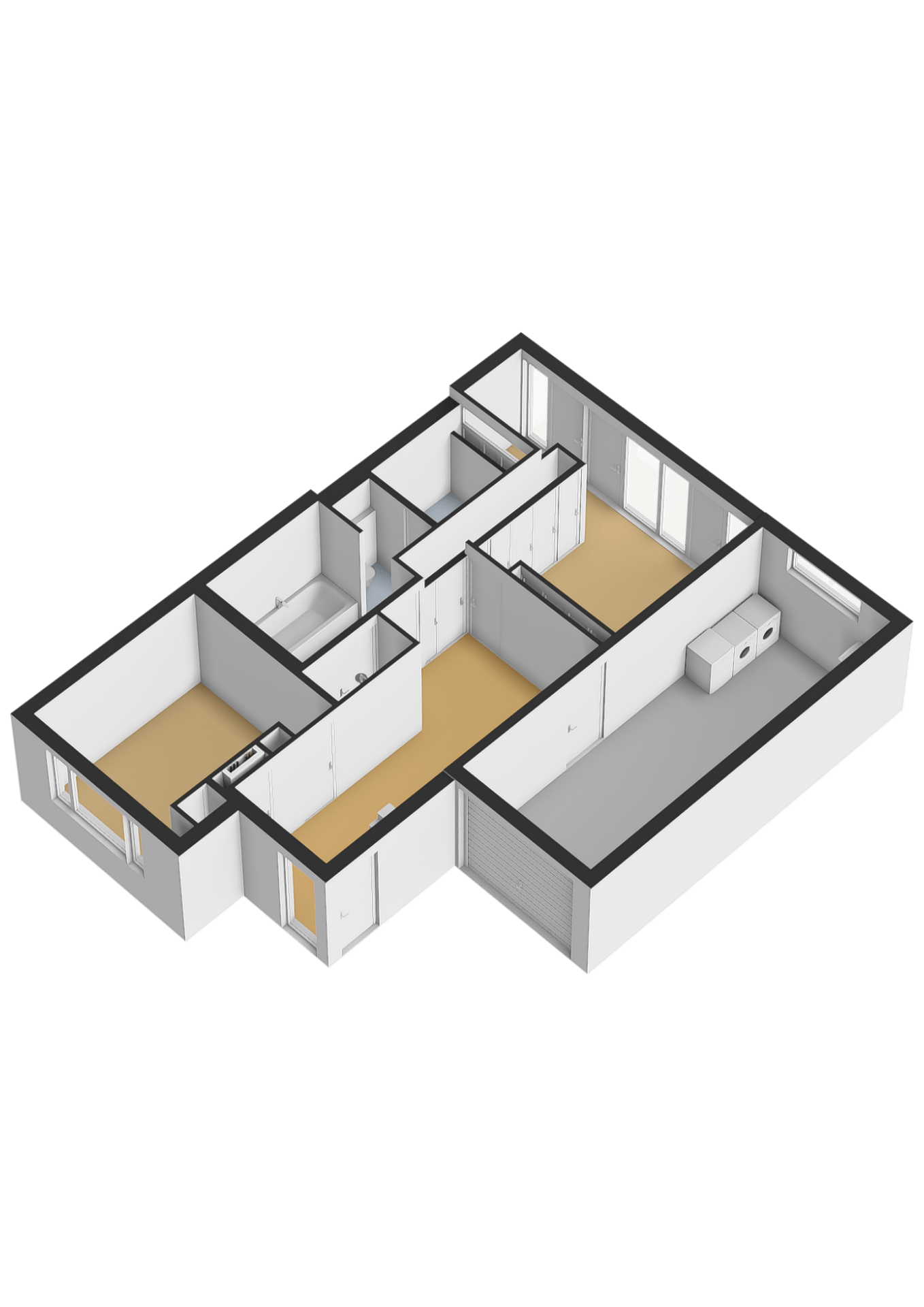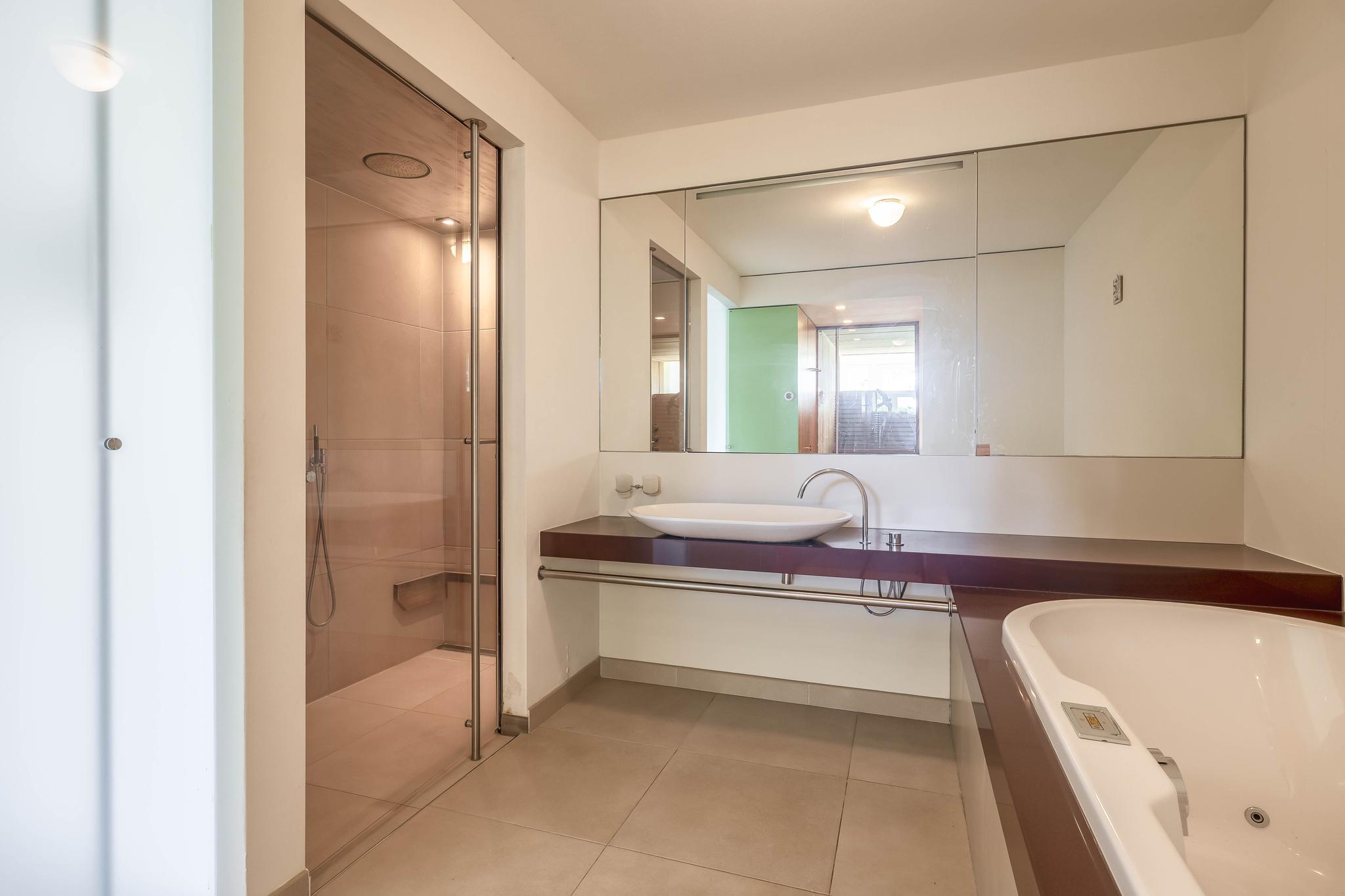 – Strakke afwerking met spachtelputz wanden, naadloze plafonds, drempelloze vloeren en taatsdeuren;