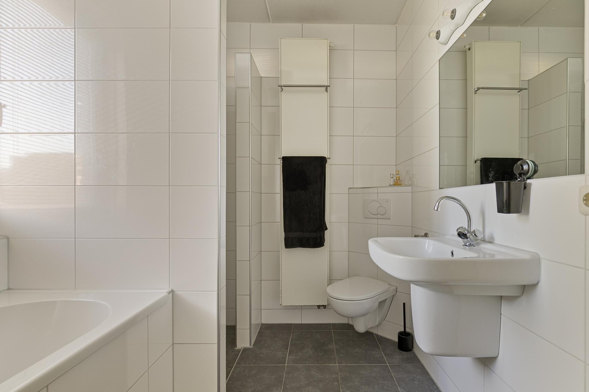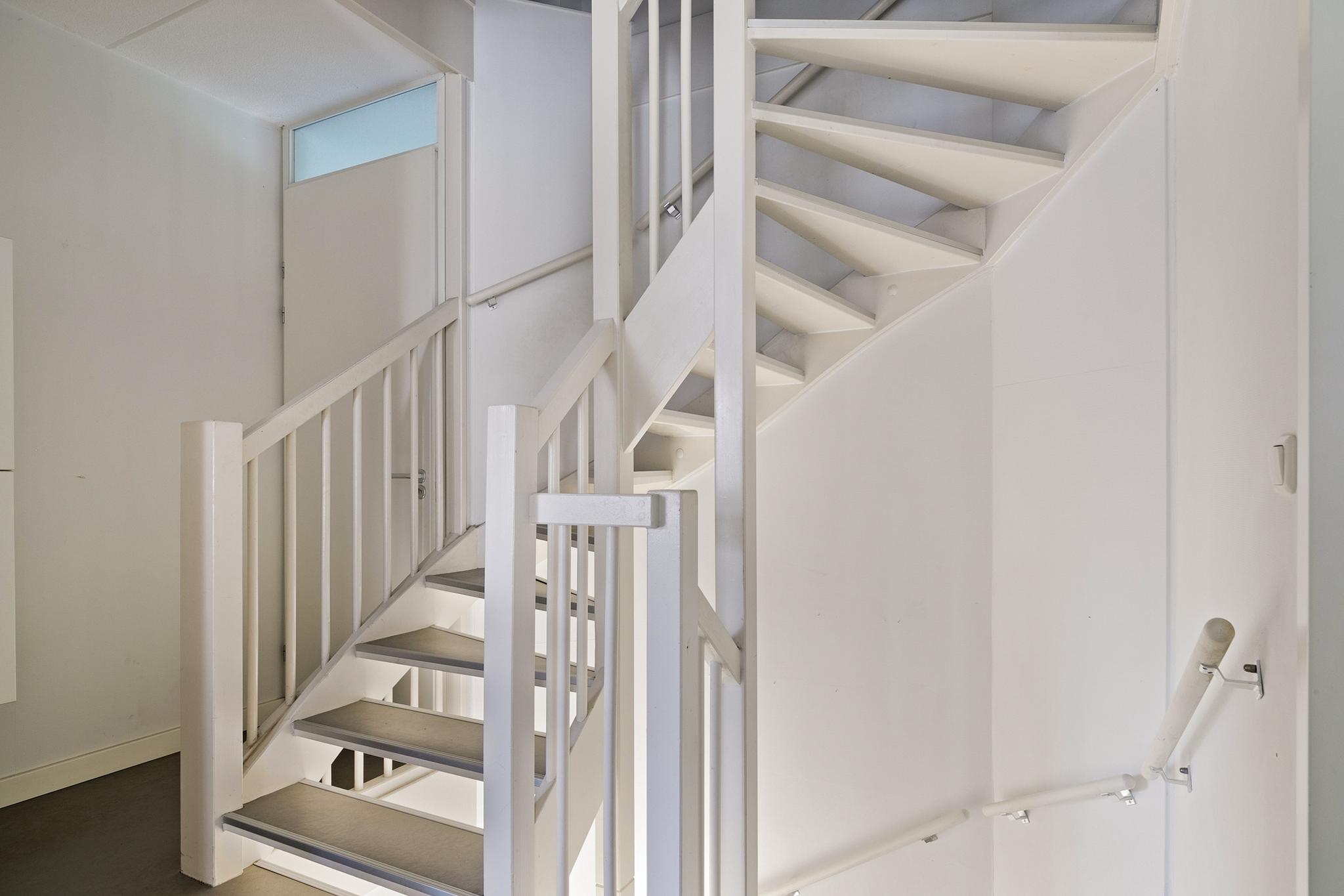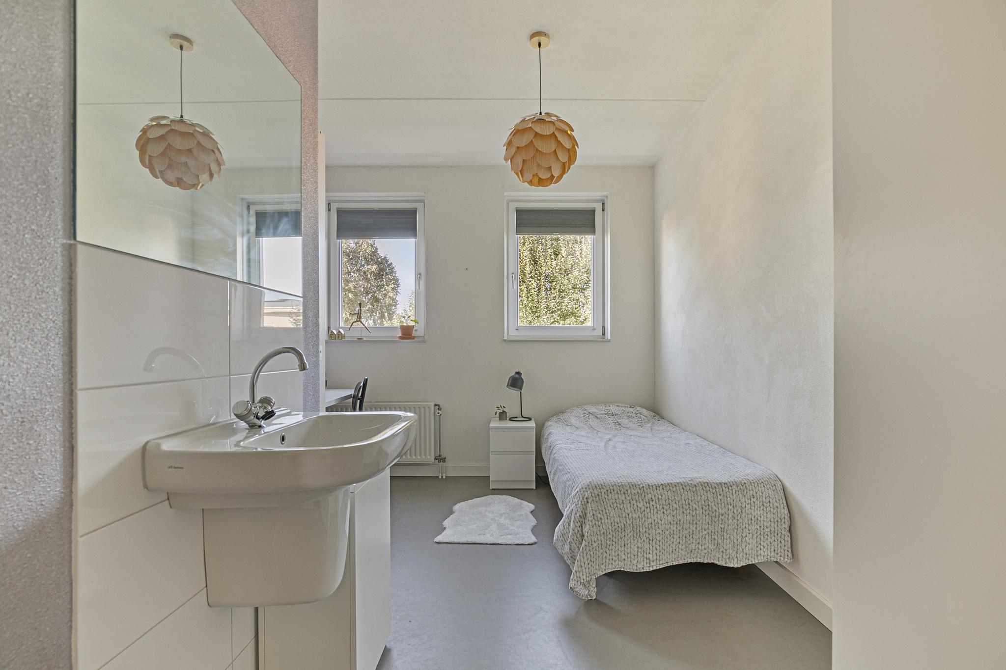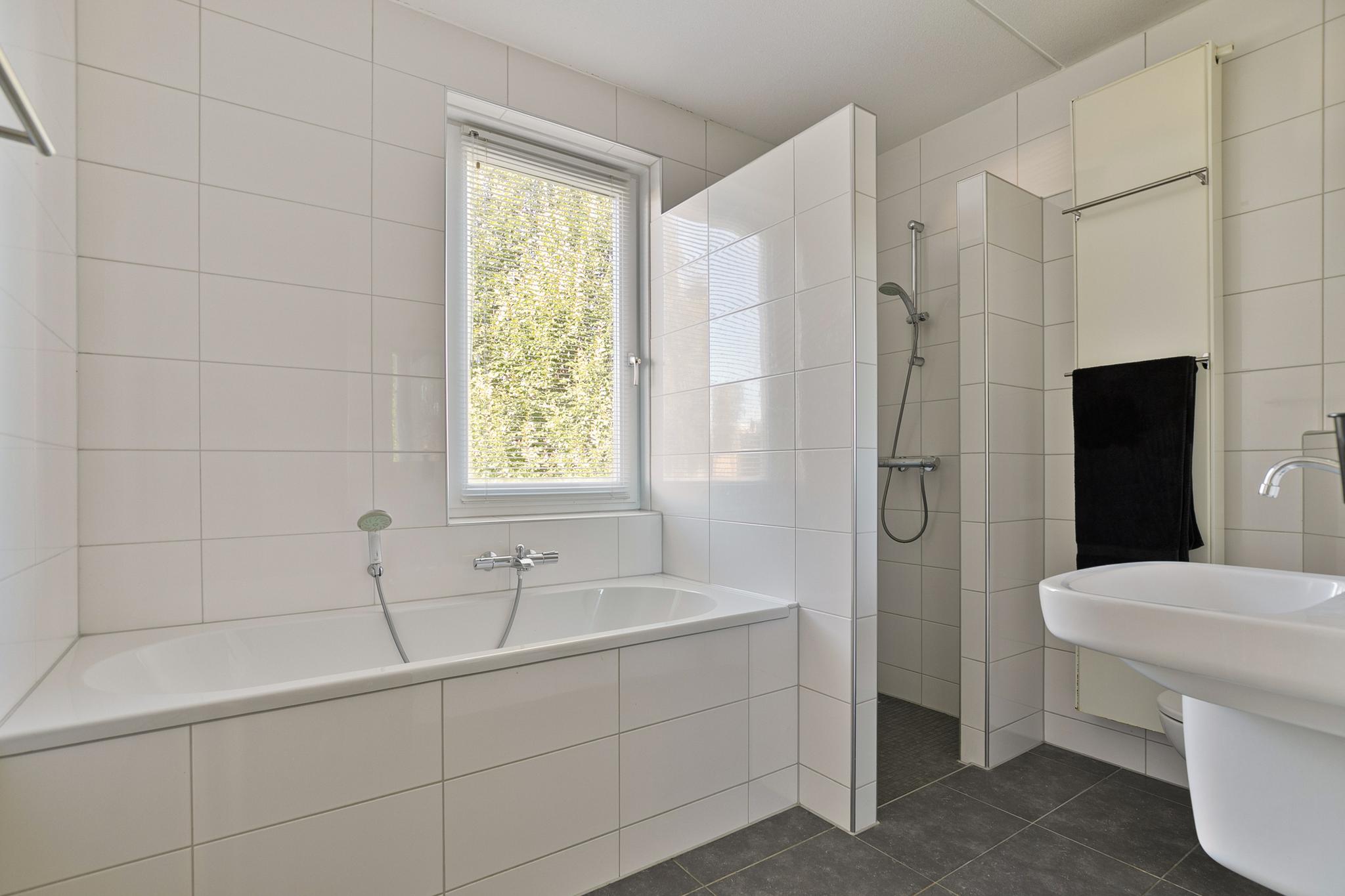 1e verdieping: overloop; badkamer met raam en tot het plafond betegeld, voorzien van kunststof ligbad, wastafel, wandtoilet, design radiator en inloop douche; slaapkamer 1 met zijgevelraam (10,4m²); slaapkamer 2 (13,5m²) en slaapkamer 3 (11m²).