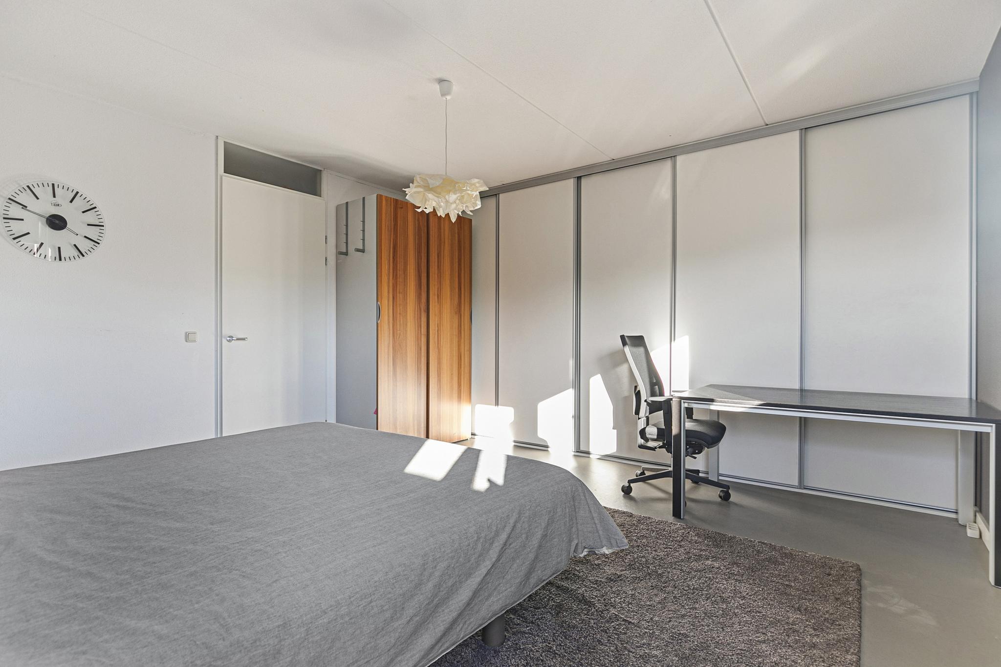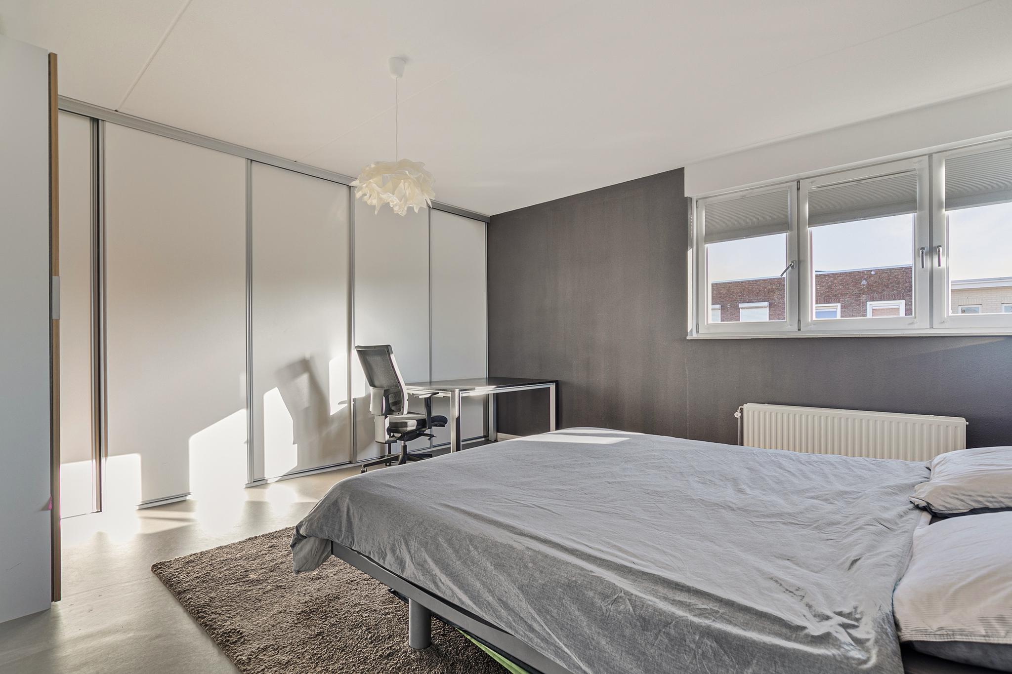 2e verdieping: overloop; wasruimte geheel betegeld met opstelplaats voor de wasmachine en wasdroger; slaapkamer 4 (12m²); royale ouderslaapkamer 5 (24m²) met schuifkastenwand.