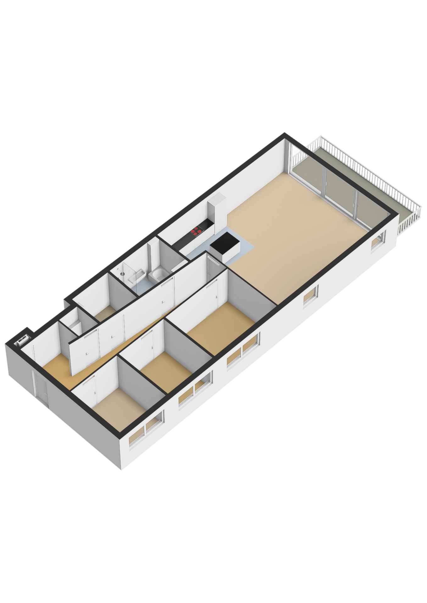 – Ruim overdekt balkon van ca. 17 m² met elektrische zonwering op het zuiden gesitueerd;