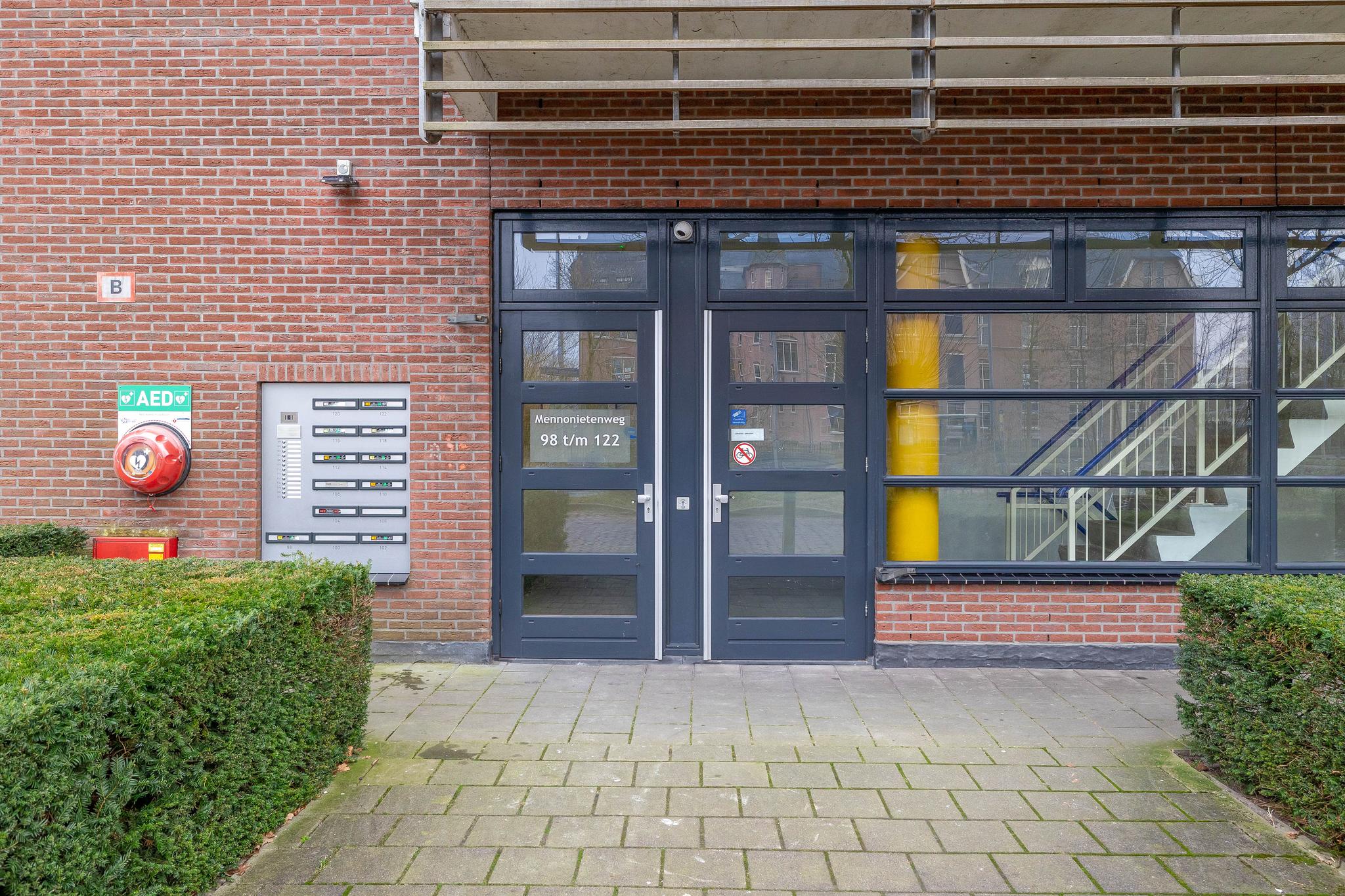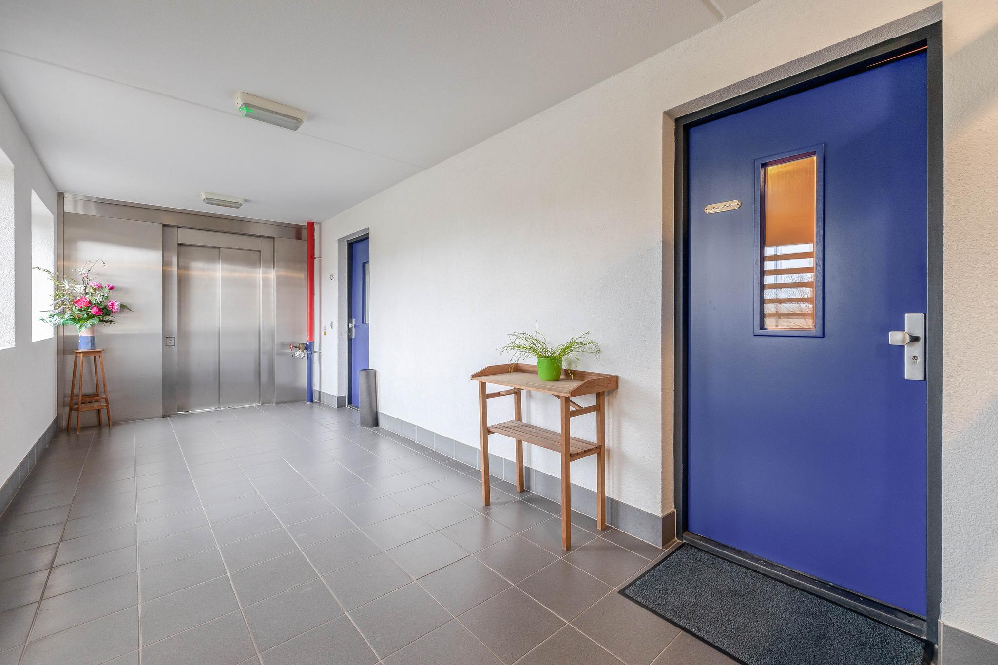 Via een gesloten hoofdentree met intercom- en videofooninstallatie naar trappenhuis met toegang tot lift en trapopgang naar appartementen.