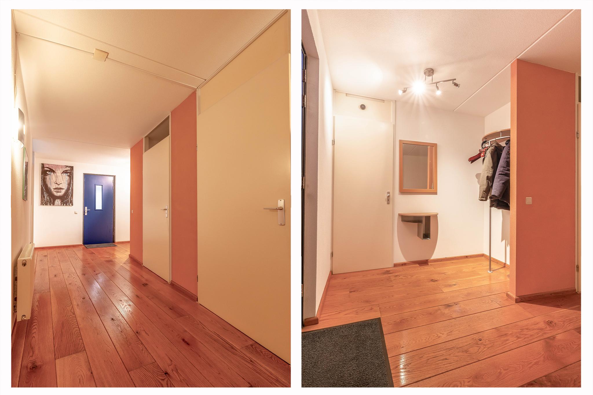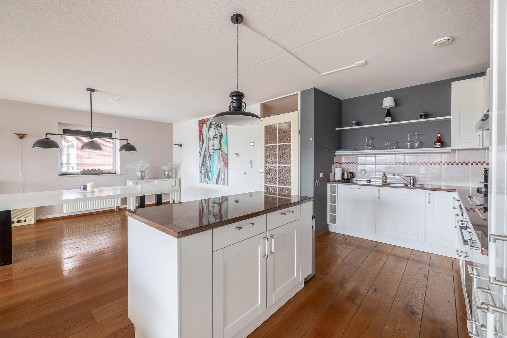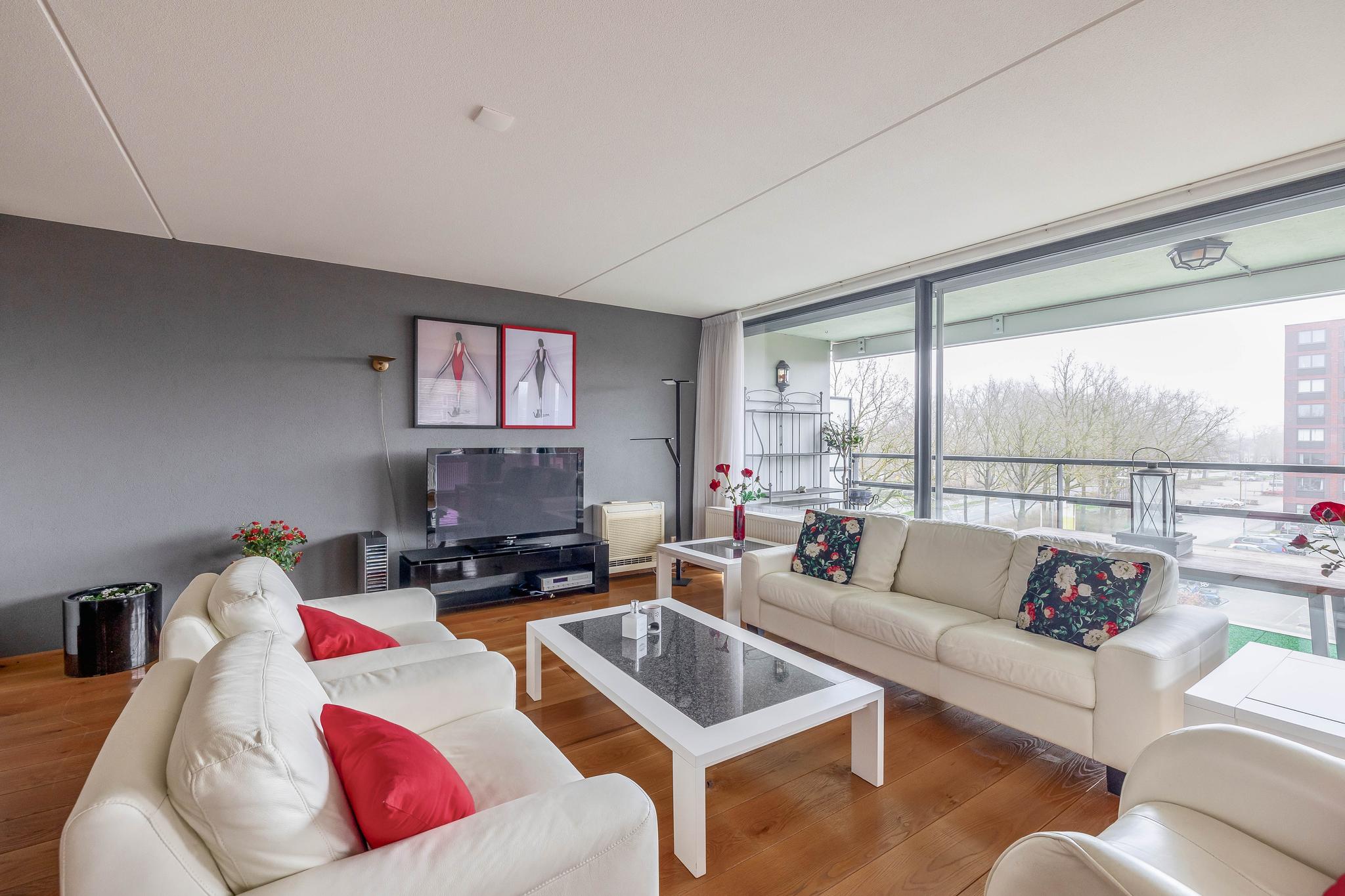 Entree; ruime hal met garderobe; meterkast; berging met c.v. opstelling en wasapparatuur aansluiting; vanuit de hal zijn alle vertrekken bereikbaar; wandcloset met fontein tot de helft betegeld; ruime badkamer tot het plafond betegeld is voorzien van een inloopdouche met drain, wastafel, ligbad en wandcloset; riante woonkamer met over de gehele breedte een schuifpui waardoor het een heerlijke lichte kamer betreft; de schuifpui biedt toegang tot het op het zuidwesten gelegen balkon van maar liefst 17 m²; open keuken uitgevoerd in lichte kleurstelling en heeft een L-opstelling met eiland en v.v. koelkast, vriezer, combi magnetron, oven, zowel een inductie kookplaat als teriyaki plaat met afzuigkap en vaatwasser.
