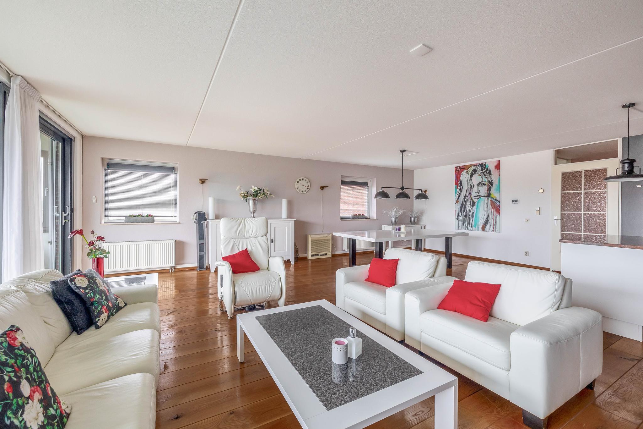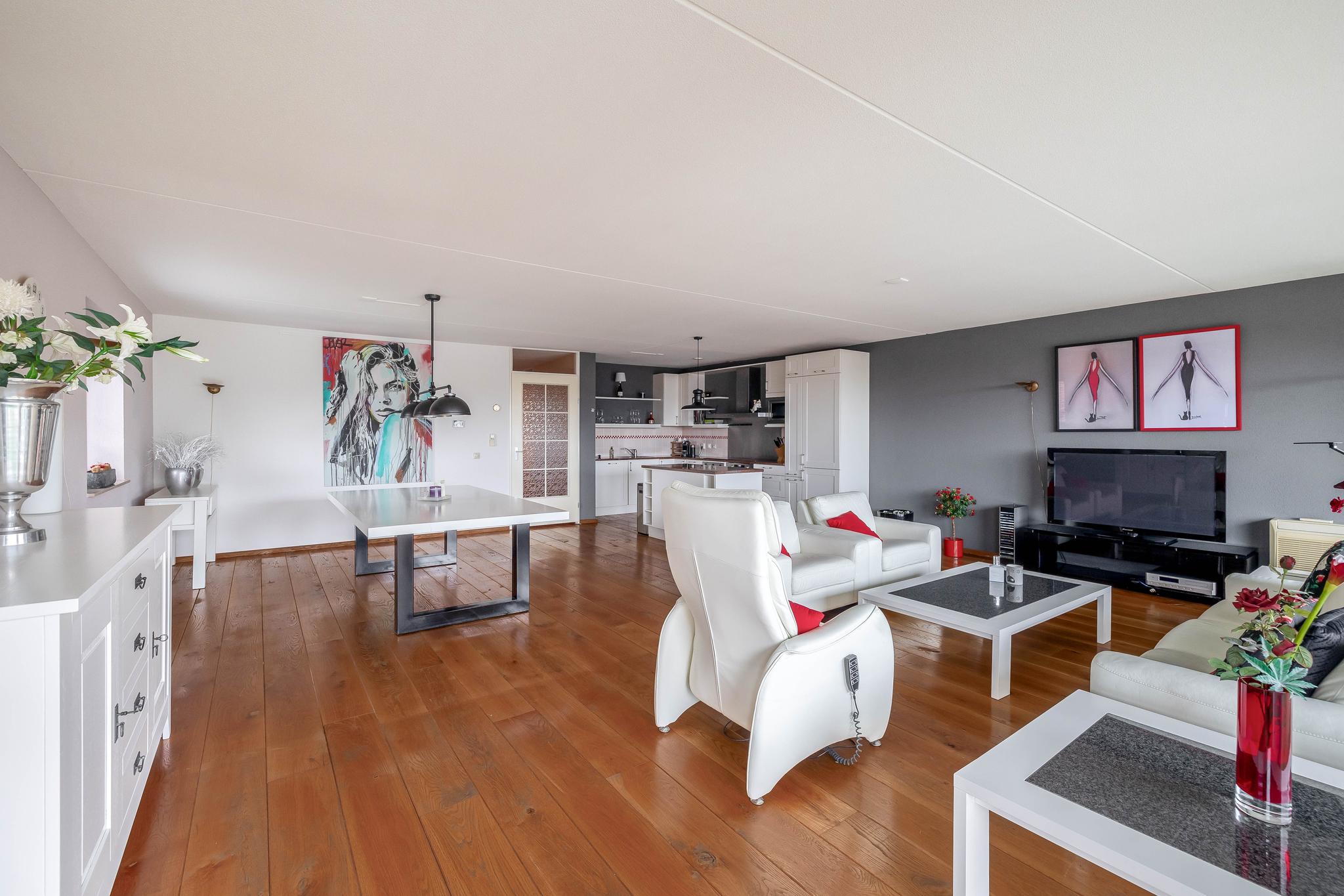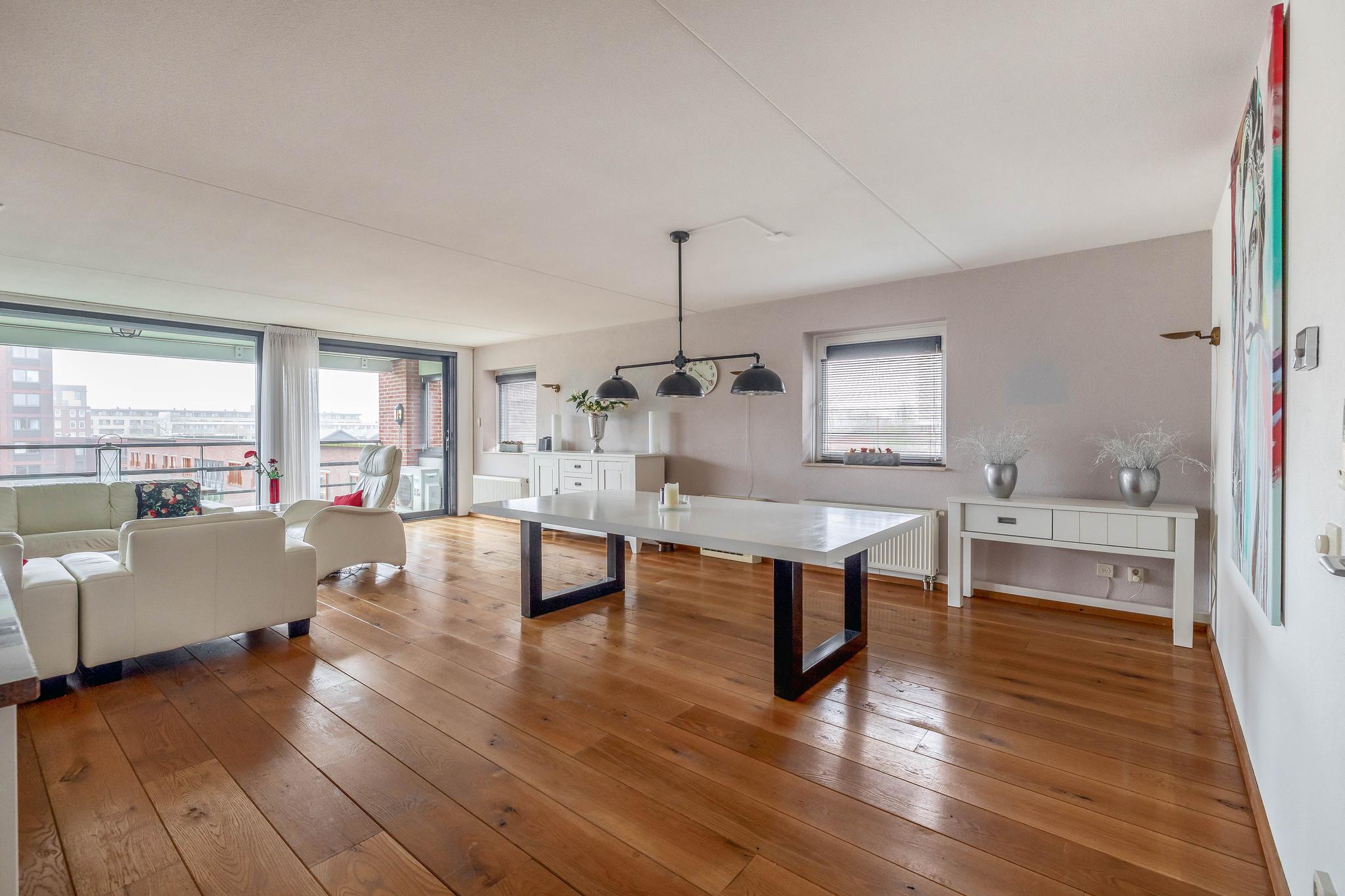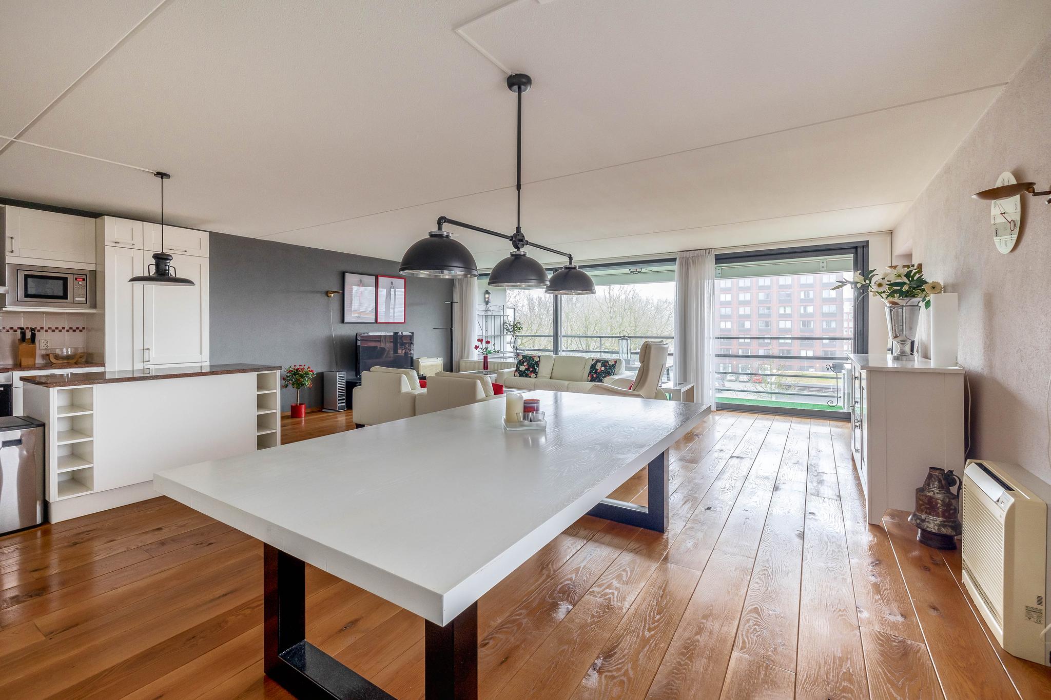 Entree; ruime hal met garderobe; meterkast; berging met c.v. opstelling en wasapparatuur aansluiting; vanuit de hal zijn alle vertrekken bereikbaar; wandcloset met fontein tot de helft betegeld; ruime badkamer tot het plafond betegeld is voorzien van een inloopdouche met drain, wastafel, ligbad en wandcloset; riante woonkamer met over de gehele breedte een schuifpui waardoor het een heerlijke lichte kamer betreft; de schuifpui biedt toegang tot het op het zuidwesten gelegen balkon van maar liefst 17 m²; open keuken uitgevoerd in lichte kleurstelling en heeft een L-opstelling met eiland en v.v. koelkast, vriezer, combi magnetron, oven, zowel een inductie kookplaat als teriyaki plaat met afzuigkap en vaatwasser.