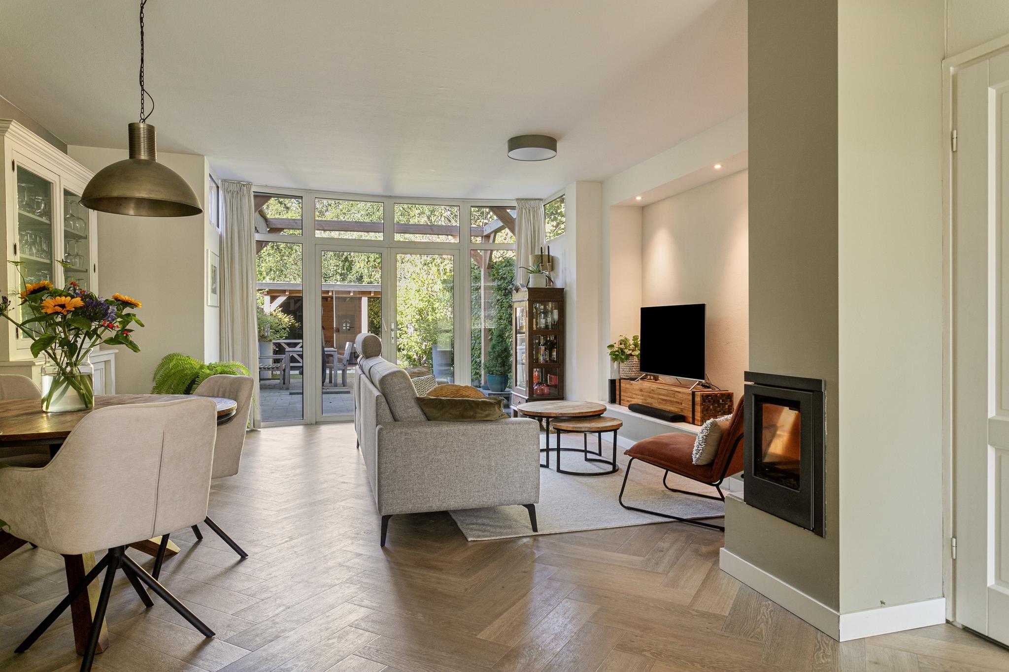 Deze uitstekend afgewerkte uitgebouwde woning met stenen berging ligt in een geliefde wijk op korte afstand van centrumvoorzieningen, de prachtige bossen en niet vergeten het station. De woning is recent grotendeels gerenoveerd, uitstekend afgewerkt en voorzien van een tuingerichte uitgebouwde woonkamer met open haard en voorzien van fraaie pvc-vloer en moderne half open keuken. Op de 1e verdieping zijn 3 ruime slaapkamers waarvan een slaapkamer met inloopkast en een moderne complete badkamer. Op de 2e verdieping bevindt zich een ruime vierde slaapkamer voorzien van airco, dakkapel en dakvenster. De achtertuin ligt besloten op het westen en in de achtertuin bevindt zich een heerlijke veranda, af te sluiten door middel van getinte glazen schuifdeuren.
