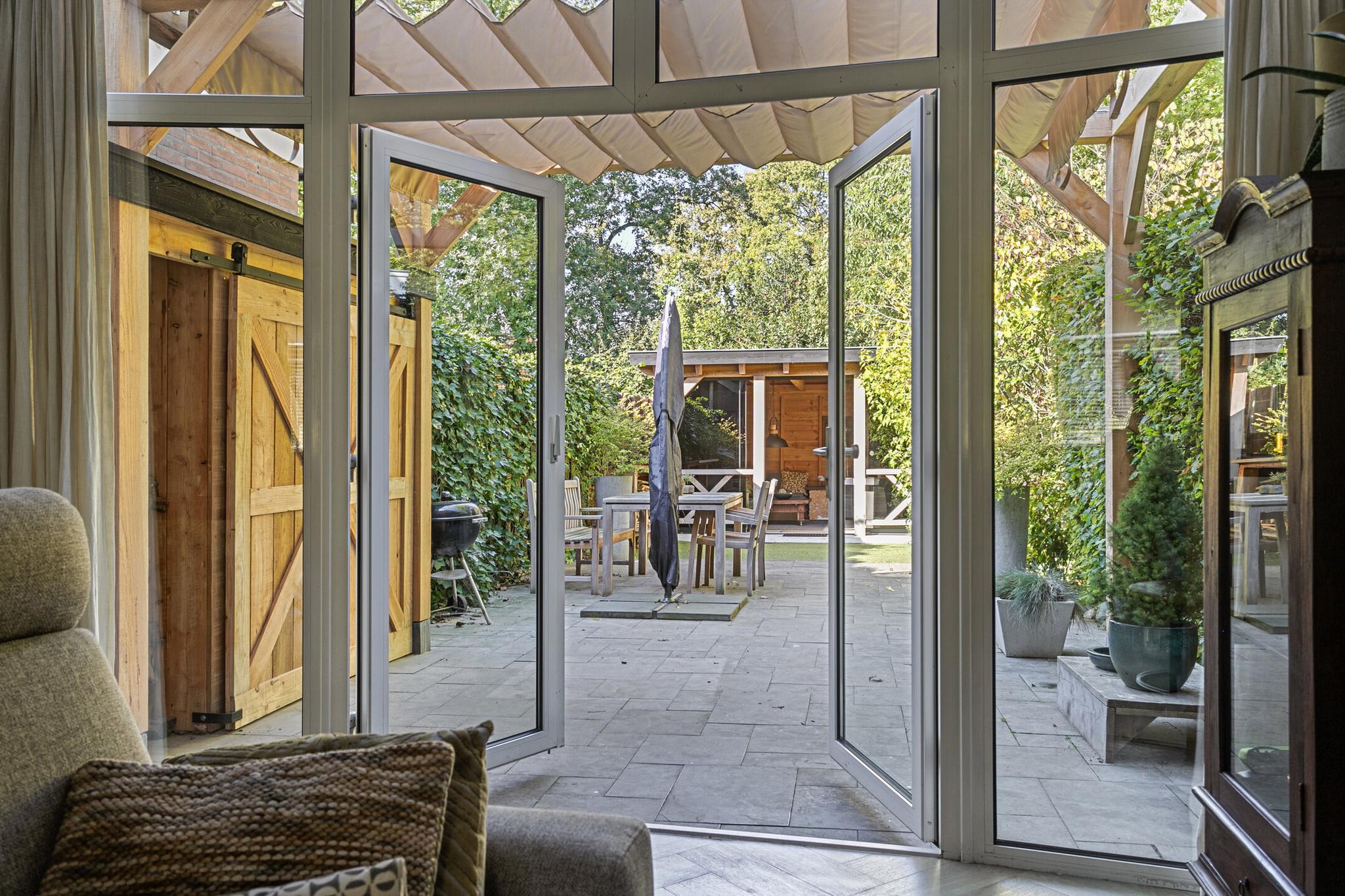 – achterin de tuin is een prachtige royale veranda volledig af te sluiten d.m.v. glazen wanden;