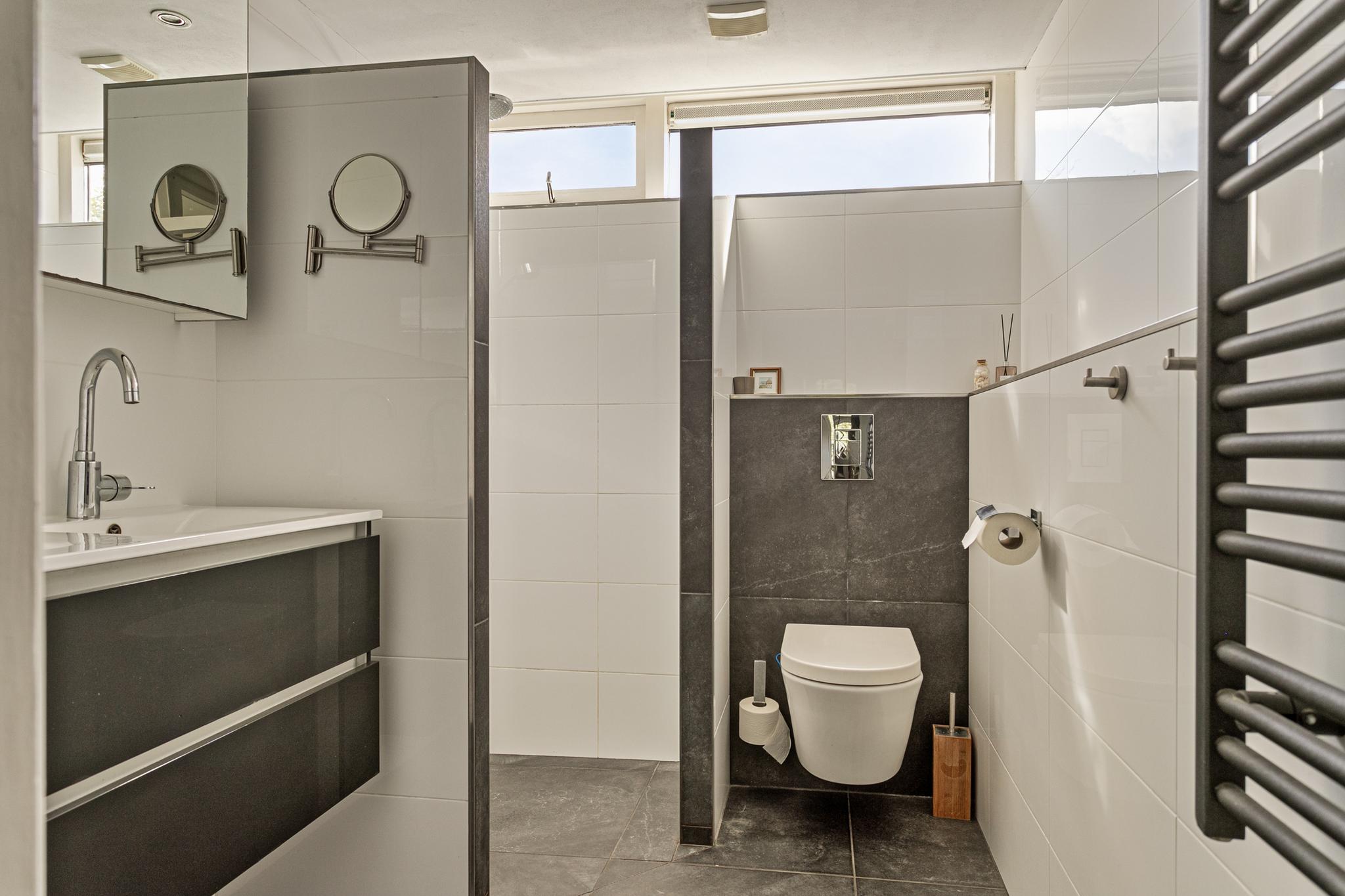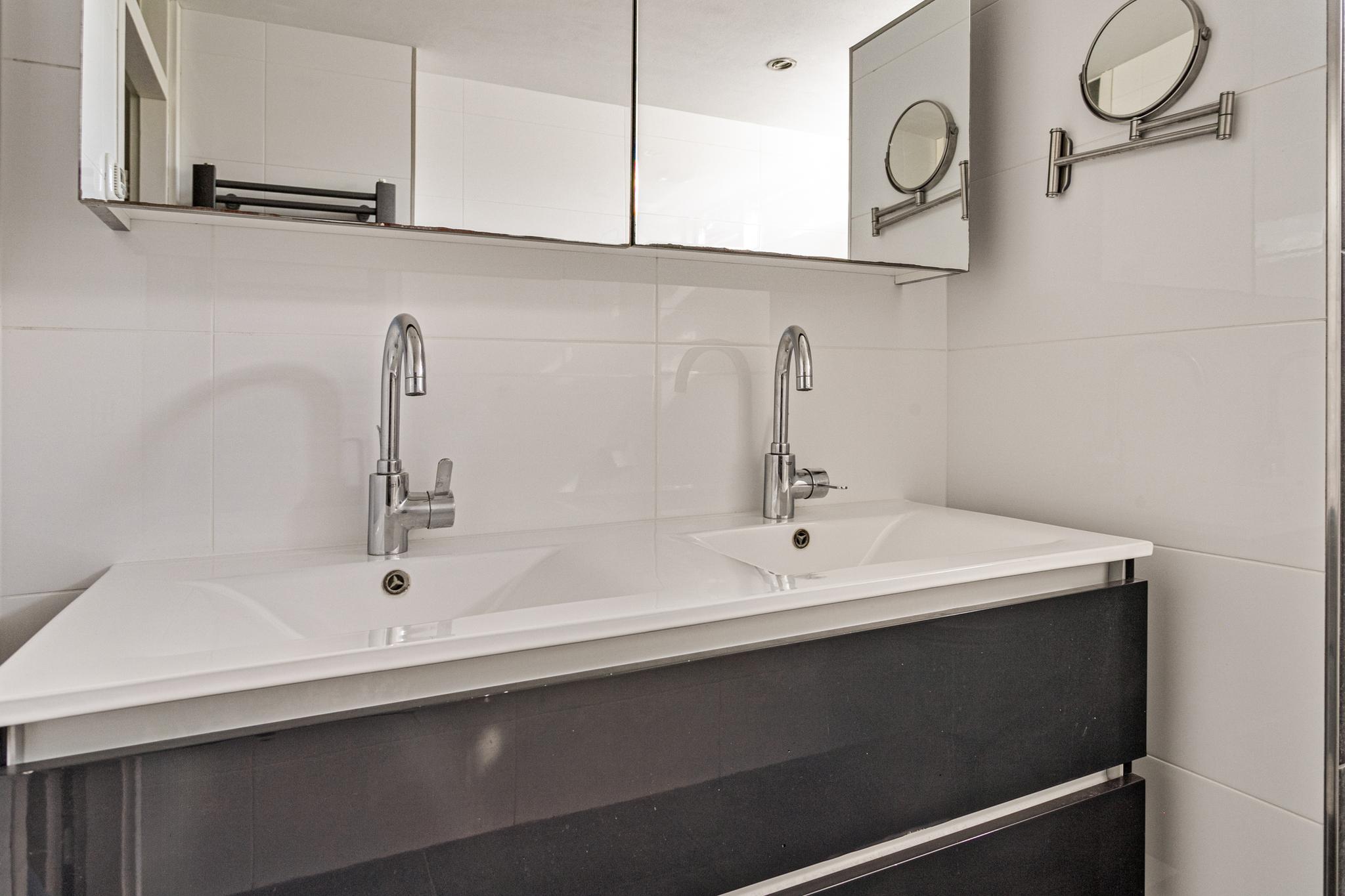 1e Verdieping: Overloop; 3 slaapkamers allen voorzien van dubbel glas en één slaapkamer met inloopkast; moderne complete lichte badkamer voorzien van dubbel wastafelmeubel, wandcloset, design radiator en inloopdouche, vloerverwarming en verlaagd plafond met inbouwspots;
