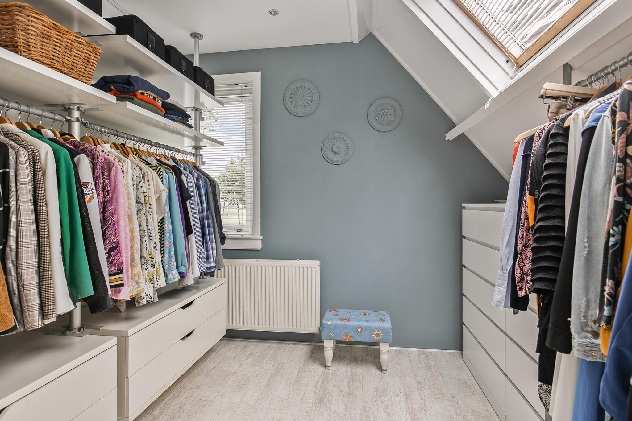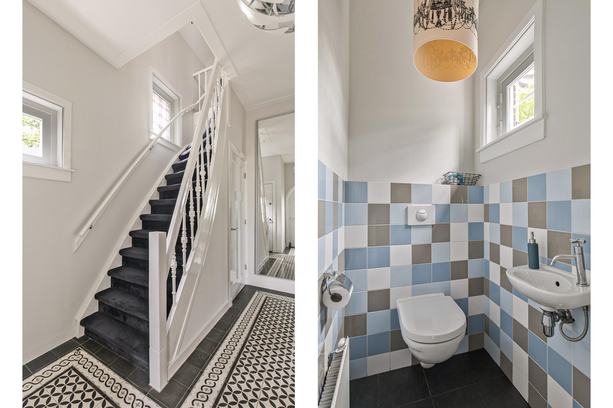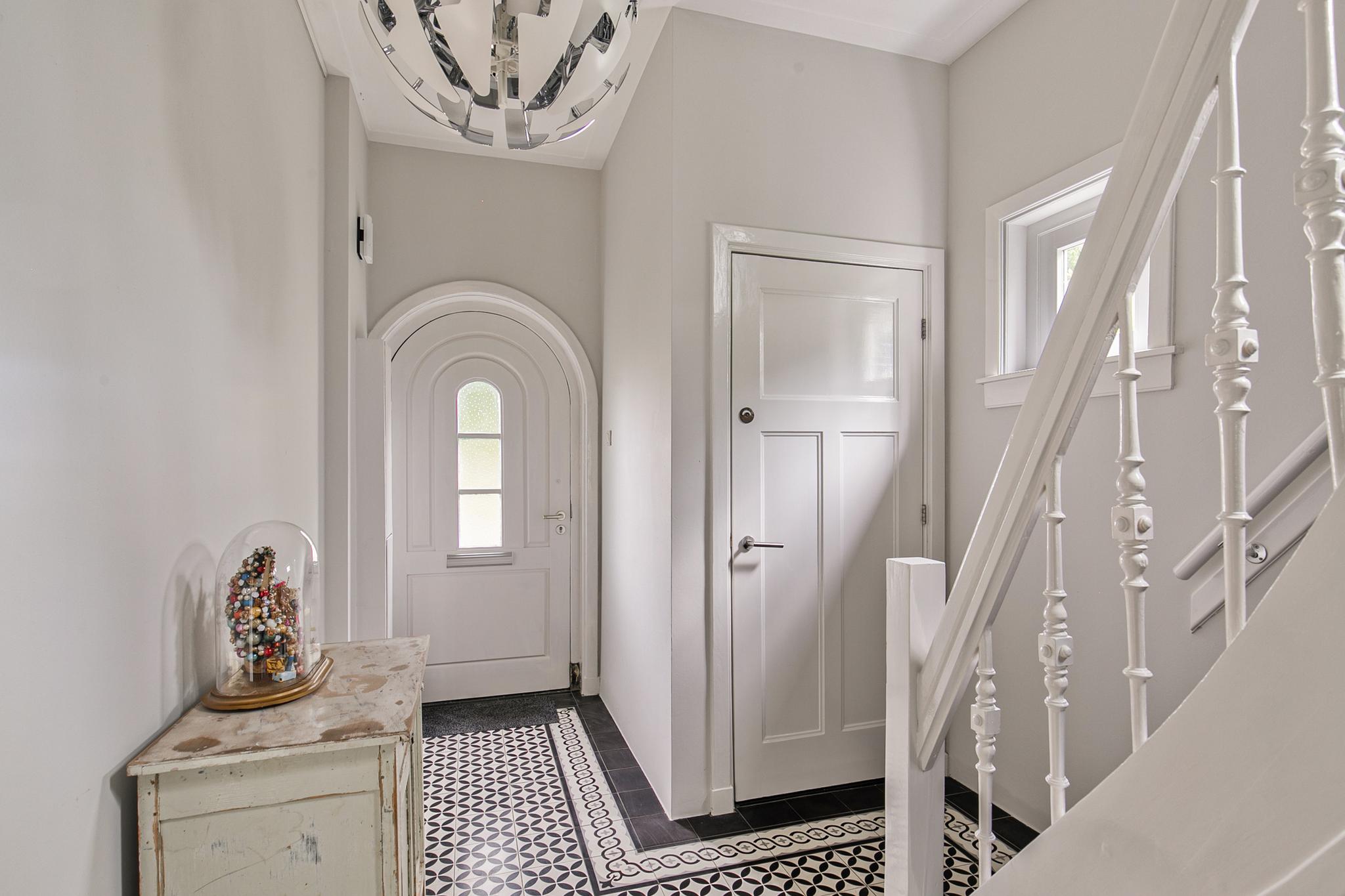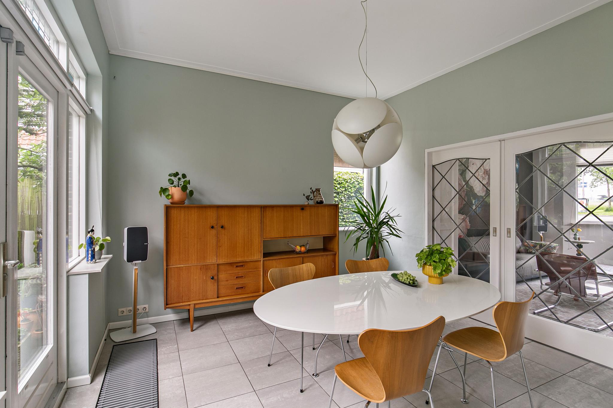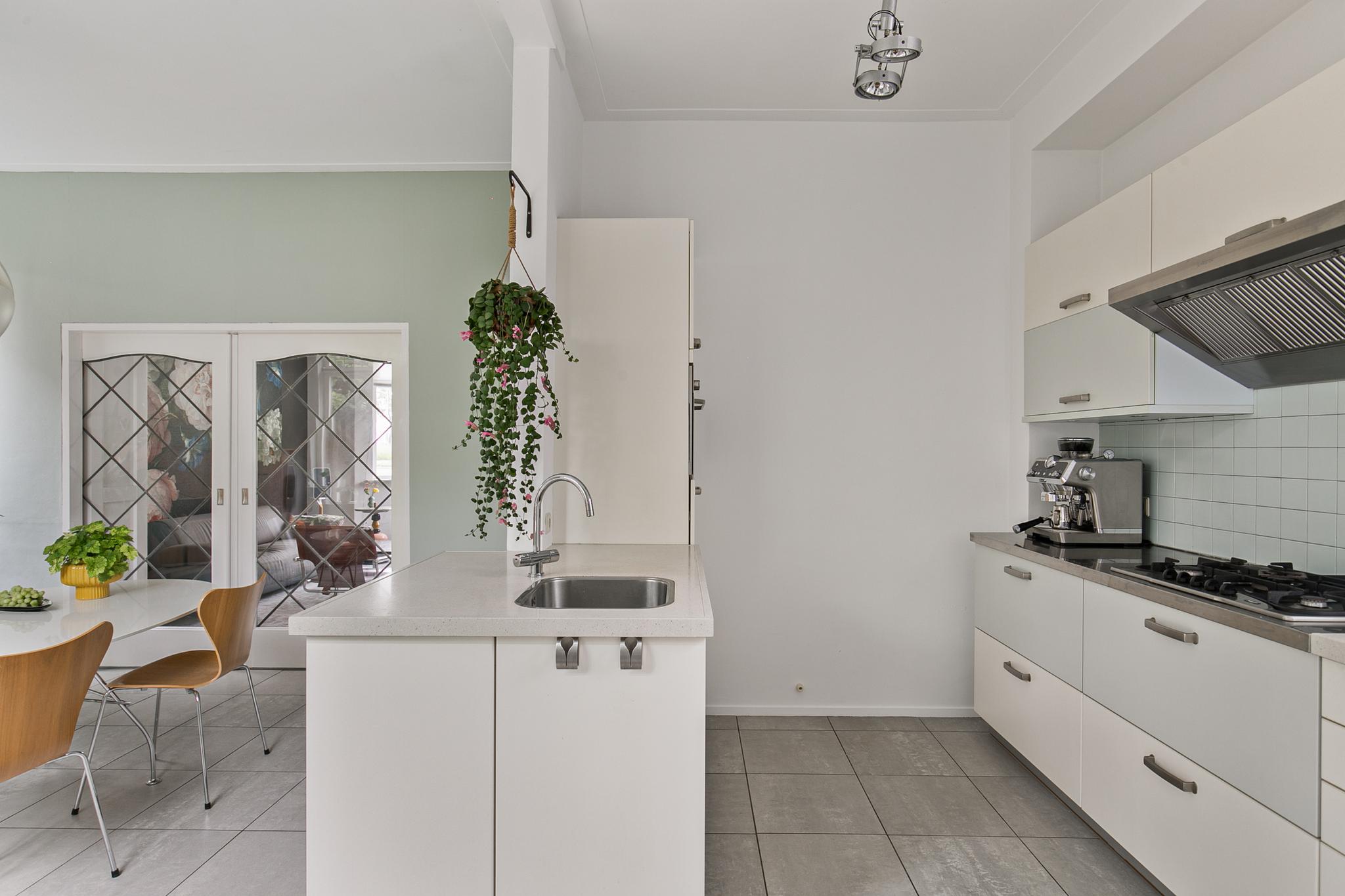 Begane grond: Entree; mooie betegelde hal met meterkast; wandcloset met fontein en raam; verdiepte trapkast; kamer en suite met erker deur en twee glas in lood schuifdeuren; dubbele deuren naar de zonnige tuin; half open keuken uitgevoerd in een lichte kleurstelling in rechte opstelling geplaatst met granieten aanrechtblad en voorzien van diverse inbouwapparatuur, t.w. vaatwasser, koelkast, oven/magnetron, afzuigkap en 5-pits gasfornuis; tussenhal met loopdeur naar de tuin en opstelplaats voor de wasmachine.; aparte werkkamer met vliering en opstelling C.V.-ketel (Atag One HR 2016)