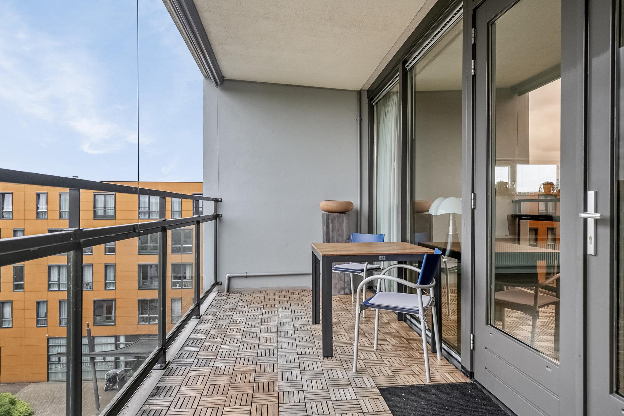 – 3-kamer appartement met royaal balkon voorzien van houten delen;