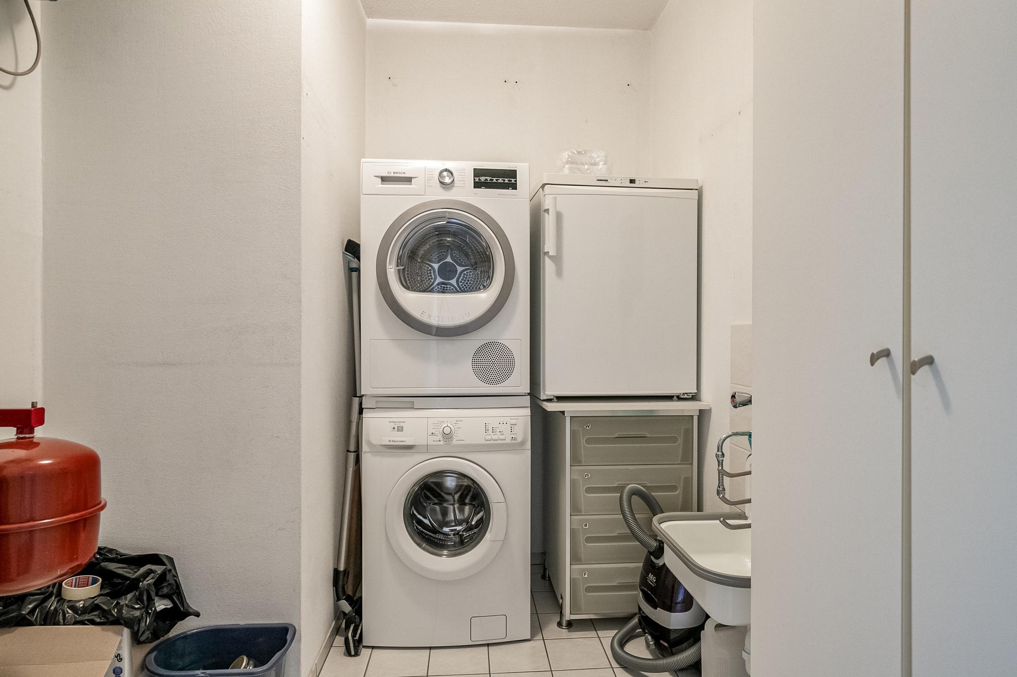 – Praktische bijkeuken/berging met wasmachine- en wasdrogeraansluiting;
