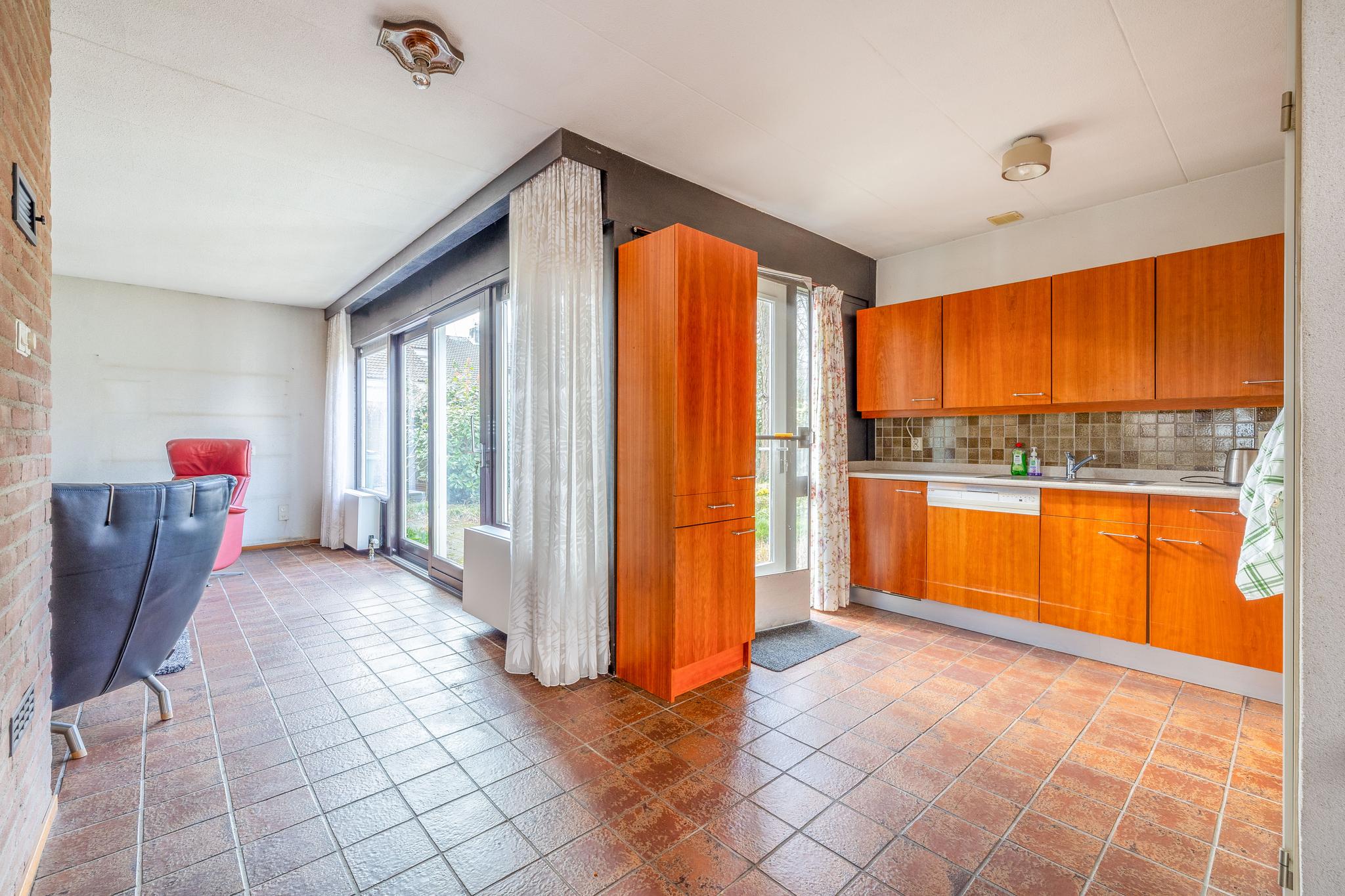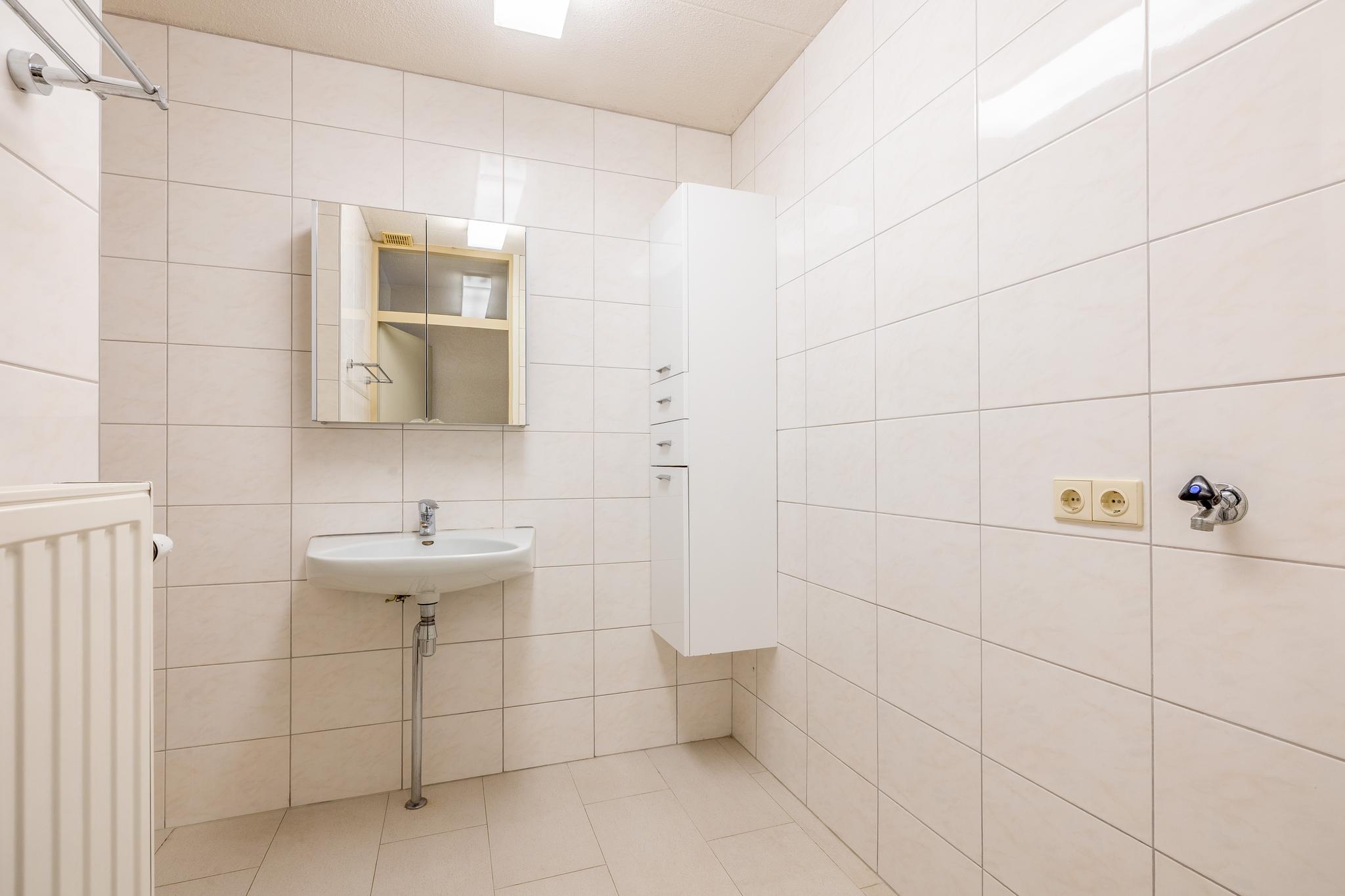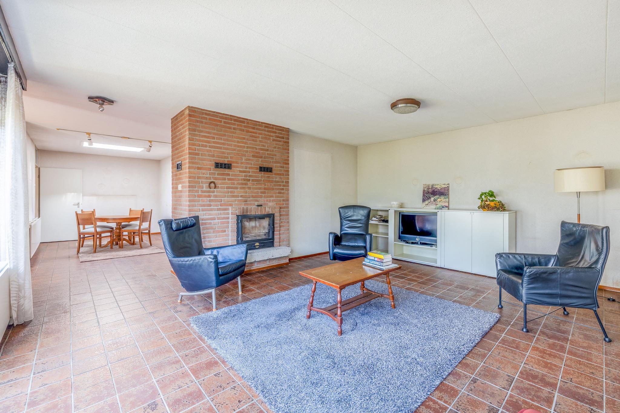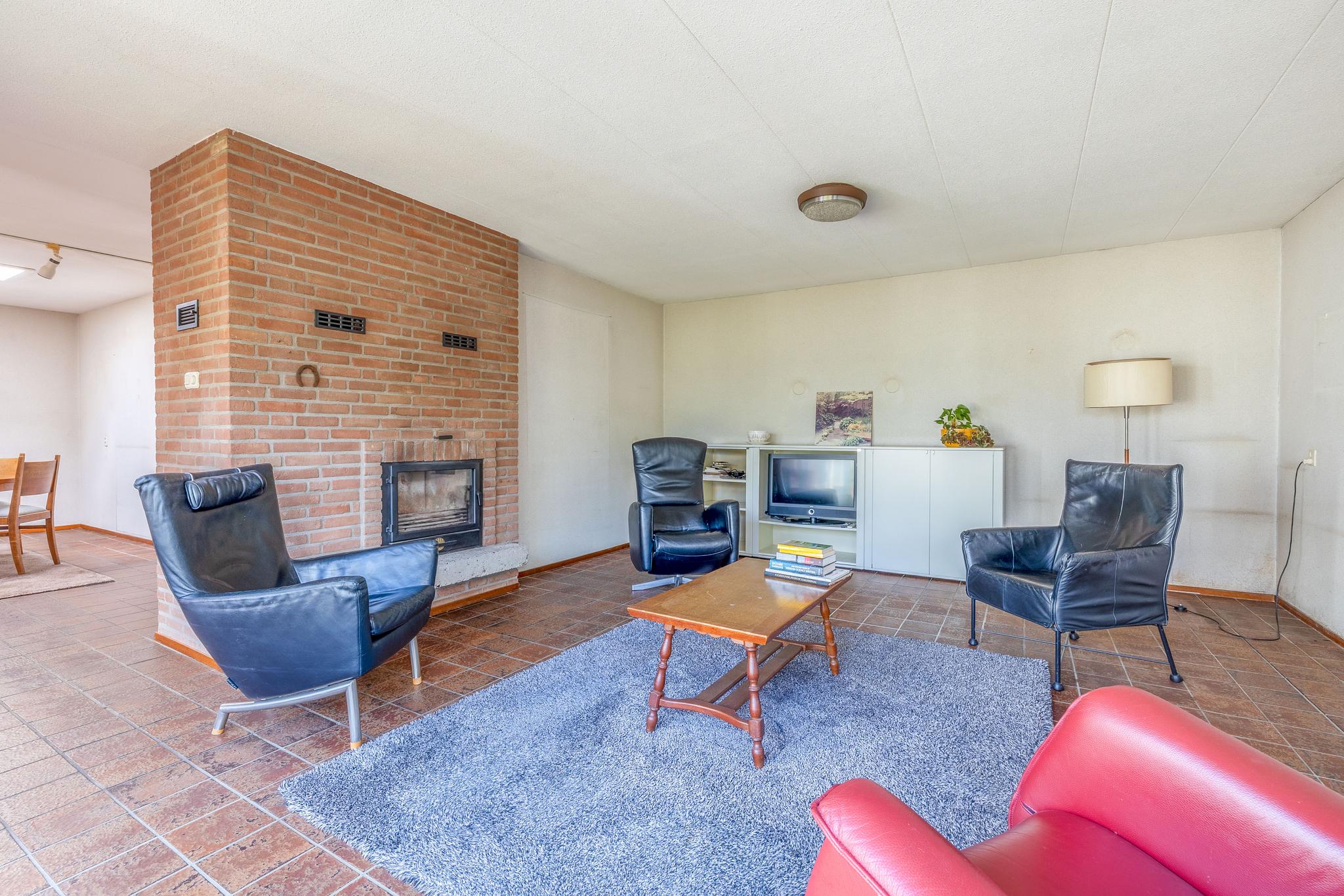 Begane grond: Entree, hal met meterkast en garderobe; vanuit de hal komt u in de eetkamer met lichtkoepel; aansluitend sfeervolle woonkamer met plavuizen vloer, open haard en schuifpui met toegang tot het terras; half open keuken in L-opstelling voorzien van inbouwapparatuur t.w. koelkast, vaatwasser, oven, inductie kookplaat en afzuigkap; tevens bevindt zich hier de c.v. opstelling kast; doorloop naar de werkkamer/slaapkamer; via de gang met diverse inbouwkasten zijn de 2 slaapkamers, toilet met fontein en badkamer bereikbaar; slaapkamer I en geeft via deur toegang tot het terras; de andere slaapkamer heeft extra opbergruimte en tevens een deur naar terras. De badkamer is uitgevoerd in lichte kleurstelling, tot plafond betegeld en voorzien van een inloopdouche met drain, wastafelmeubel en wasmachine aansluiting.