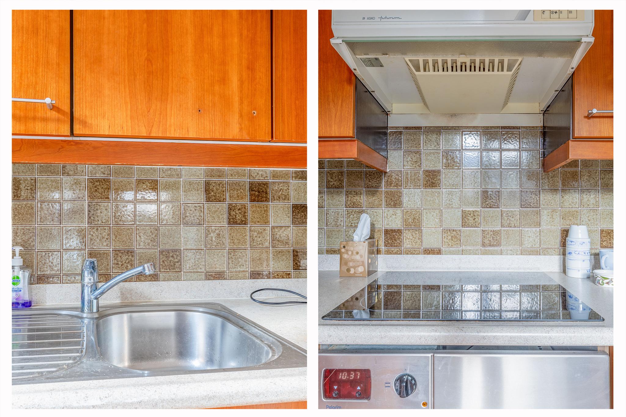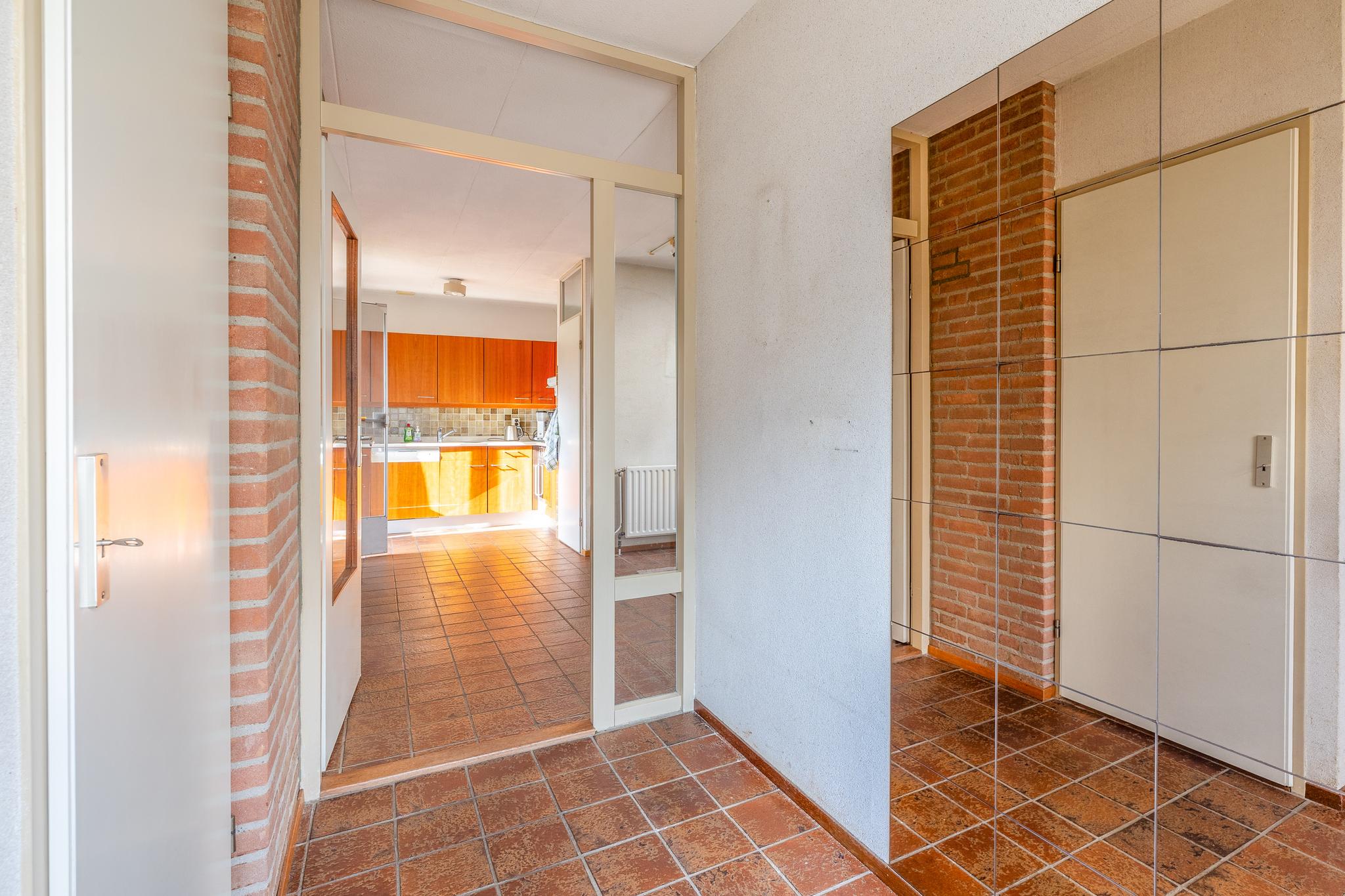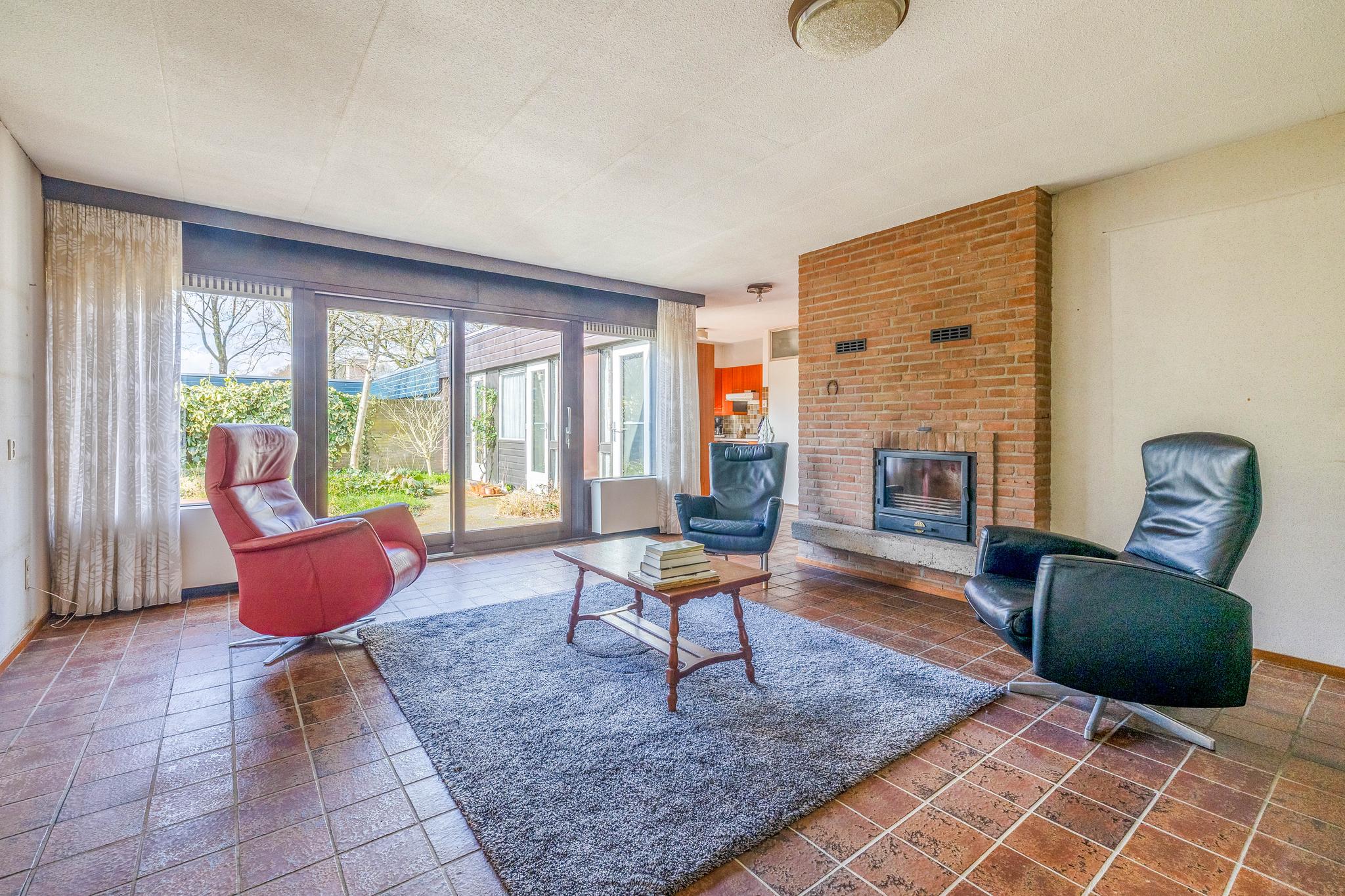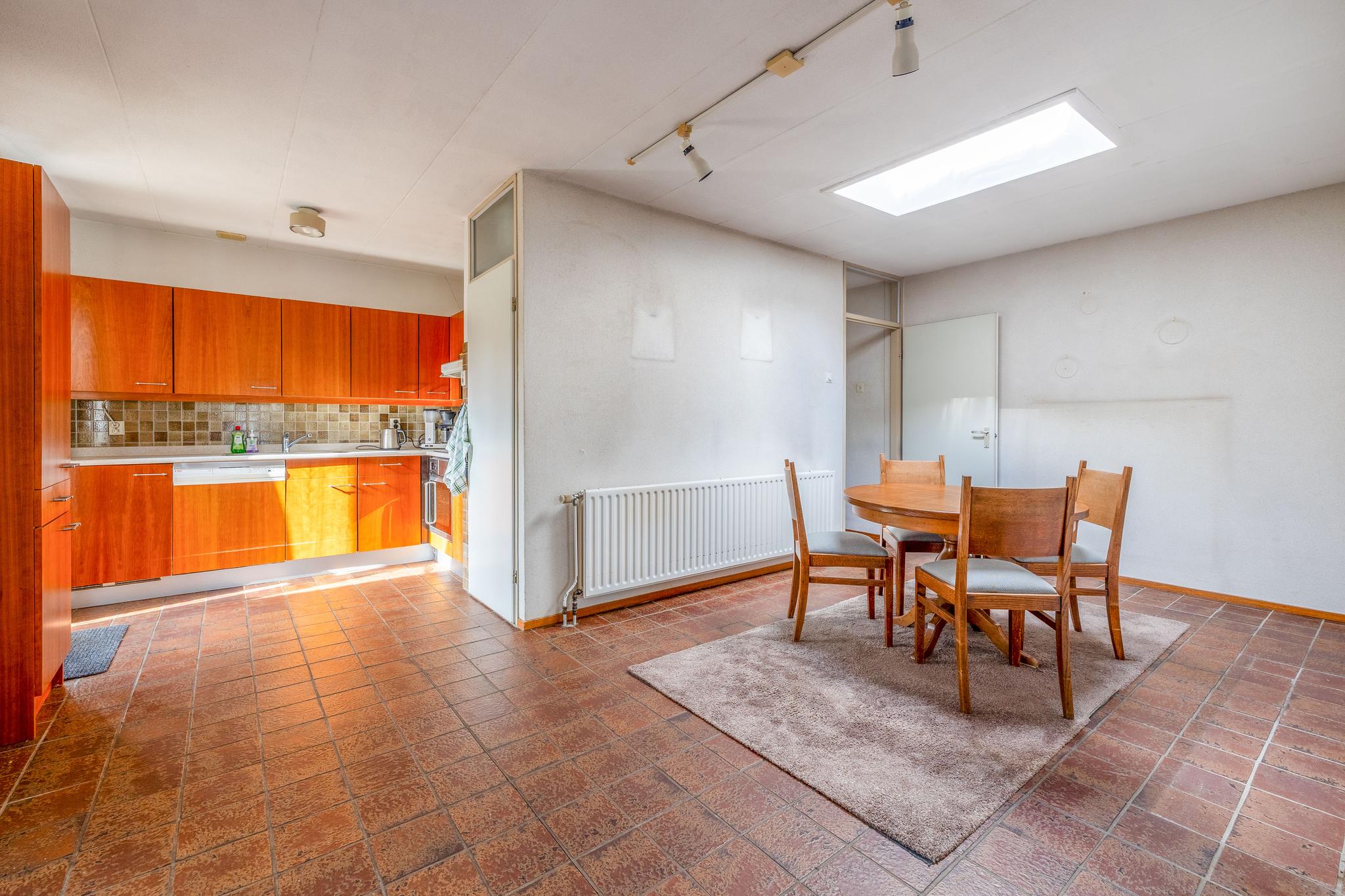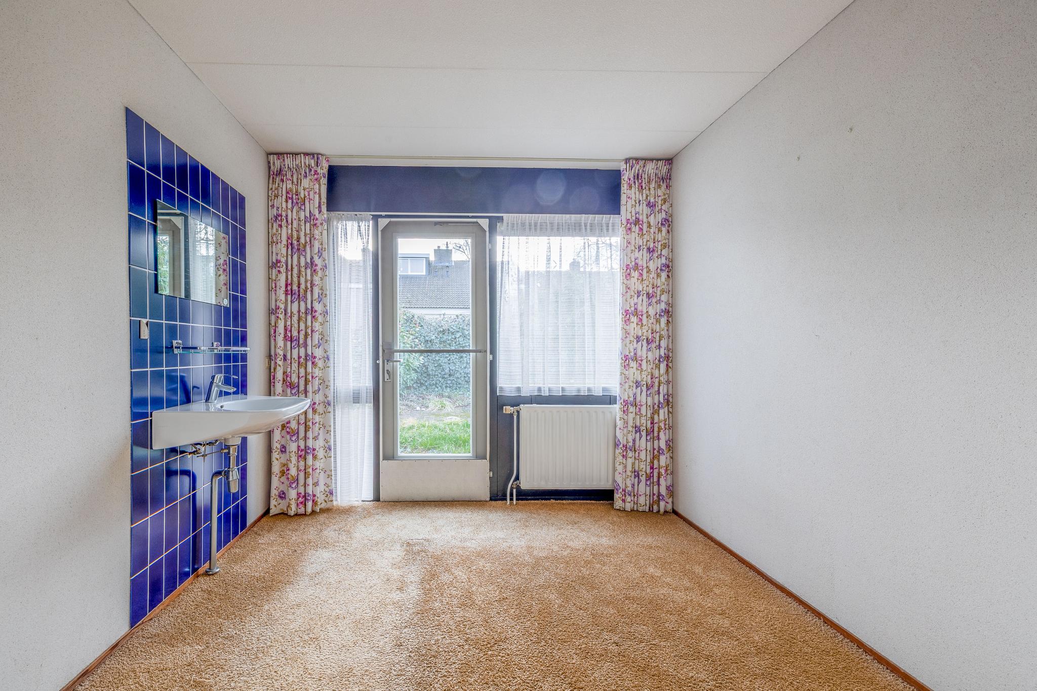 Begane grond: Entree, hal met meterkast en garderobe; vanuit de hal komt u in de eetkamer met lichtkoepel; aansluitend sfeervolle woonkamer met plavuizen vloer, open haard en schuifpui met toegang tot het terras; half open keuken in L-opstelling voorzien van inbouwapparatuur t.w. koelkast, vaatwasser, oven, inductie kookplaat en afzuigkap; tevens bevindt zich hier de c.v. opstelling kast; doorloop naar de werkkamer/slaapkamer; via de gang met diverse inbouwkasten zijn de 2 slaapkamers, toilet met fontein en badkamer bereikbaar; slaapkamer I en geeft via deur toegang tot het terras; de andere slaapkamer heeft extra opbergruimte en tevens een deur naar terras. De badkamer is uitgevoerd in lichte kleurstelling, tot plafond betegeld en voorzien van een inloopdouche met drain, wastafelmeubel en wasmachine aansluiting.
