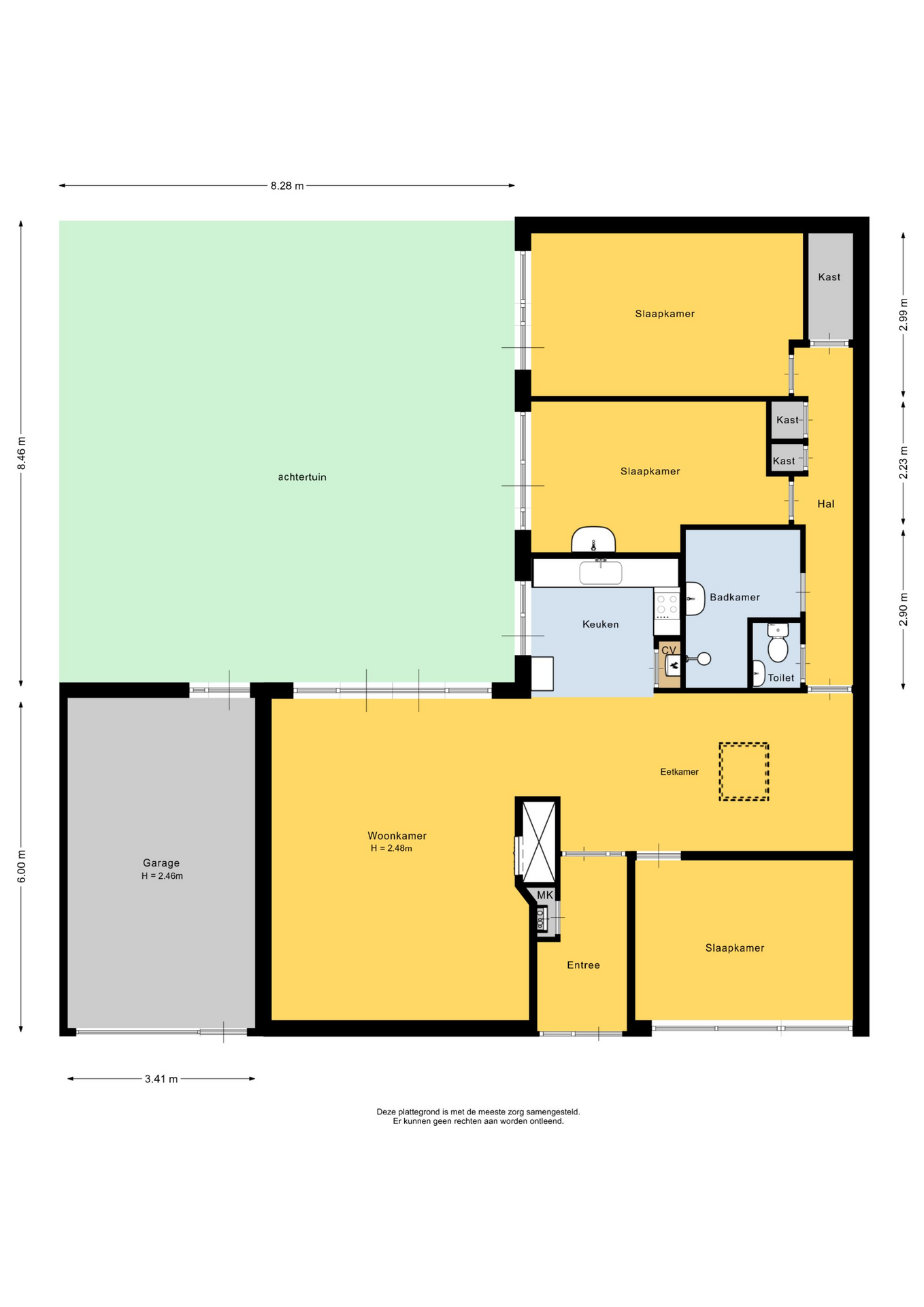 – Aangebouwde stenen garage met loopdeur, handmatig te openen garagedeur en verwarming;