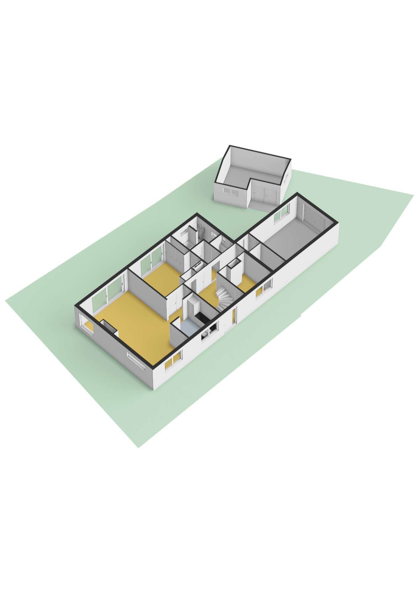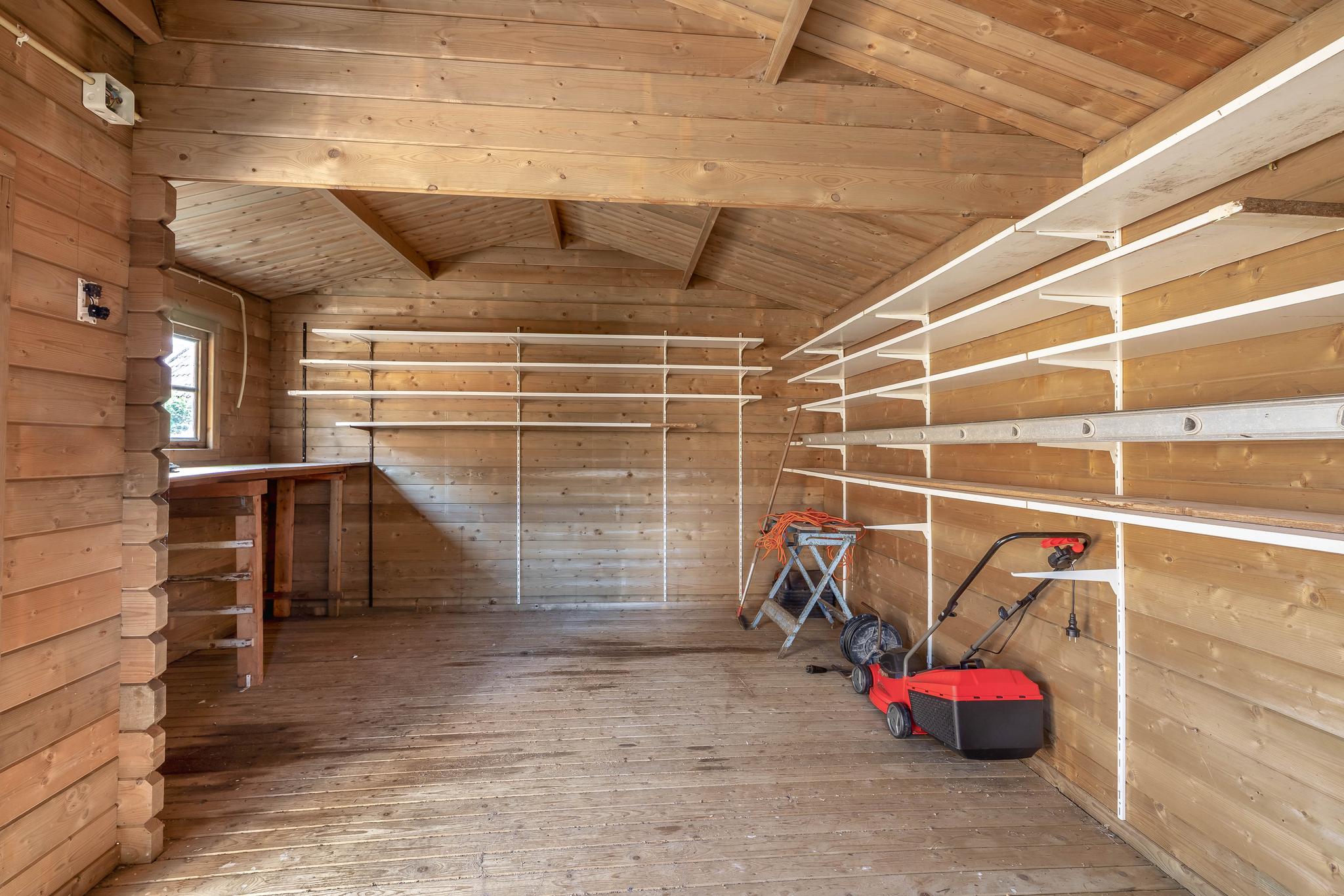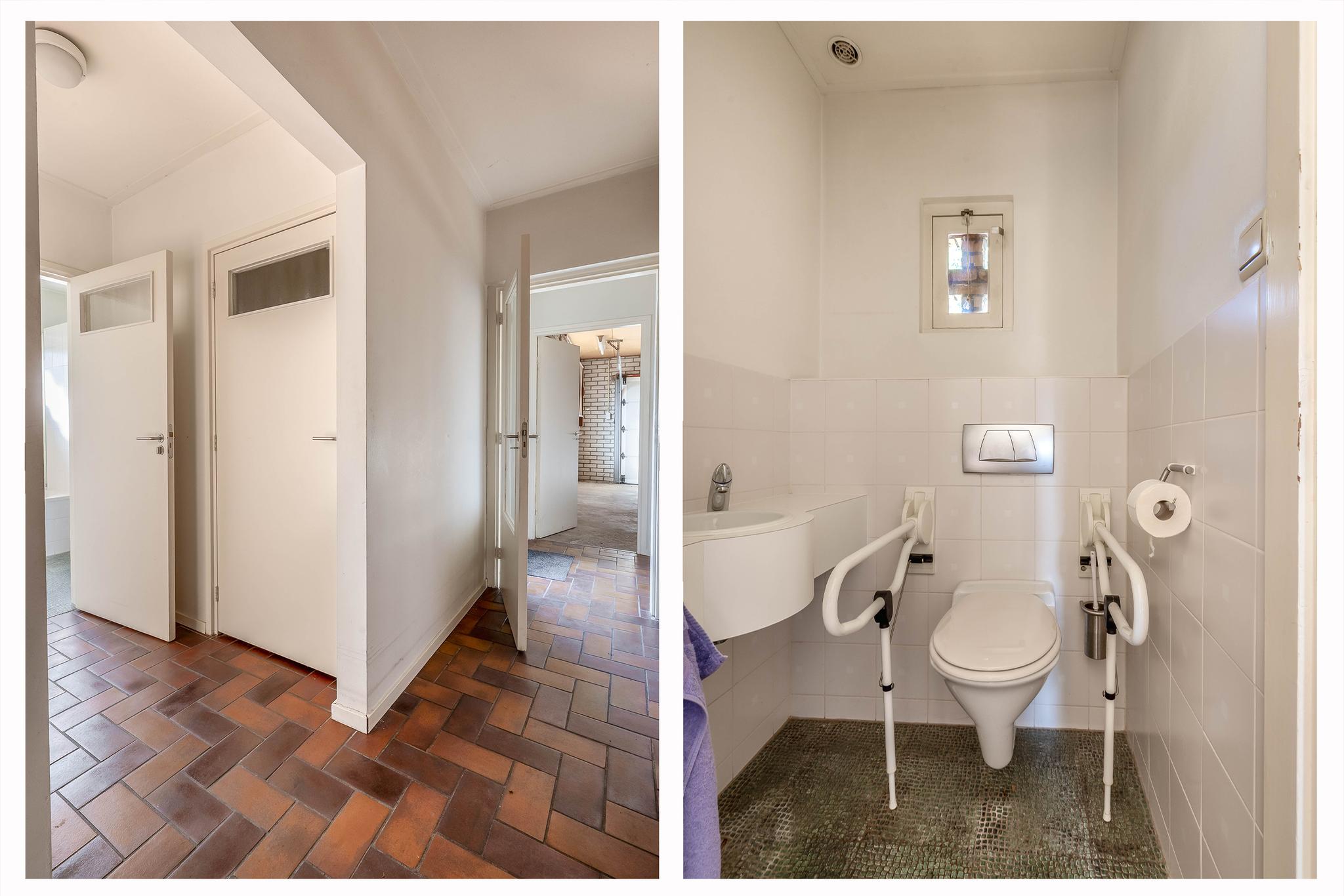Begane grond: Overdekte entree; royale hal met trappartij; vide, garderobenis; werk- of slaapkamer voorzien van dubbel glas en rolluiken; meterkast; inbouwkast; stookruimte met opstelling c.v.-installatie (Nefit Topline 2011) en heteluchtverwarmingsketel (Thermo Air HSU line 2011); aangebouwde stenen garage in spouw gebouwd met elektrische deur en aansluiting voor wasmachine en droger, toegang tot vliering over de gehele garage; tussenhal met deur naar de tuin; gang; toiletruimte met wandcloset en fonteintje; badkamer voorzien van ramen en uitgerust met ligbad, douche, wastafel, vloerverwarming; slaapkamer met kastenwand; halfopen keuken in L-vormige opstelling geplaatst en voorzien van keramische kookplaat met afzuigkap, vaatwasmachine en koelkast; sfeervolle woonkamer met openhaard en rondom glas waardoor veel lichtinval en voorzien van een plavuizen vloer.