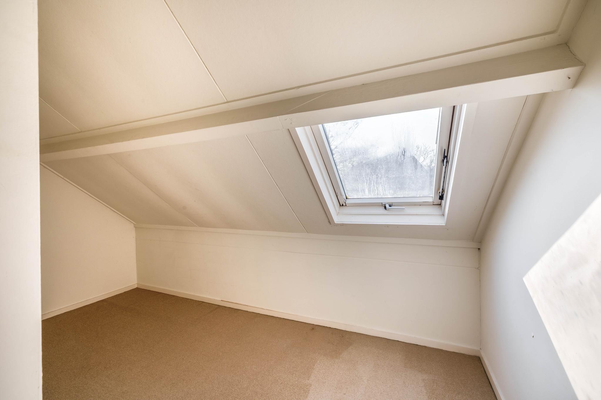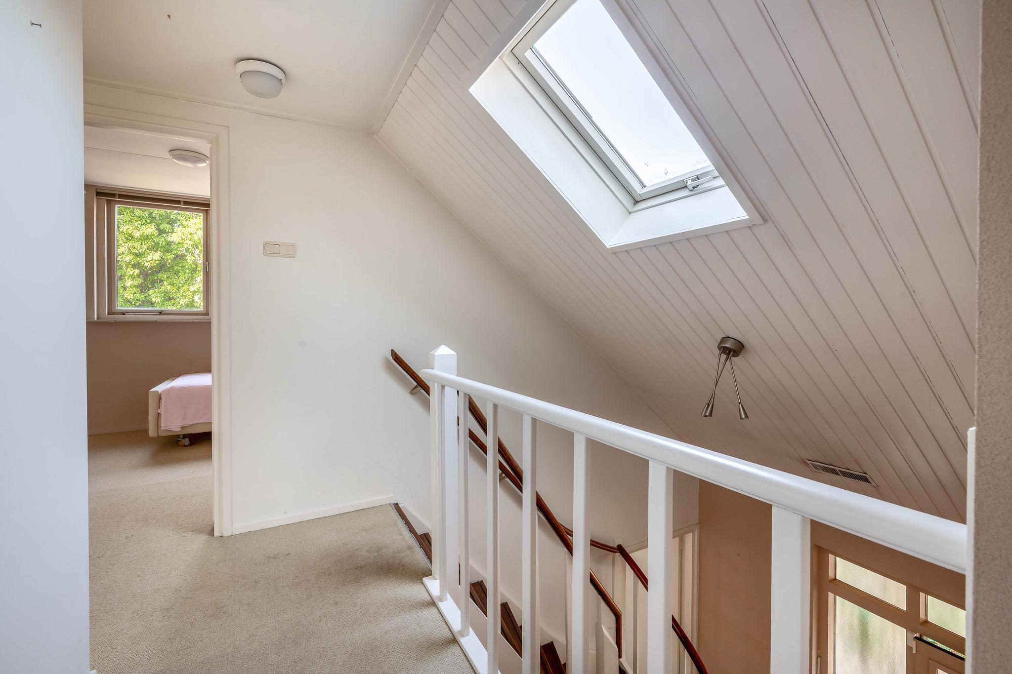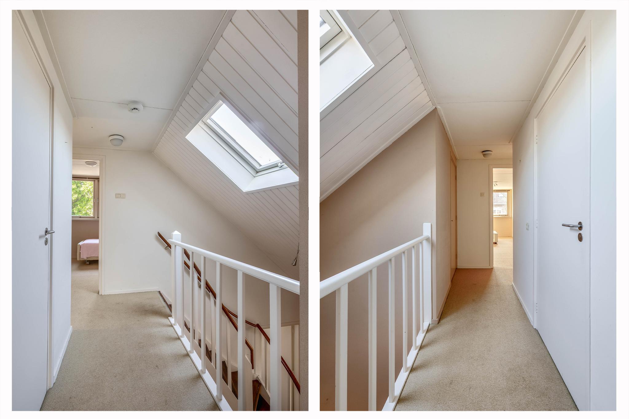Verdieping: Overloop met ruime opbergkast; slaapkamer; aparte ruimte voorzien van dakvenster; inpandige badkamer voorzien van douche, vaste wastafel en toilet; slaapkamer over de volle breedte met ruime inbouwkast.