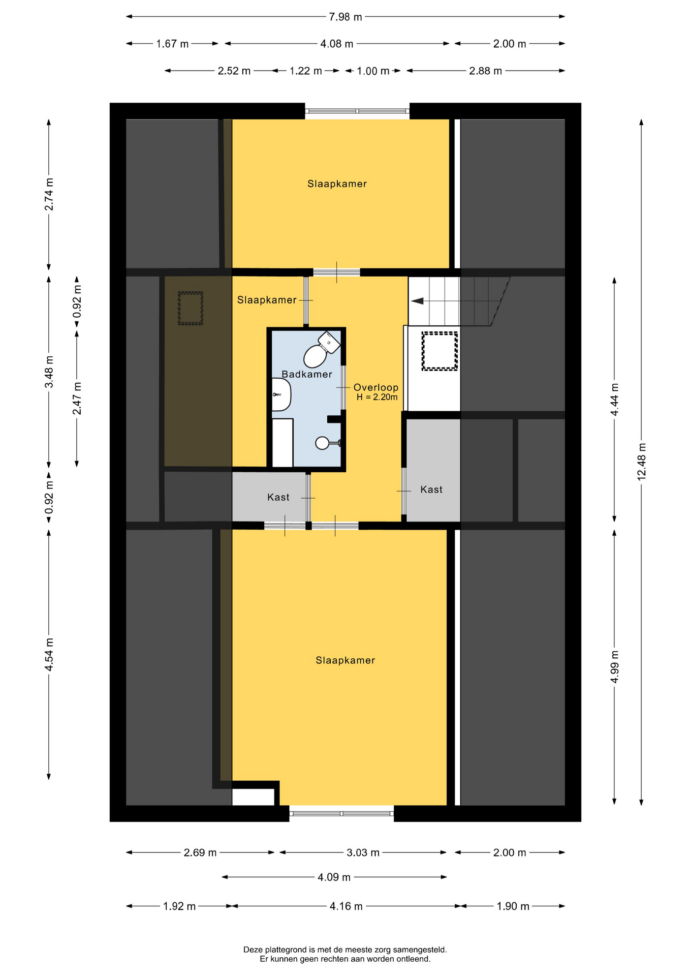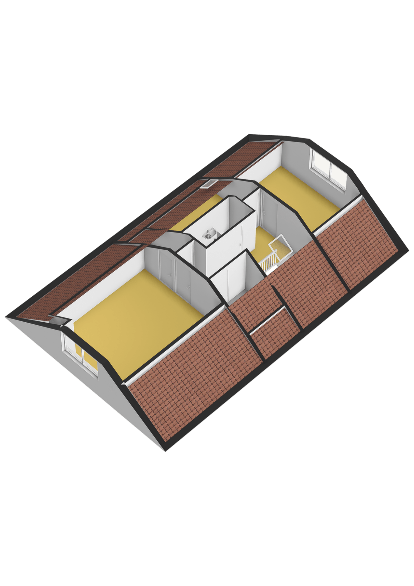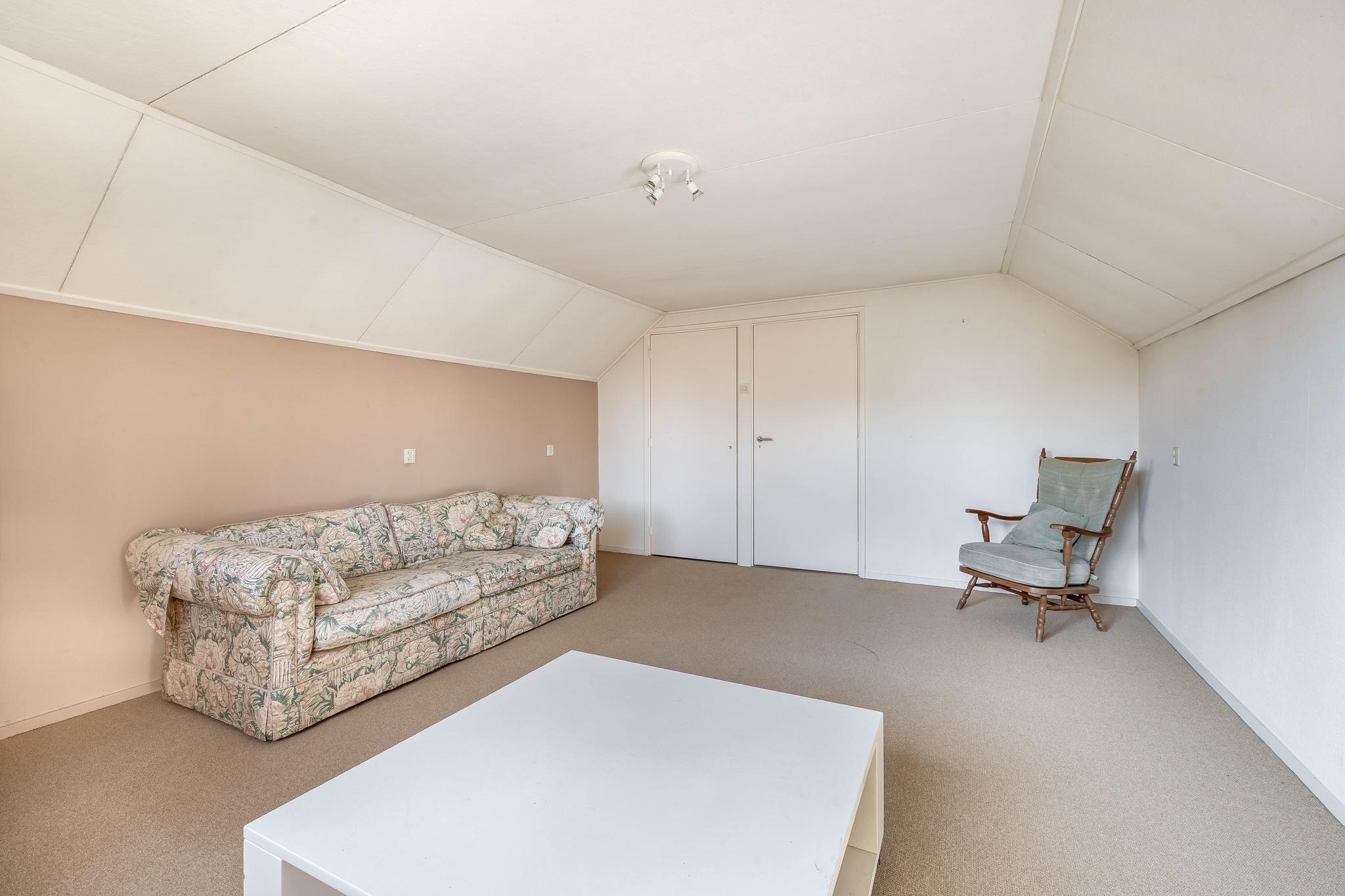 Verdieping: Overloop met ruime opbergkast; slaapkamer; aparte ruimte voorzien van dakvenster; inpandige badkamer voorzien van douche, vaste wastafel en toilet; slaapkamer over de volle breedte met ruime inbouwkast.