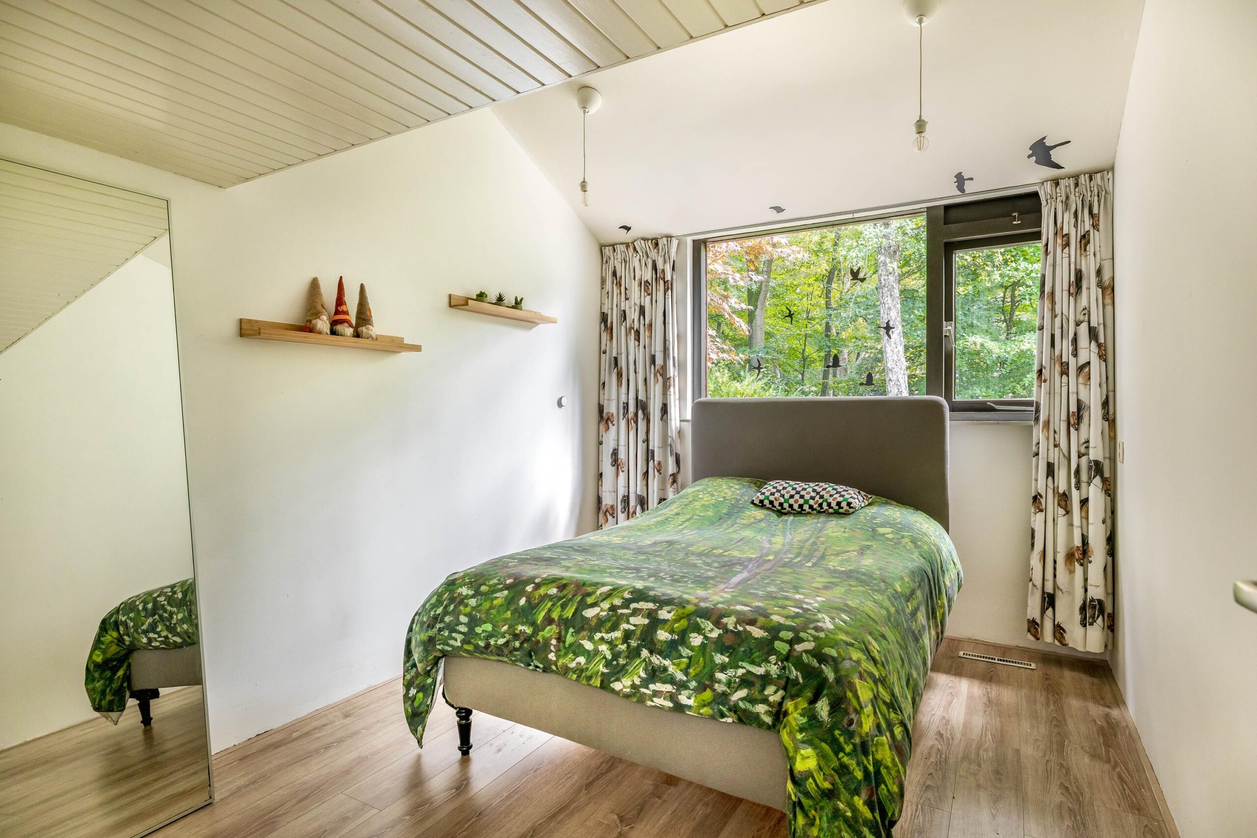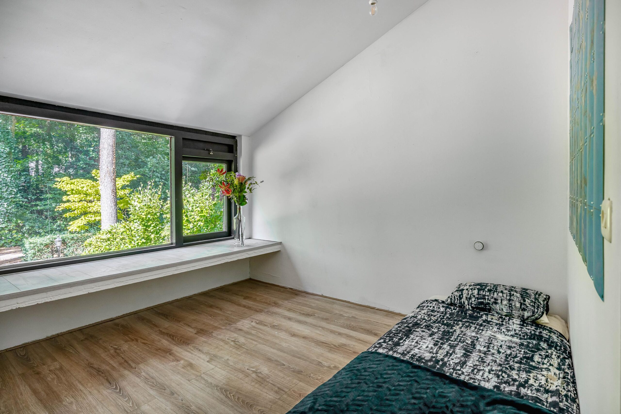In de bosrijke villawijk Wageningen Hoog, op een hoek van twee lanen gelegen geschakeld woonhuis voorzien van een inpandige garage omringd door een fraaie bostuin gesitueerd op het Zuiden.