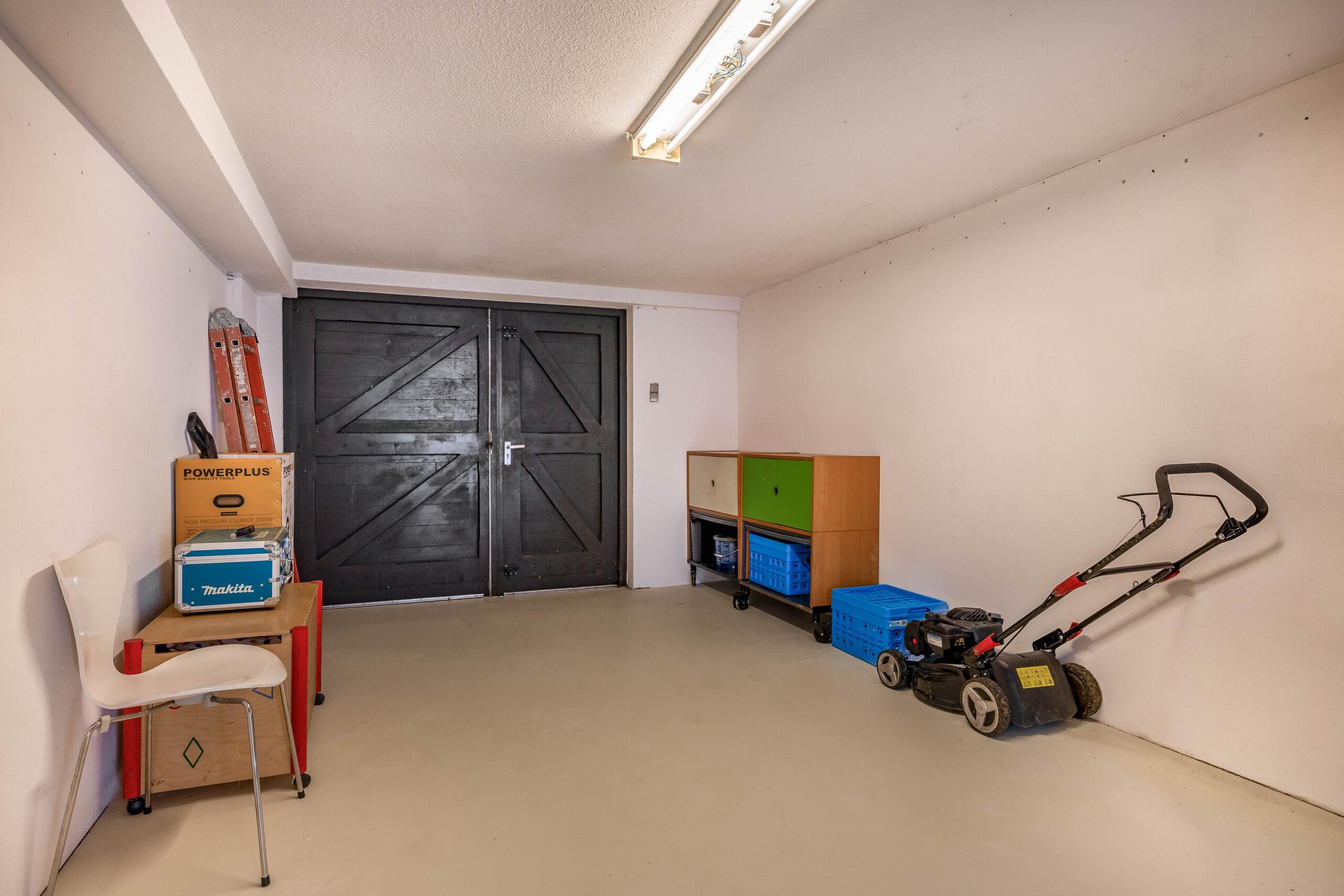 Souterrain: Overloop; garage met een stortbak en aan de voor- en aan de achterzijde een deur; aparte ruimte met raam en opstelplaats voor de boiler en heteluchtketel, deze ruimte is te gebruiken als werkkamer.