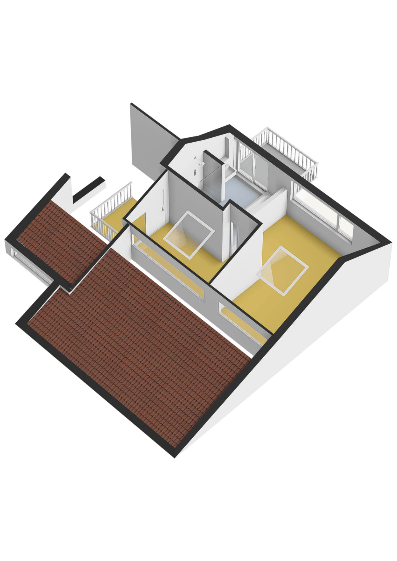 1e/2e verdieping: Overloop met dakvenster; overloop (eventueel te gebruiken als werkruimte); slaapkamer IV in speelse indeling met dakvenster; open badkamer met schuifpui naar balkon en voorzien van kunststof ligbad, wastafel en inloopdouche.
