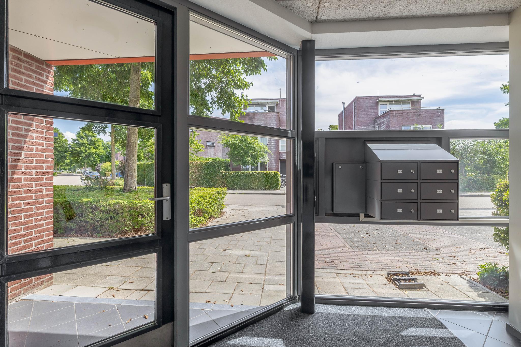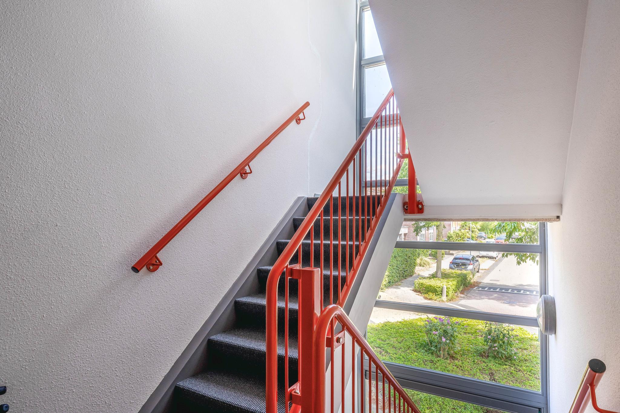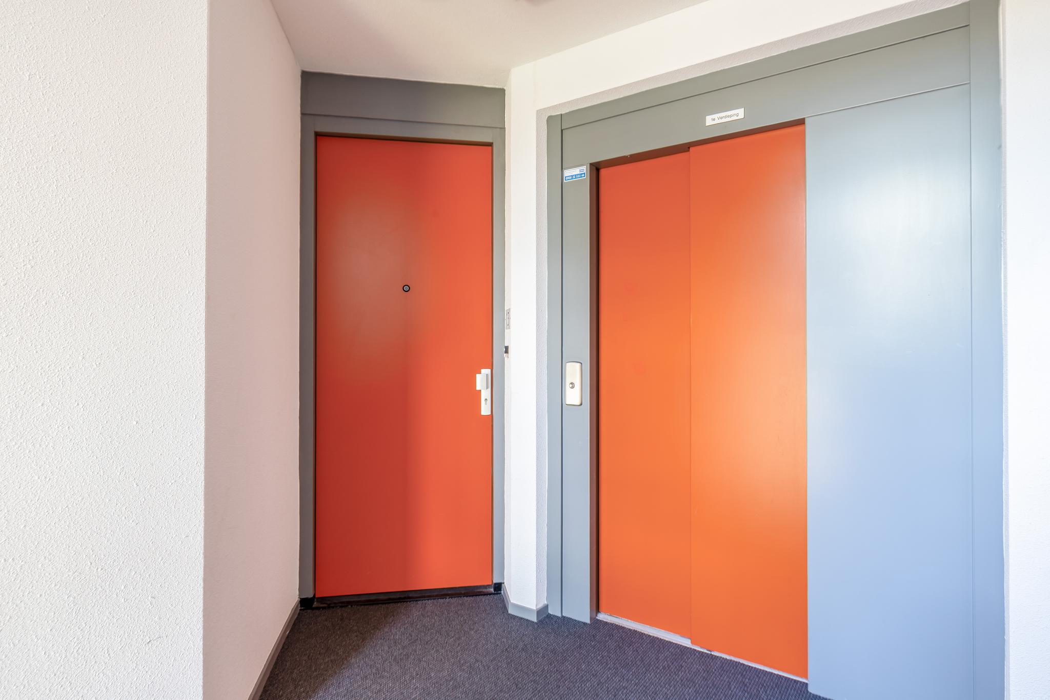 Complex: Gesloten entree met brievenbussen, liftinstallatie en trapopgang naar de appartementen.